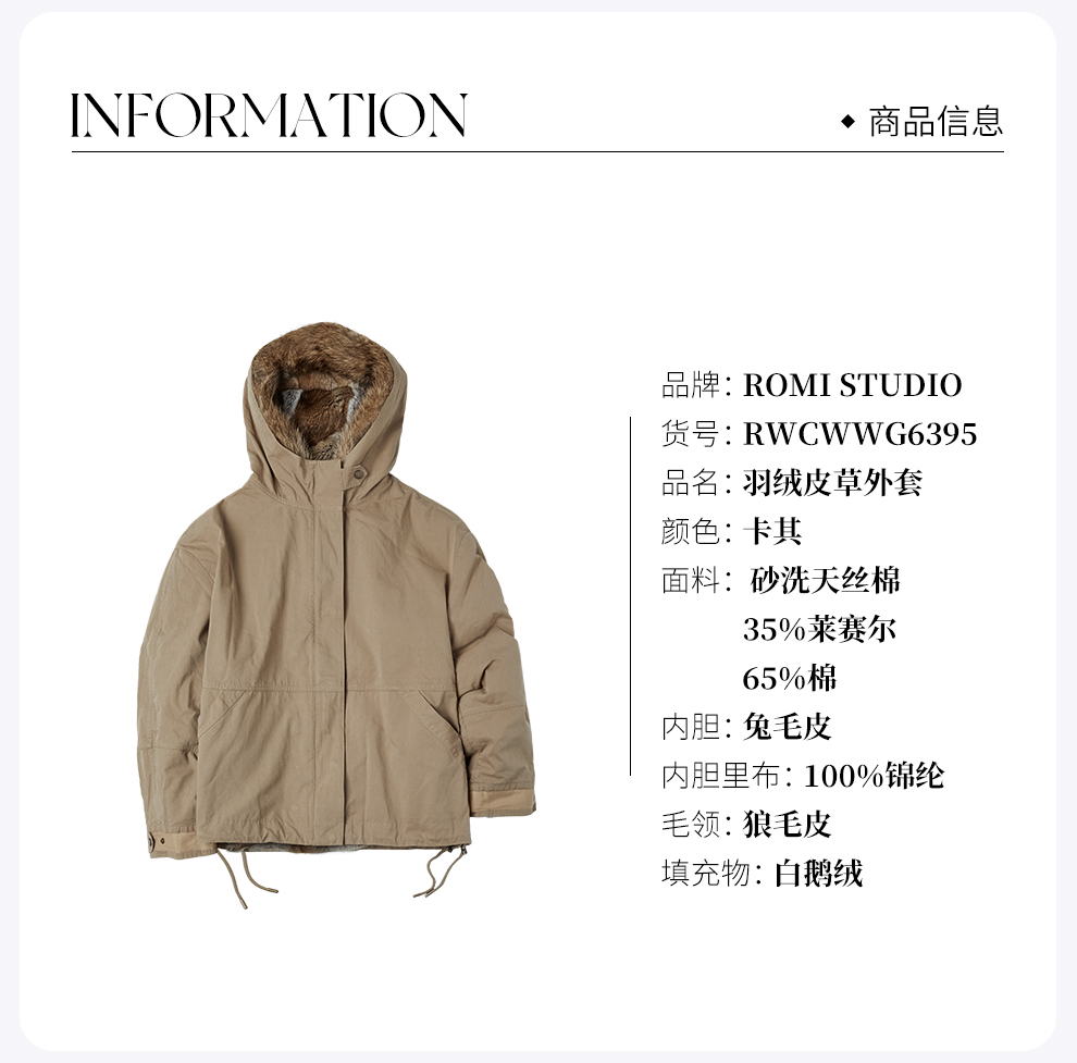 ROMI STUDIO“暖奢顶配”兔毛皮狼毛帽檐皮草白鹅绒外套RWCWWG6395