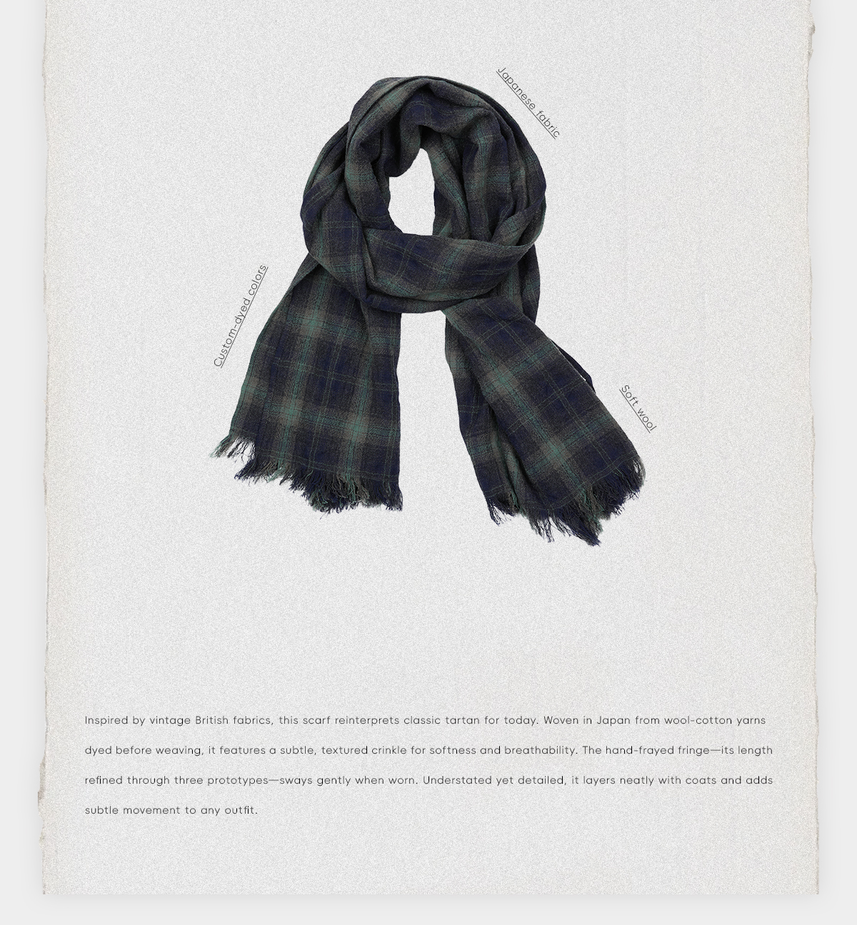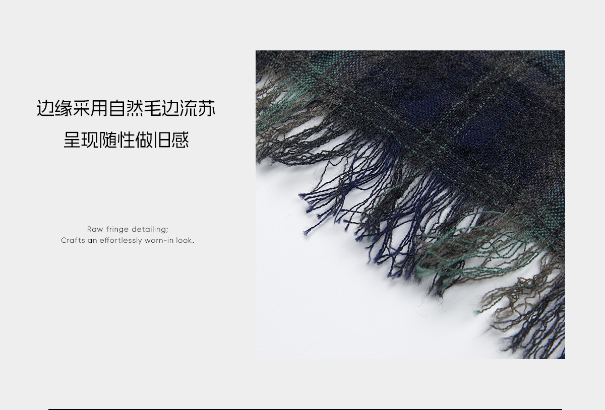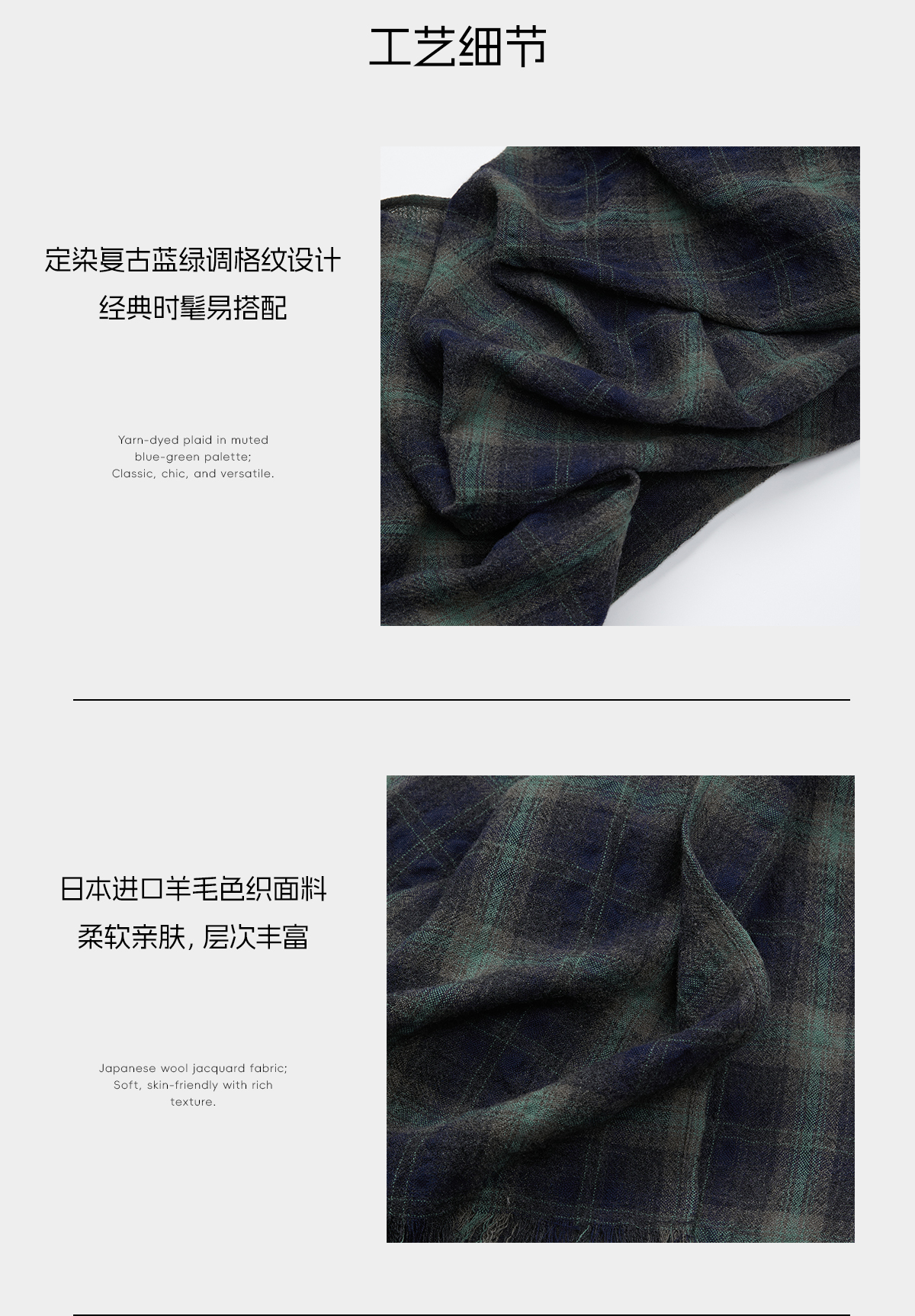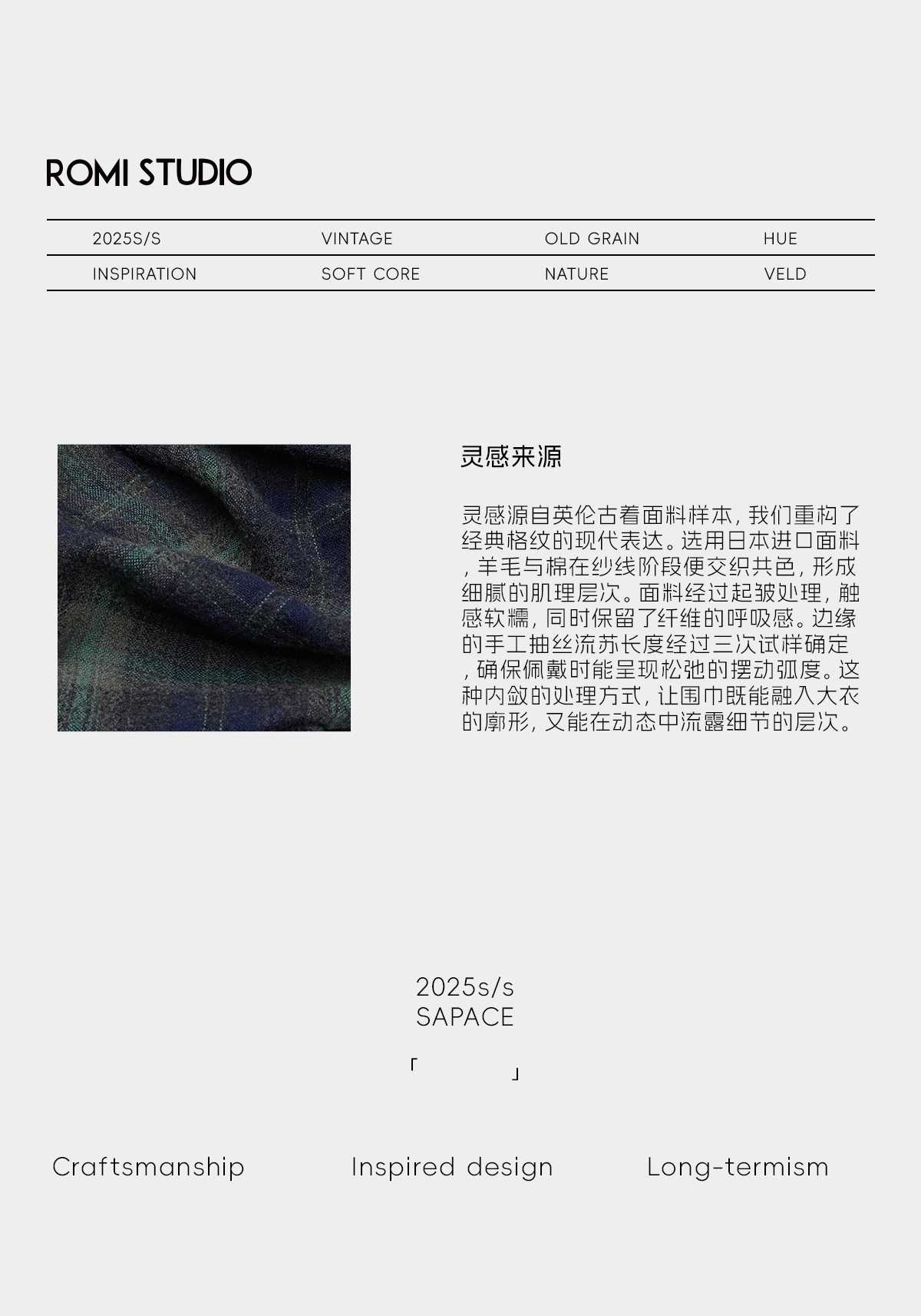 ROMI STUDIO“苏格兰”进口羊毛棉复古格纹软糯流苏围巾RWCWPU6617