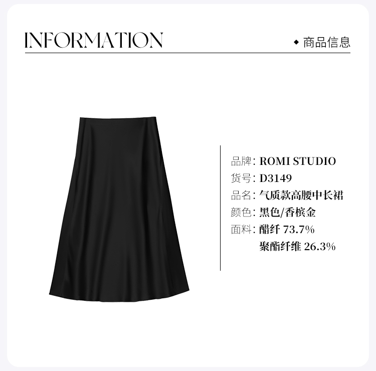 ROMI STUDIO【高品质】法式优雅 气质款高腰纯色中长款半裙D3149