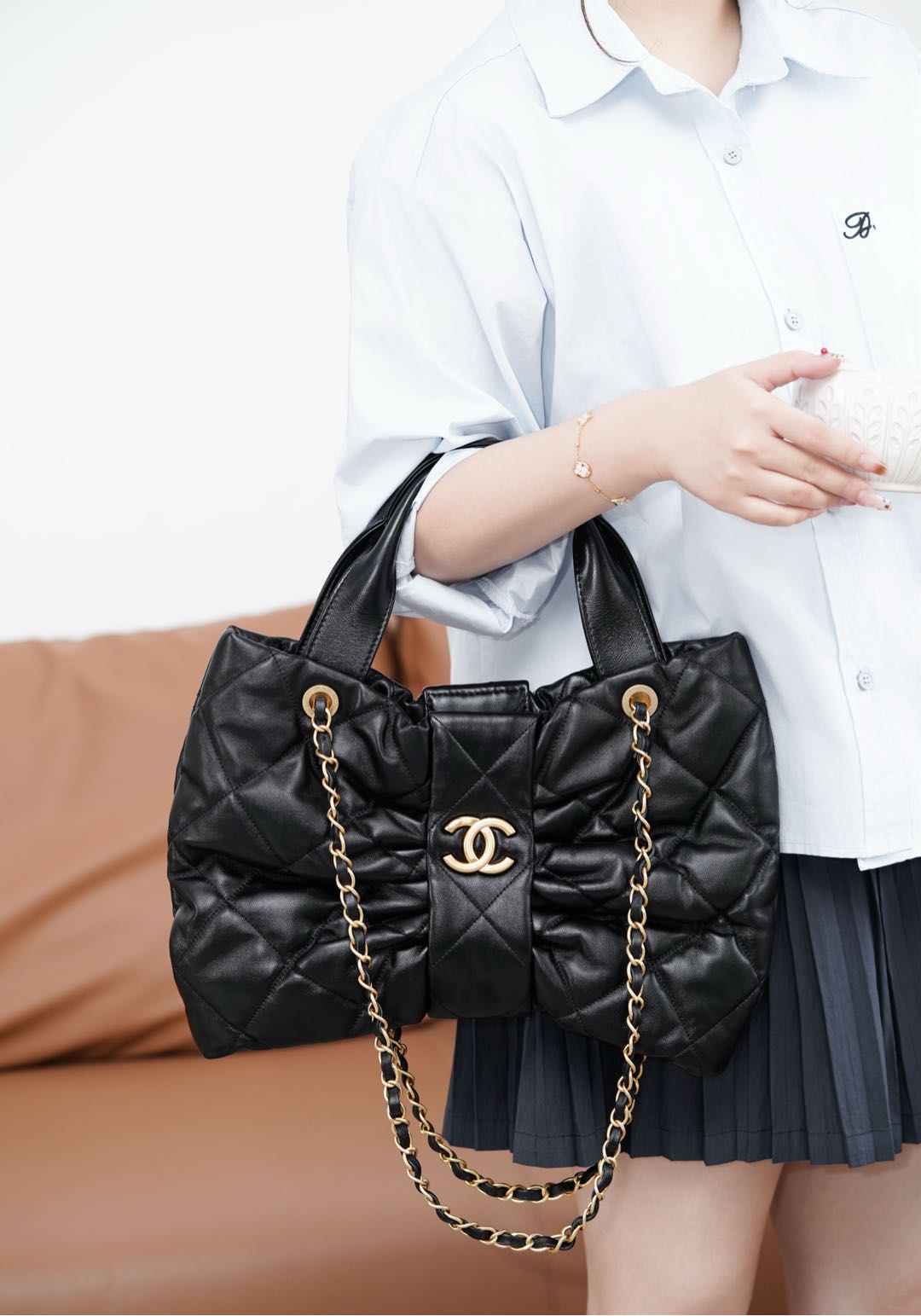 𝐂𝐡𝐚𝐧𝐞𝐥 𝟐𝟓𝐊 蝴蝶结手袋🎀 中号 𝟐𝟓𝐤蝴蝶结元素也太懂少女心了吧💕 融合𝐂𝐡𝐚𝐧𝐞𝐥经典菱格 休闲又甜美 美的要命🤩 打破包包的常规形态!让蝴蝶结从配饰成为主角👑 双𝐂扣点缀其中!绵羊皮🐑营造出一种“蓬松”“柔美”的感觉~ 皮质手柄🉑手提、金属链条随意垂坠,甜酷风格一秒切换👏🏻 又可以搭配正式的西装、也可以适配俏皮可爱!日常出行选择它简直是风格放大器! 尺寸:𝟐𝟗𝐱𝟑𝟖𝐱𝟓𝐜𝐦