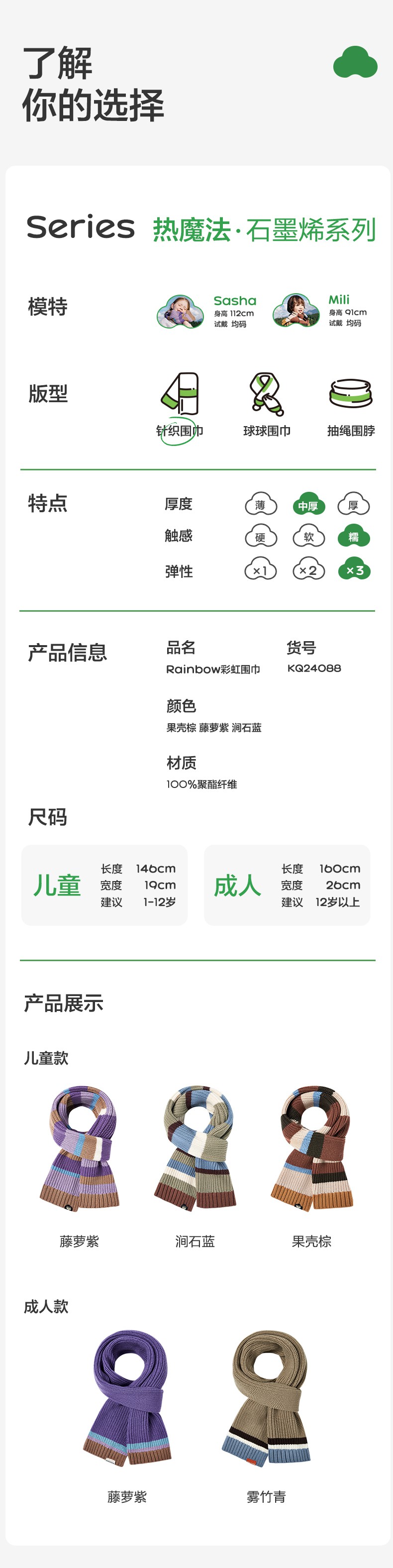 KK树儿童围巾男孩女童春秋宝宝围脖保暖亲子冬季外出防风脖套护颈Rainbow彩虹围巾