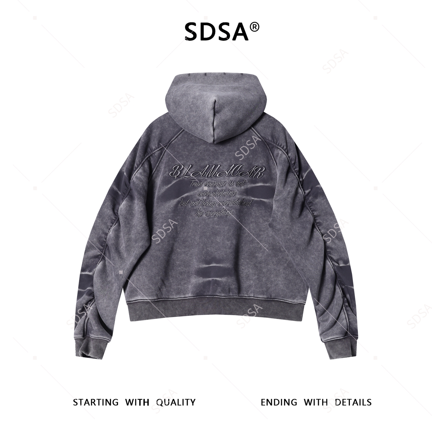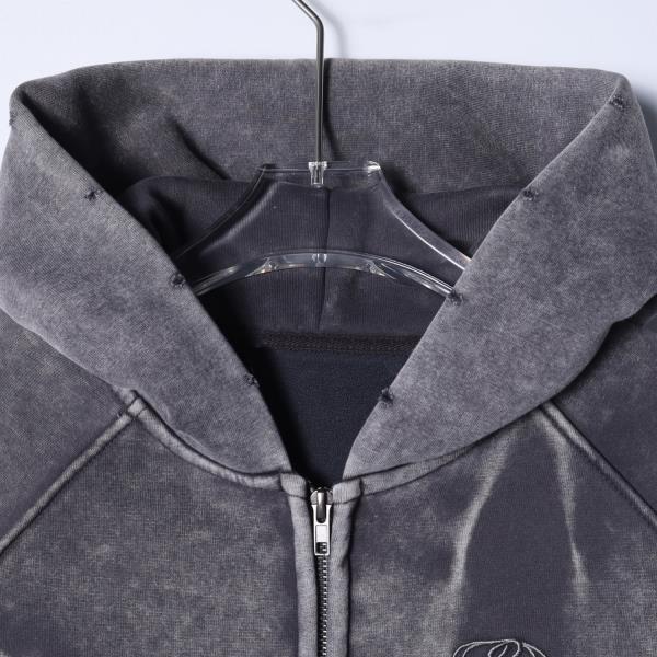 F7066SDSA男士秋冬新款痞帅男装高街做旧水洗刺绣字母拉链连帽卫衣外套