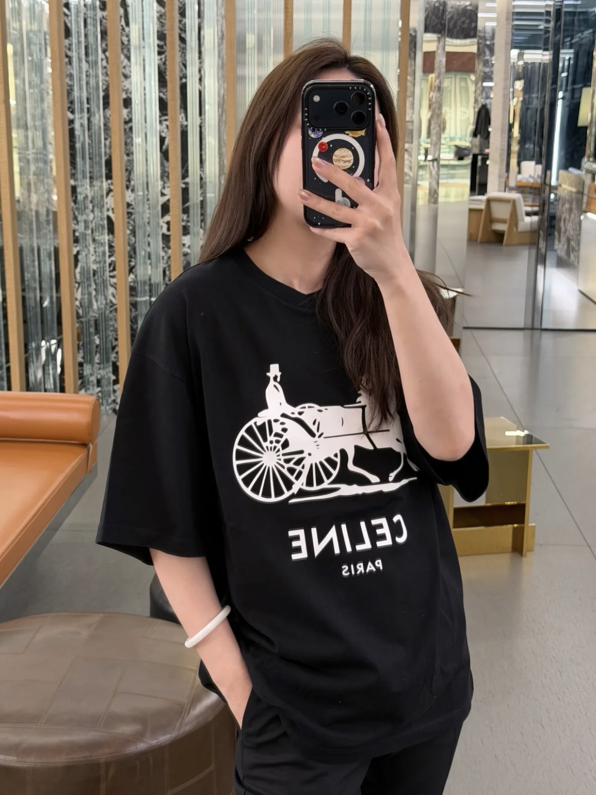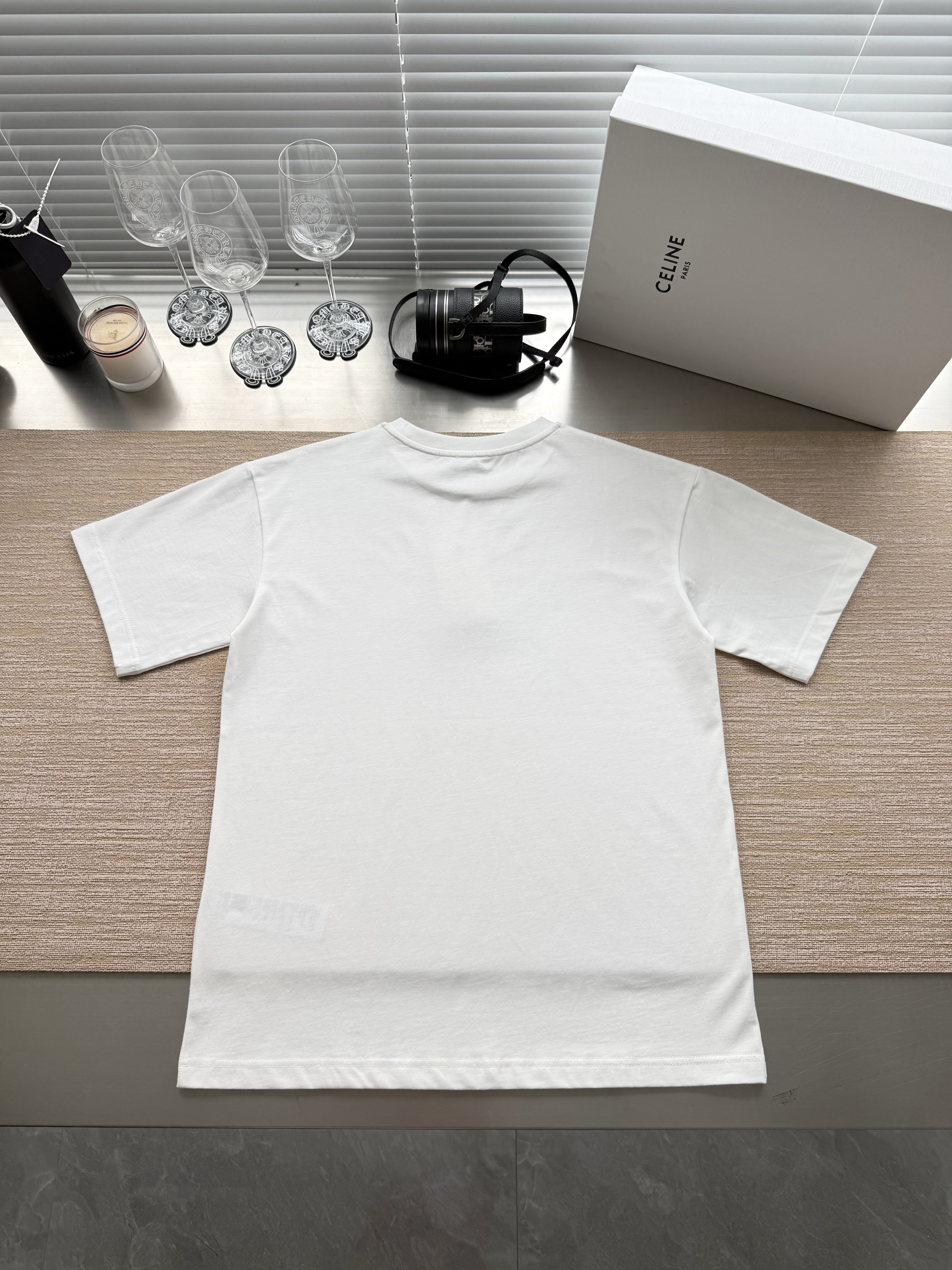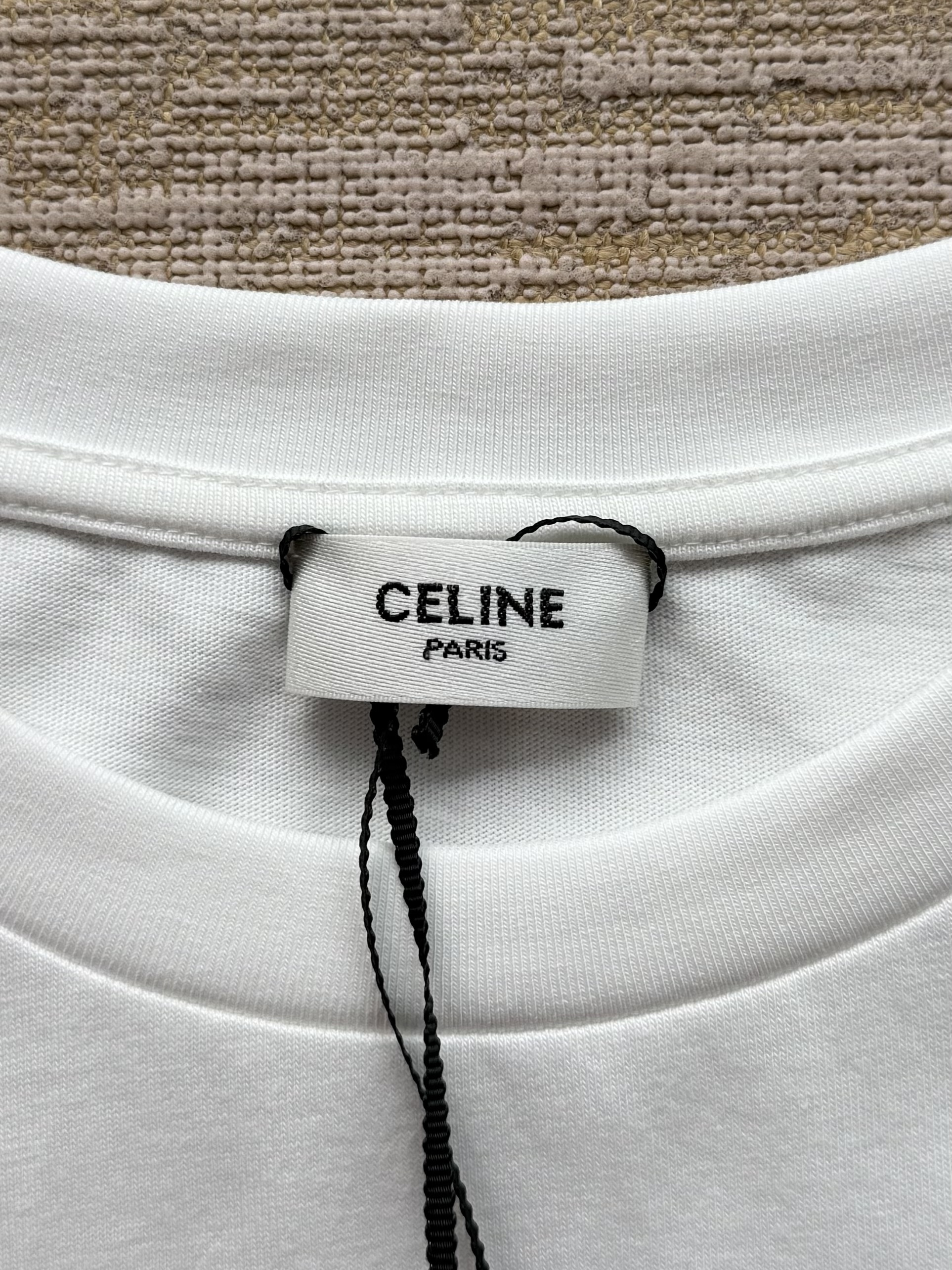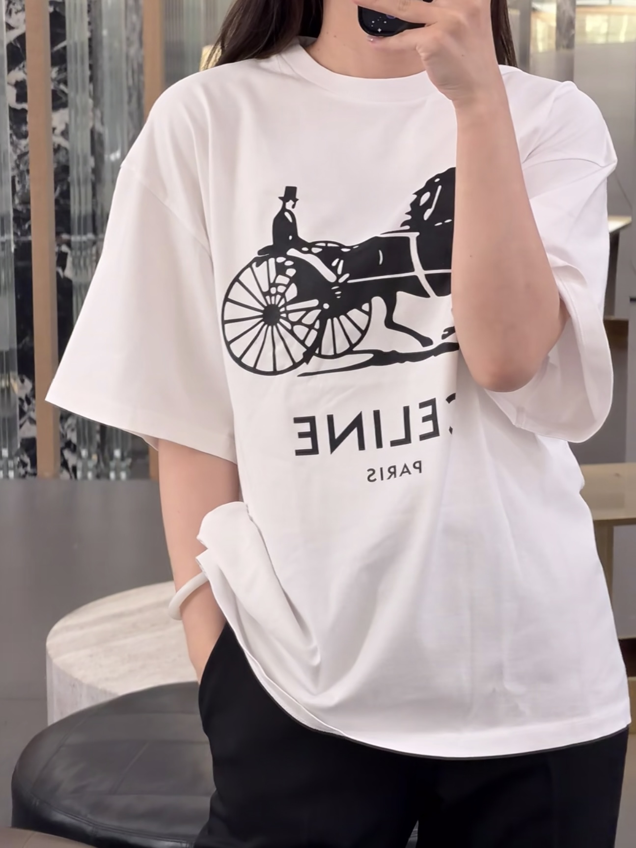 Celine 25ss字母标识马车印花短袖T恤‼️整件衣服4900购买ZP拆解打造,定制定染黑色纯棉面料,做到100%全棉进口纱线,意大利进口制造,定织标志性罗纹领口,前幅饰以字母标识马车夫图案印花,袖口 下摆双层锁边超高密度走线,真正做到1:1copy 闭眼入 码数:XS S M L