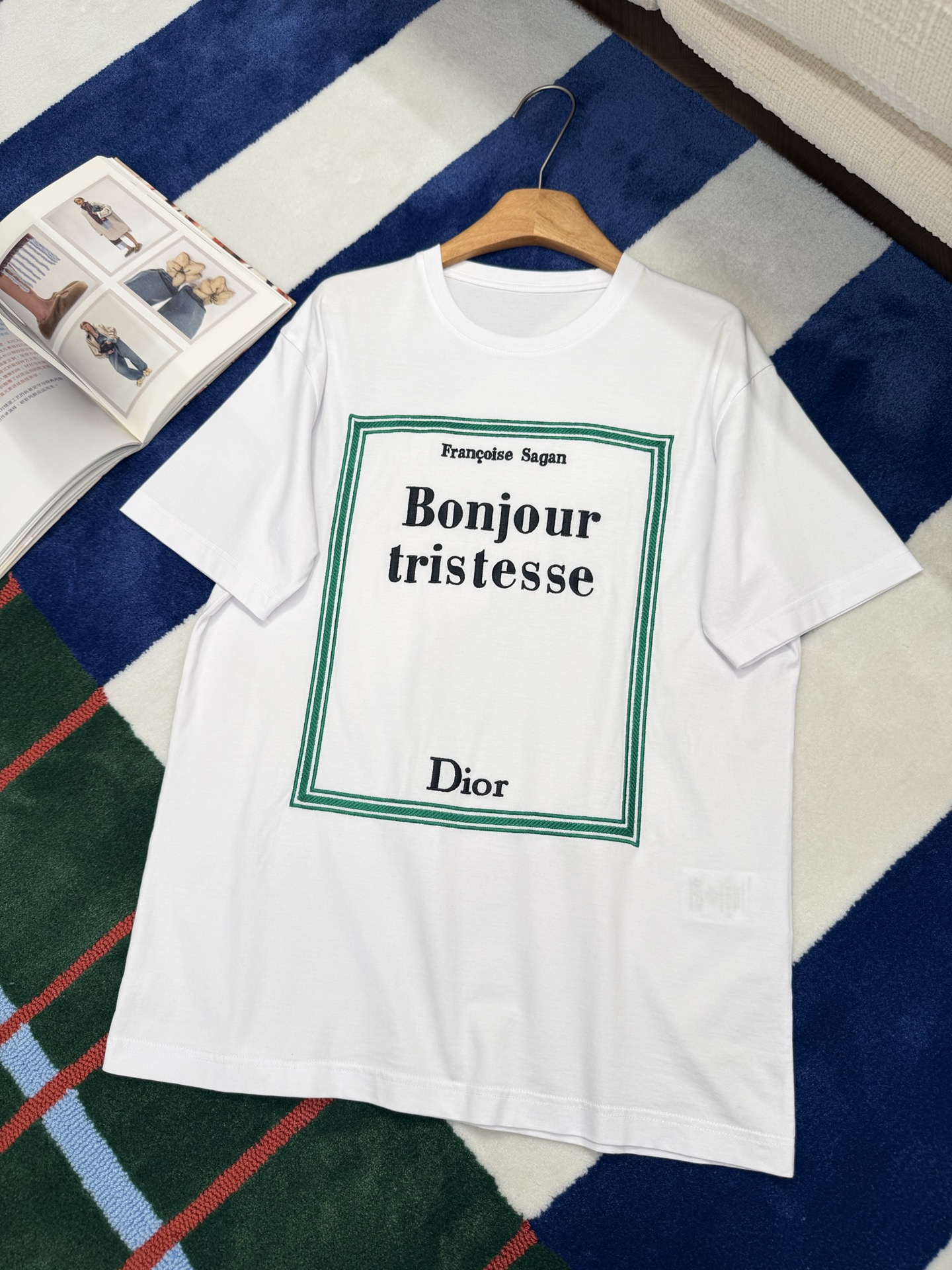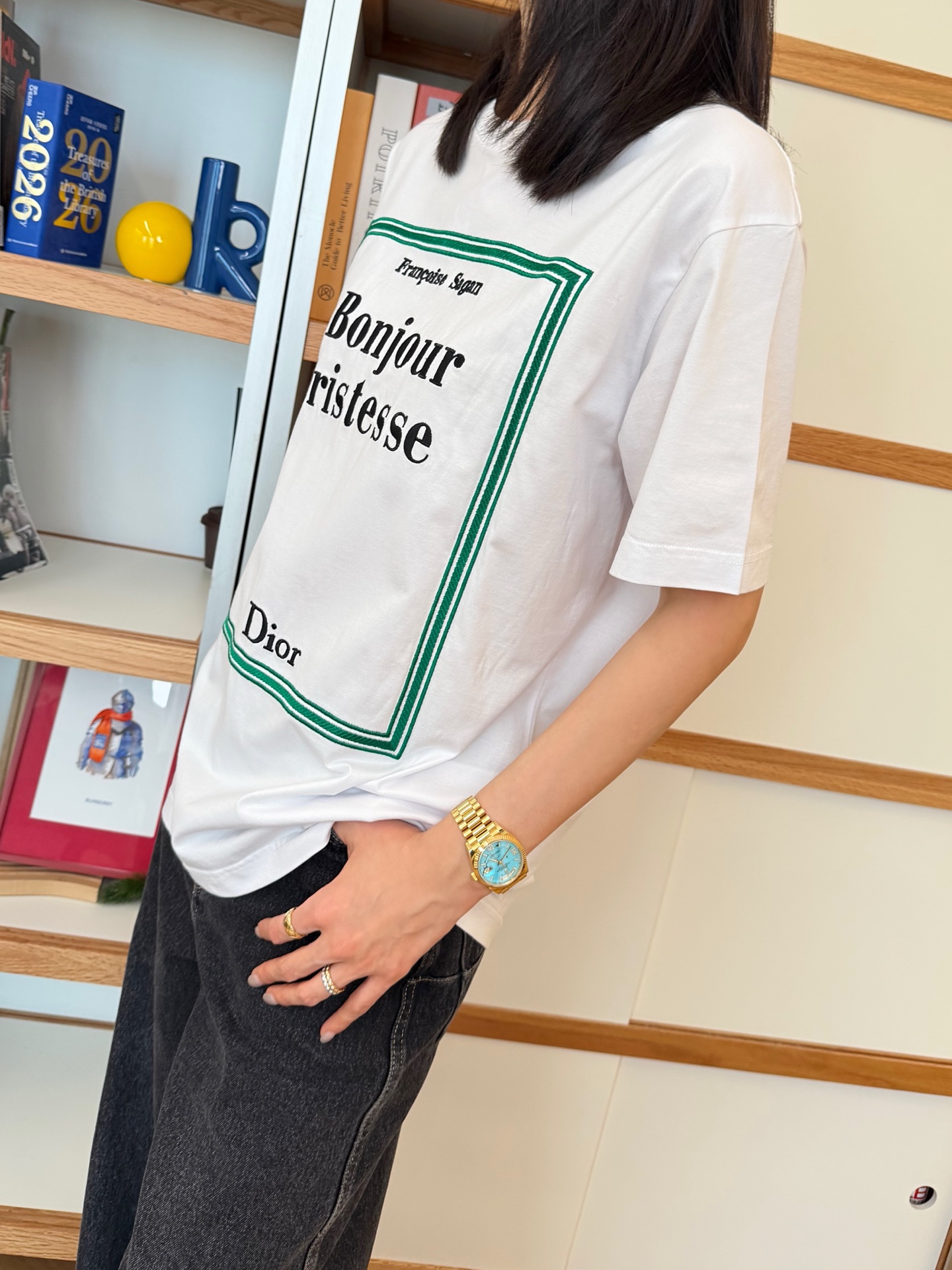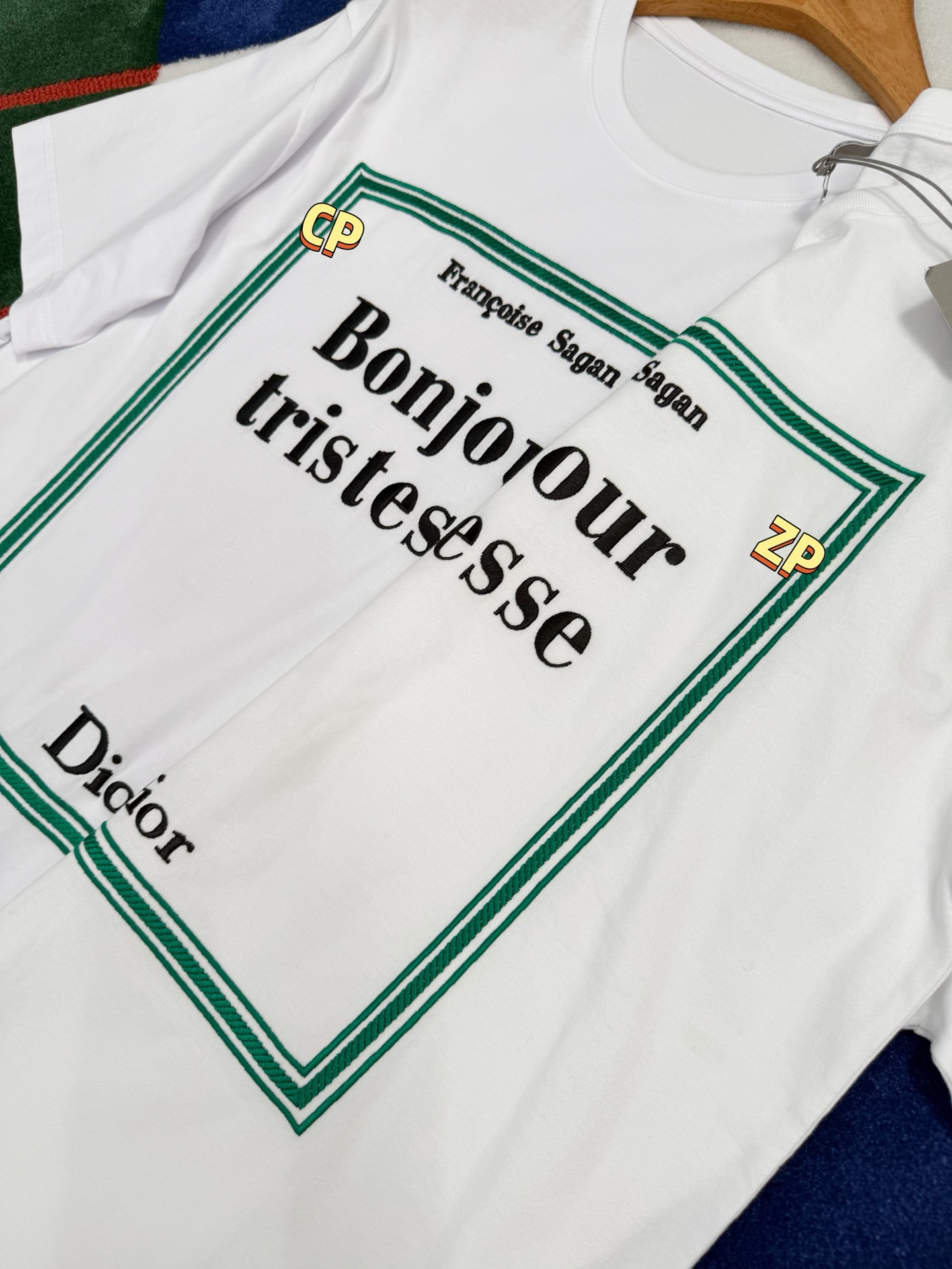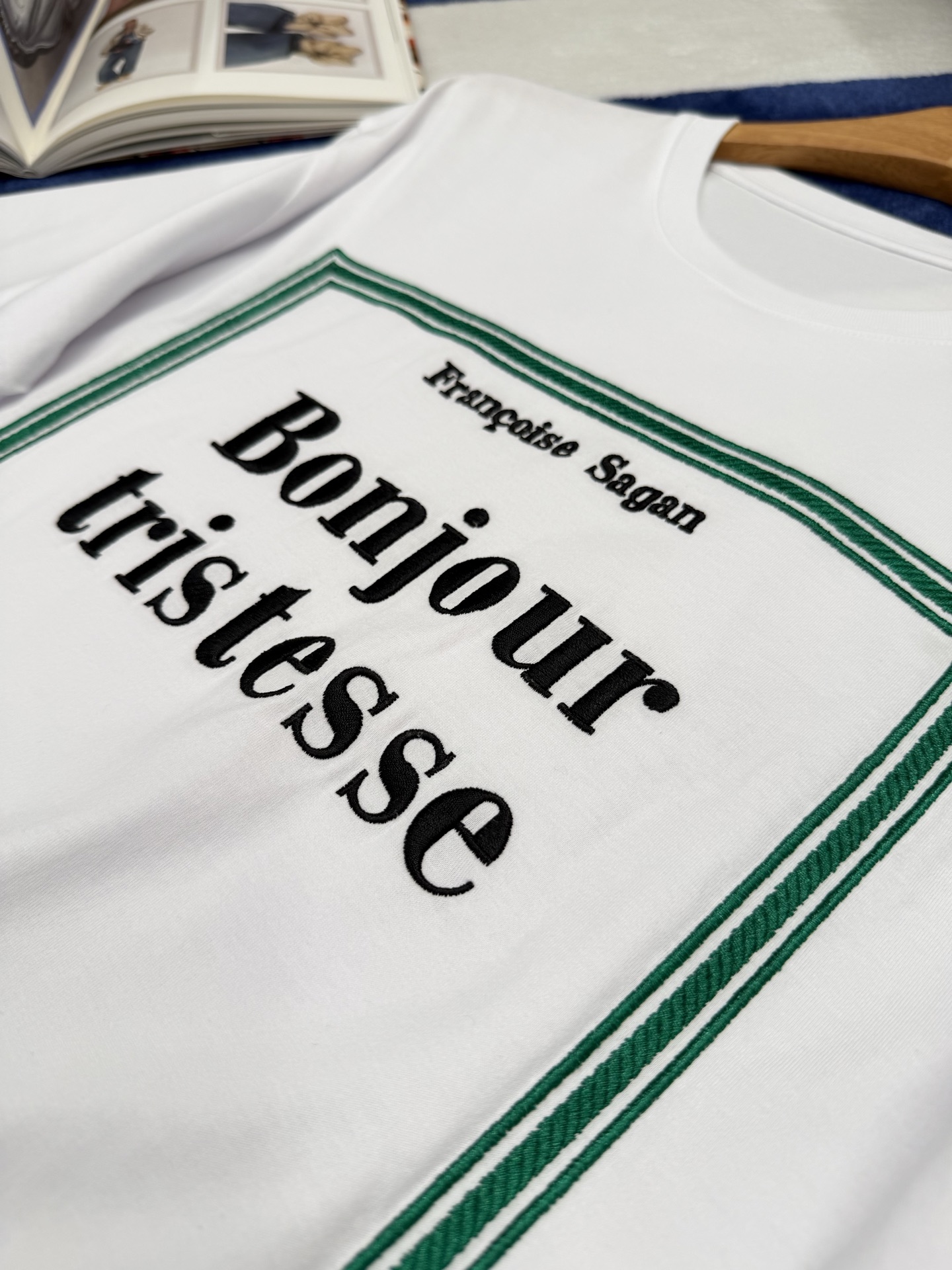 【新款现货发售】新款🆕白色短袖刺绣T恤✨✨,精选白色与绿色棉质平纹针织面料,亲肤柔软,透气舒适🔜正面以刺绣工艺呈现图书封面图案💫,诠释经典老钱风👍🏻融合立体剪裁与百搭版型,轻松修饰身形,成就衣橱必备单品☑️简约纯色设计,低调中散发独特魅力😜无论日常休闲还是简约通勤,皆能自信驾驭,彰显专属格调💗四季可穿,单穿清爽,内搭出众🉑情侣共享,尺码SML
