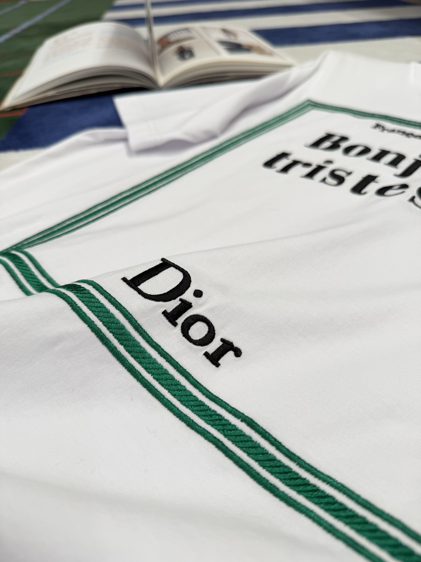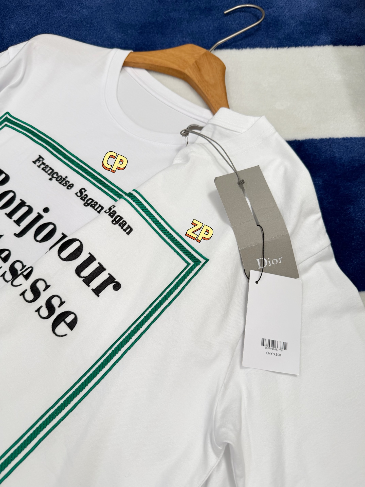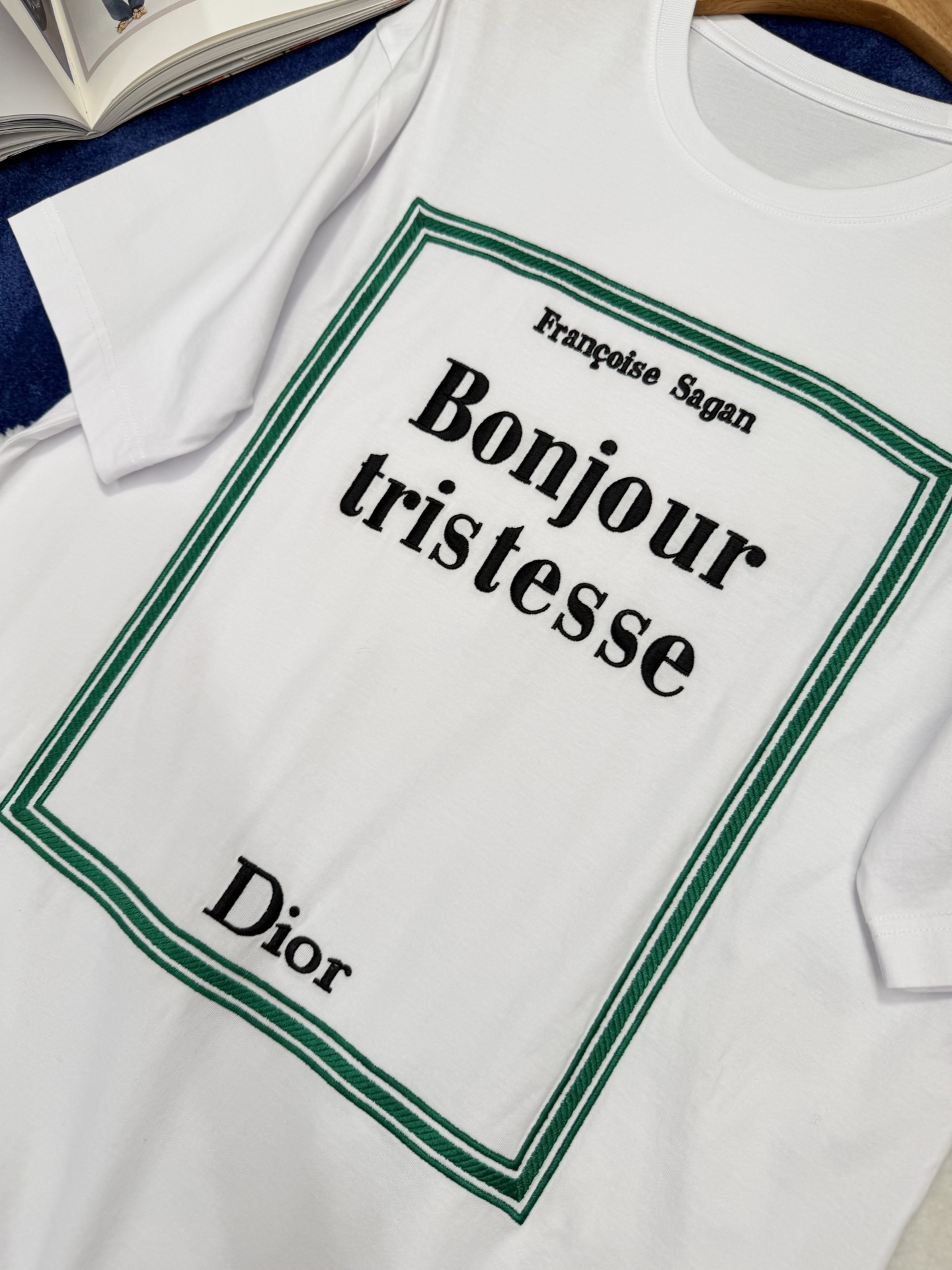 【新款现货发售】新款🆕白色短袖刺绣T恤✨✨,精选白色与绿色棉质平纹针织面料,亲肤柔软,透气舒适🔜正面以刺绣工艺呈现图书封面图案💫,诠释经典老钱风👍🏻融合立体剪裁与百搭版型,轻松修饰身形,成就衣橱必备单品☑️简约纯色设计,低调中散发独特魅力😜无论日常休闲还是简约通勤,皆能自信驾驭,彰显专属格调💗四季可穿,单穿清爽,内搭出众🉑情侣共享,尺码SML
