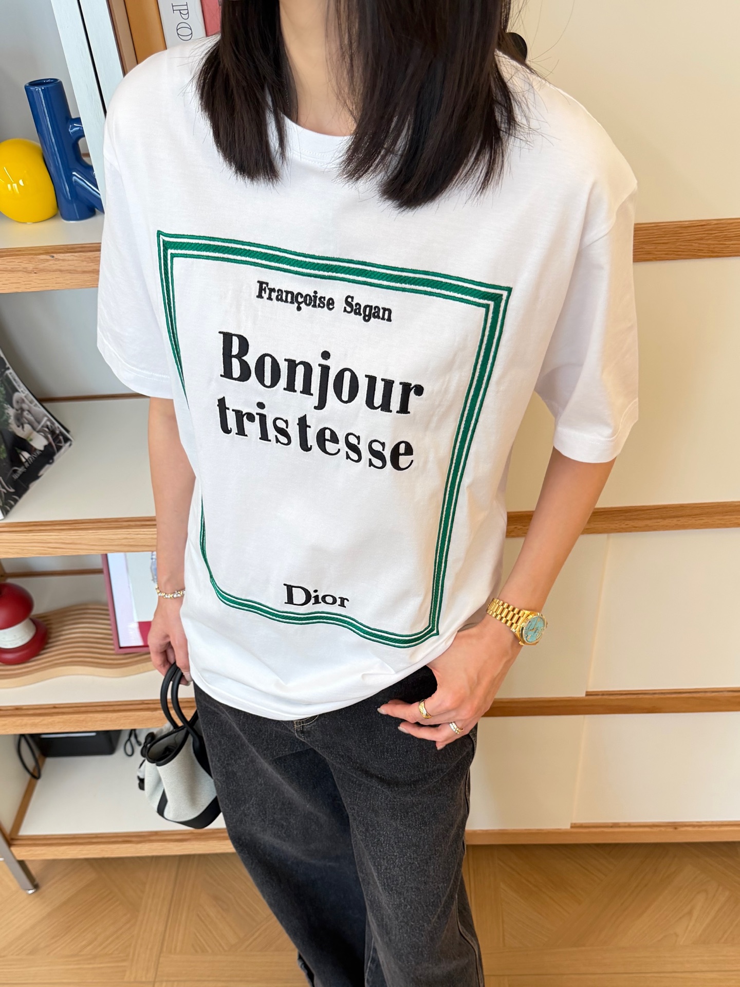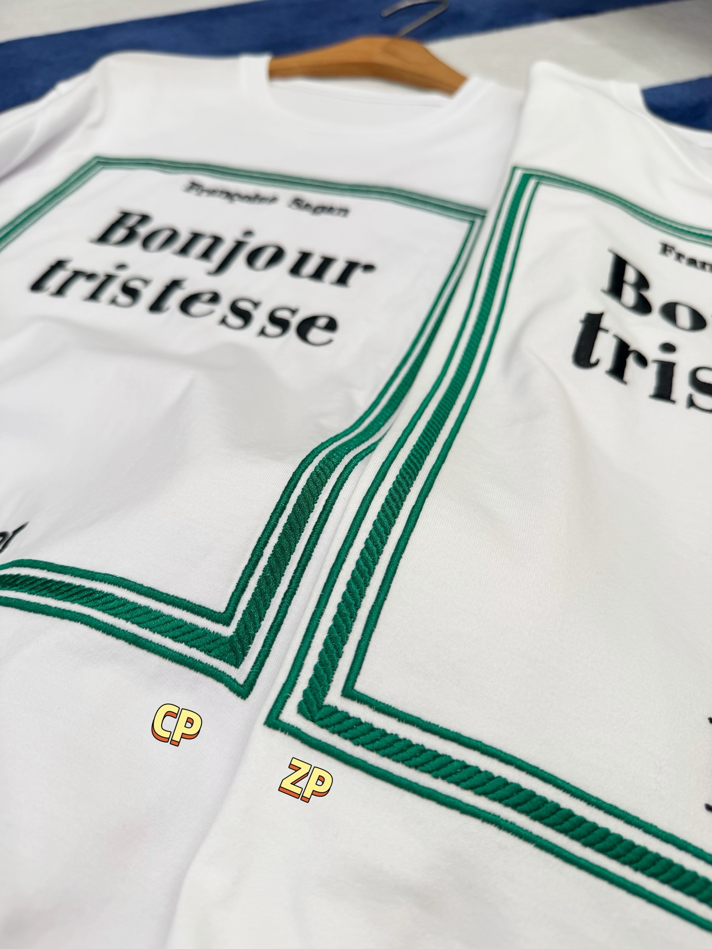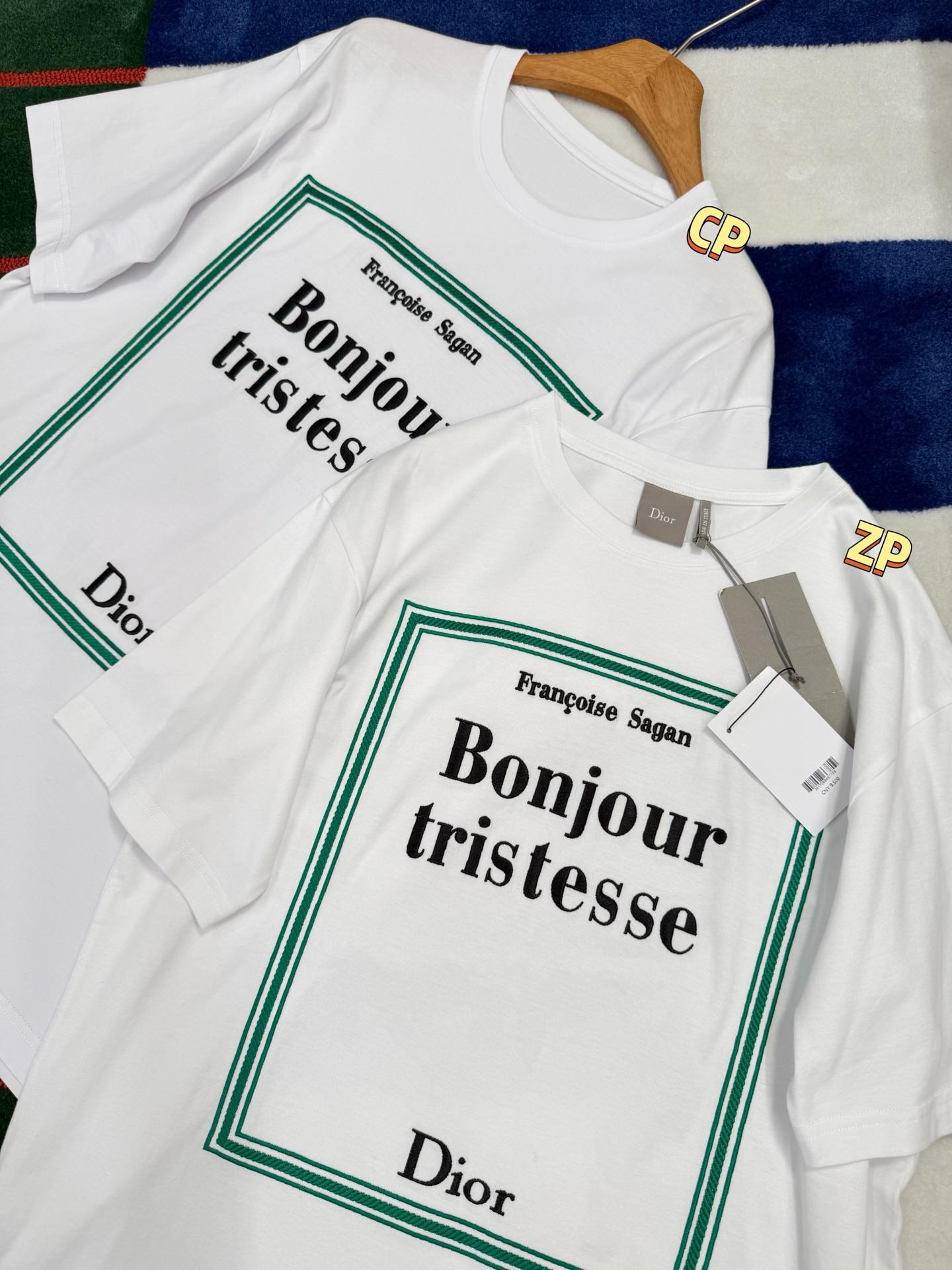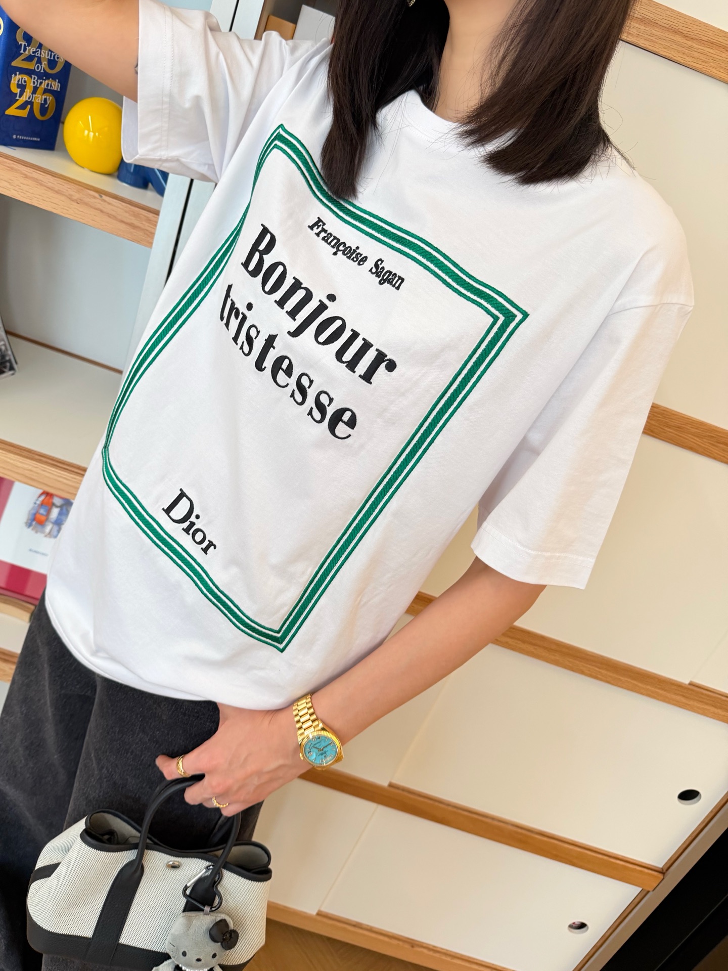 【新款现货发售】新款🆕白色短袖刺绣T恤✨✨,精选白色与绿色棉质平纹针织面料,亲肤柔软,透气舒适🔜正面以刺绣工艺呈现图书封面图案💫,诠释经典老钱风👍🏻融合立体剪裁与百搭版型,轻松修饰身形,成就衣橱必备单品☑️简约纯色设计,低调中散发独特魅力😜无论日常休闲还是简约通勤,皆能自信驾驭,彰显专属格调💗四季可穿,单穿清爽,内搭出众🉑情侣共享,尺码SML