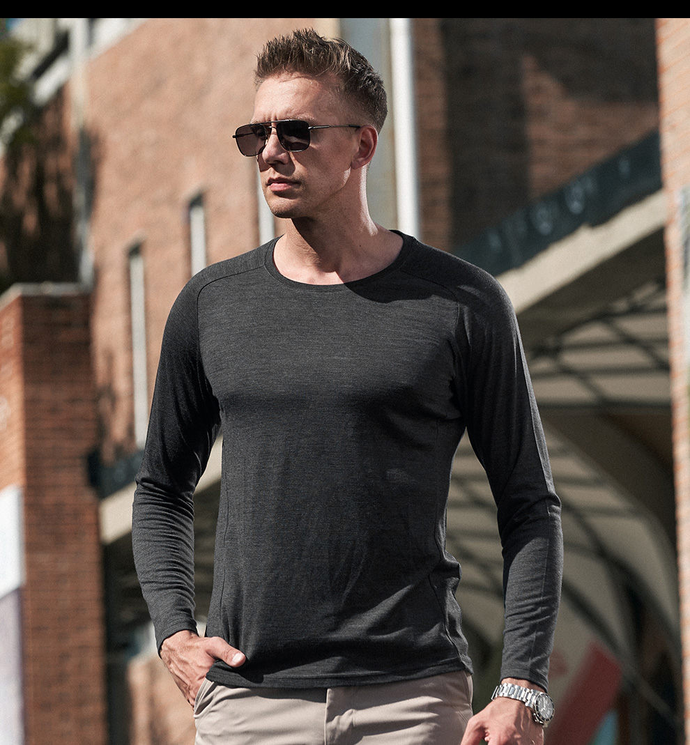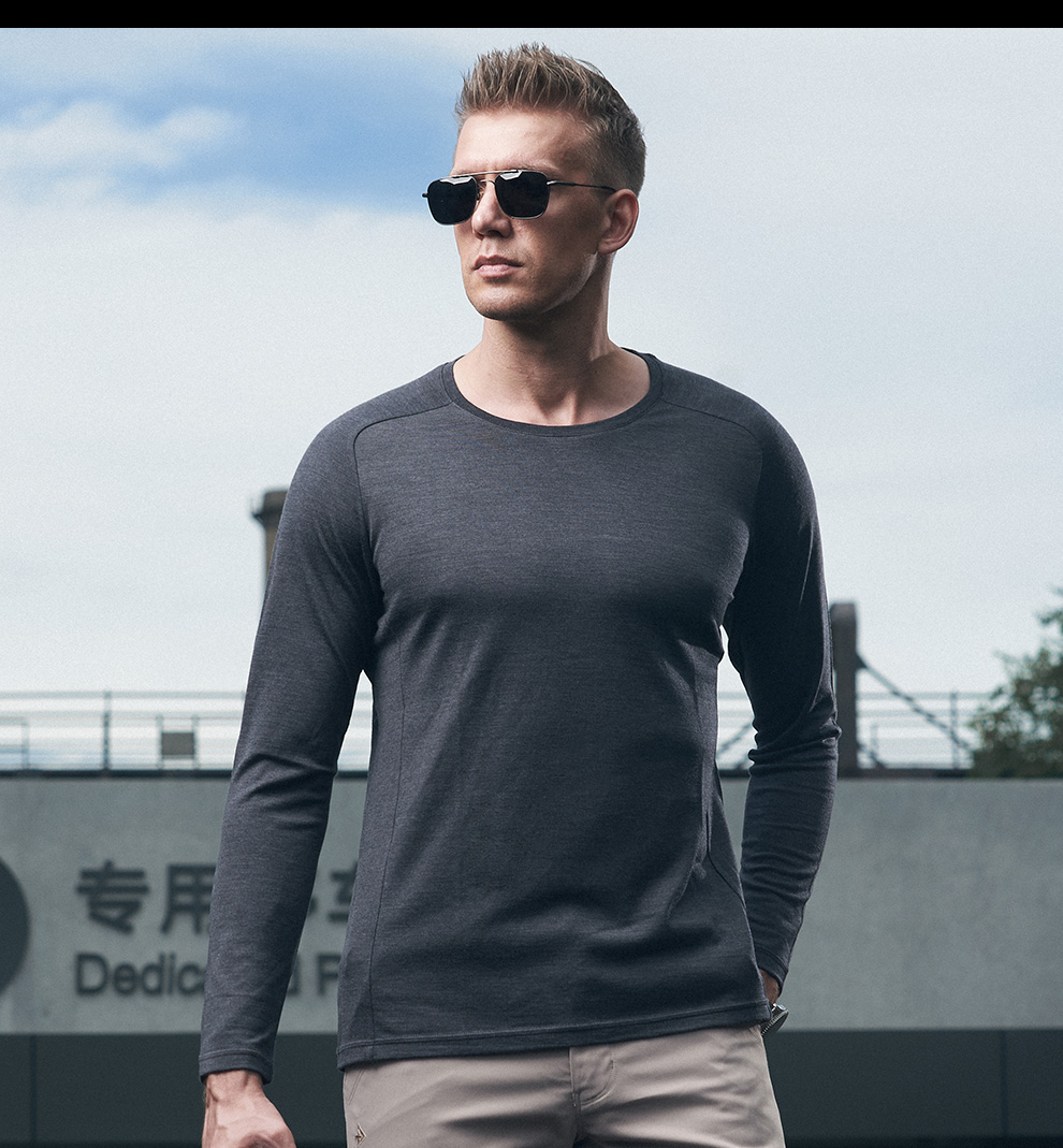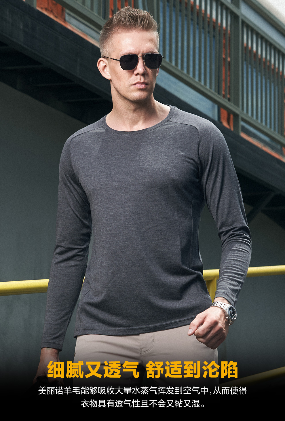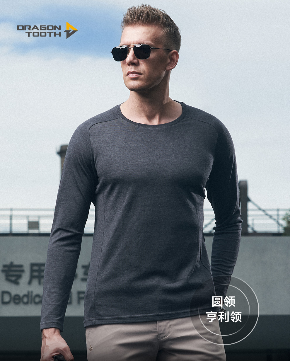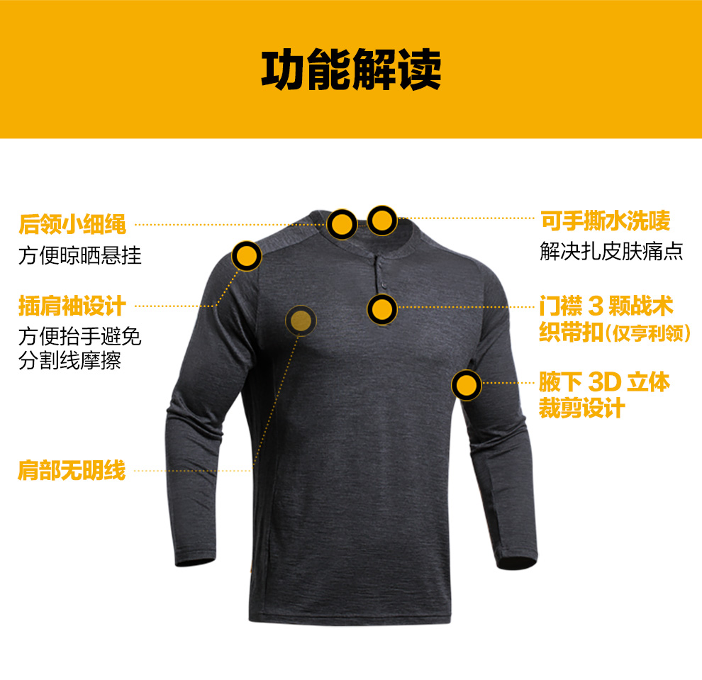 二代隐羽PRO美丽诺羊毛长袖亨利领T恤打底衫男款品质休闲透气男士弹力
