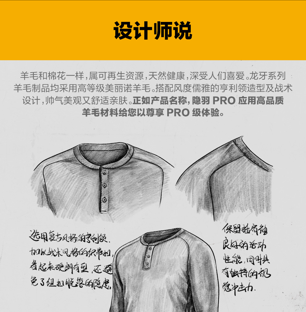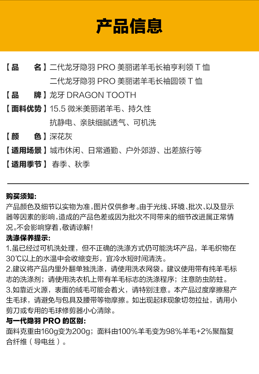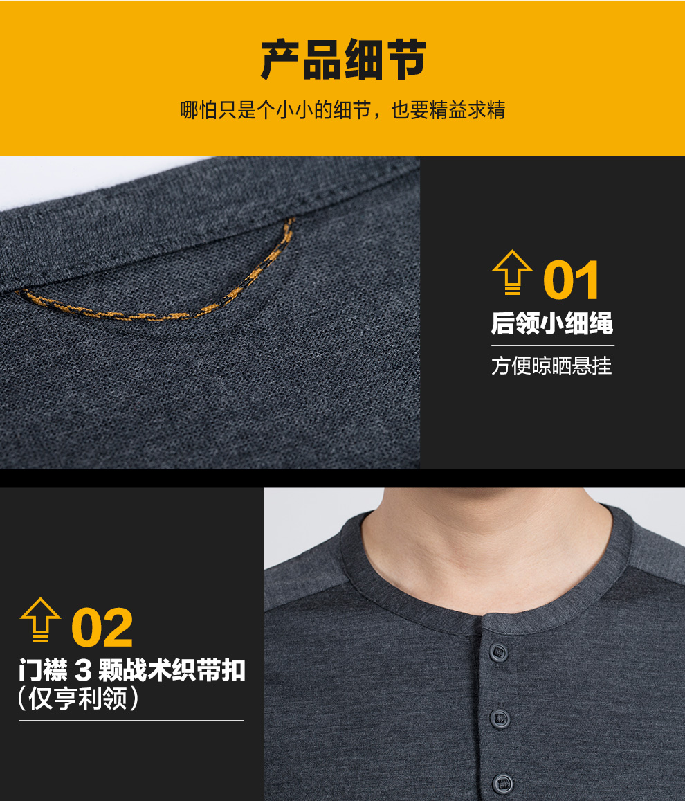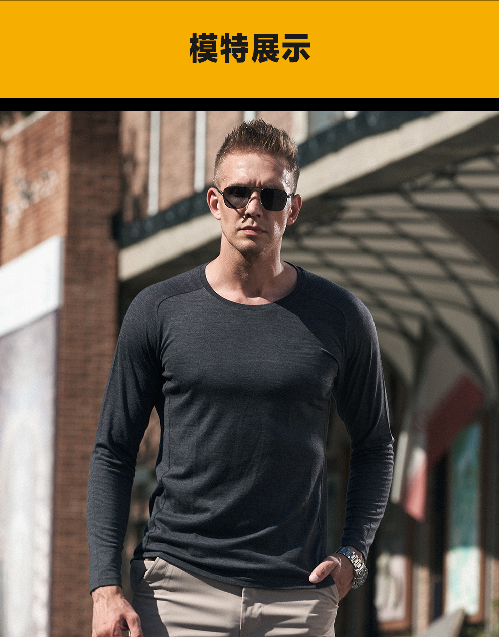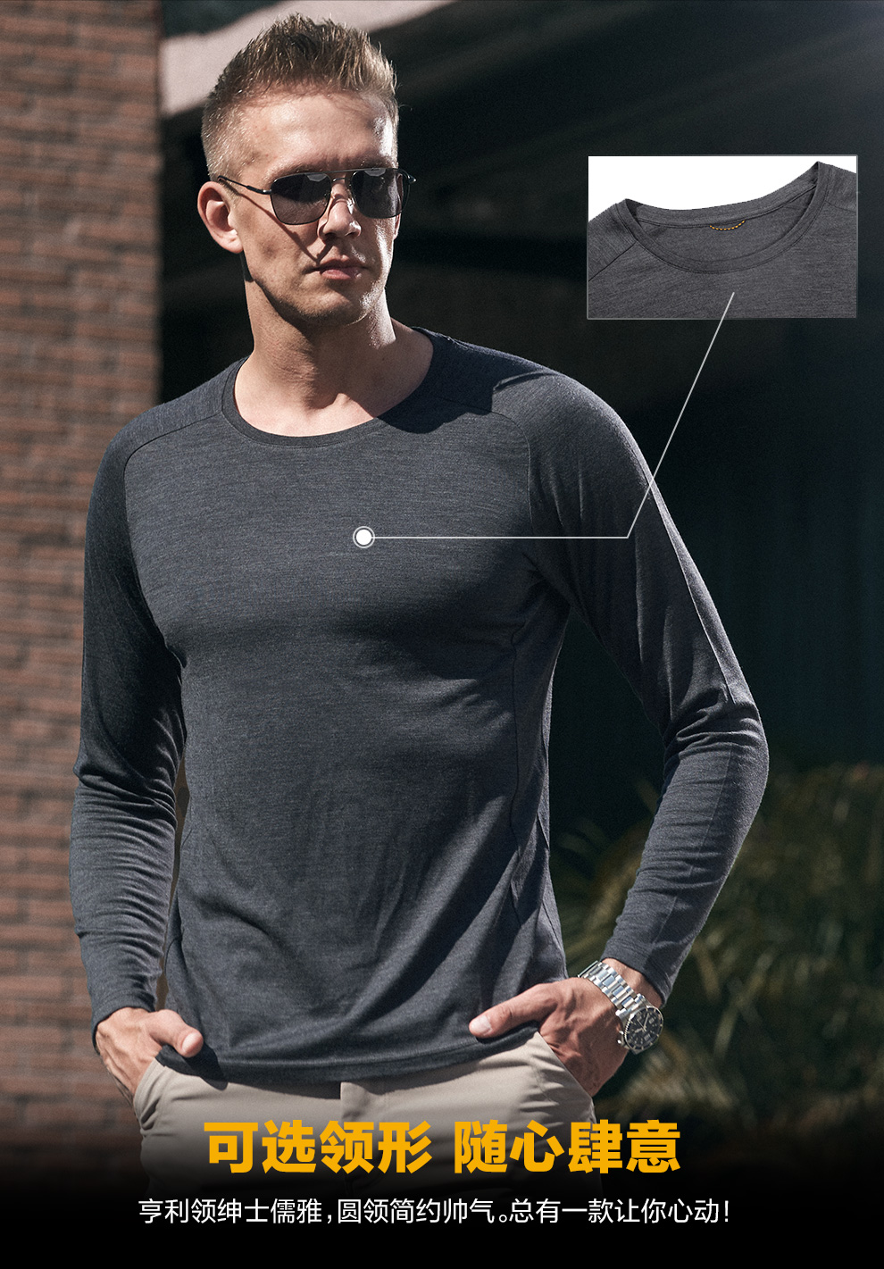 二代隐羽PRO美丽诺羊毛长袖亨利领T恤打底衫男款品质休闲透气男士弹力