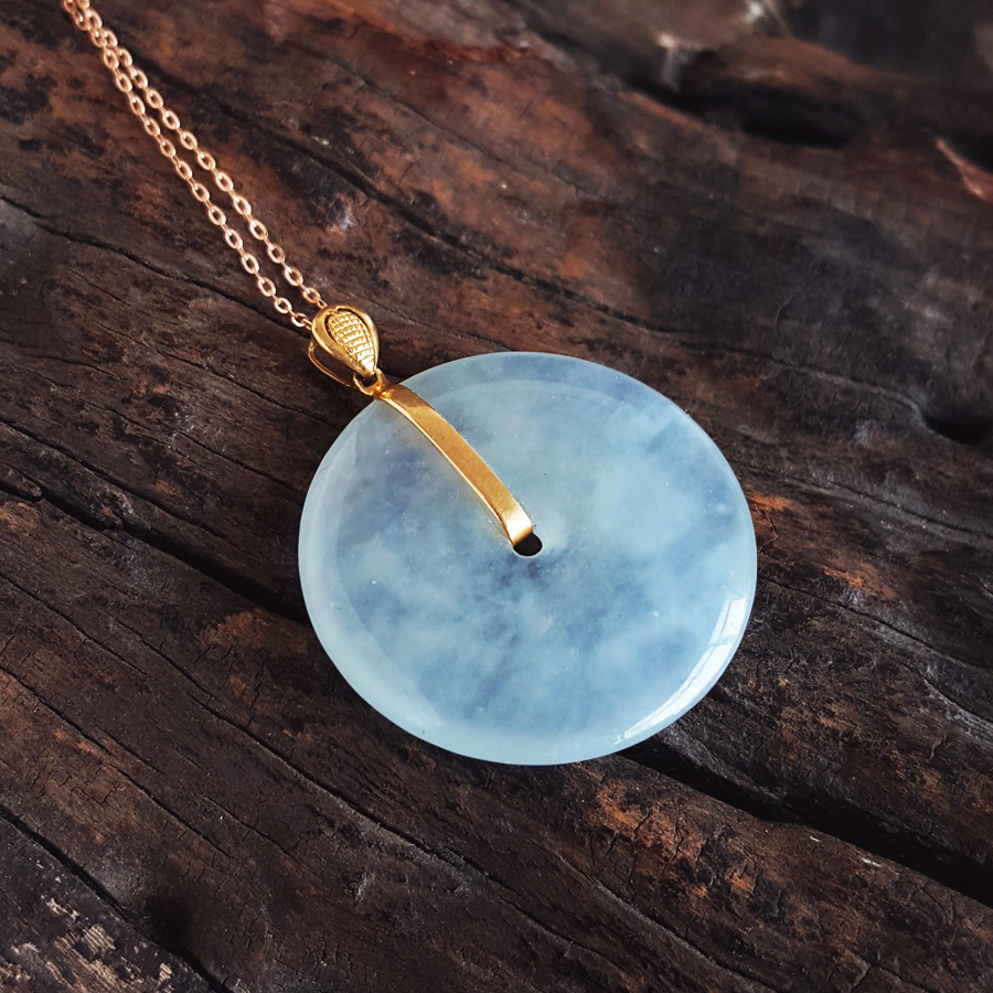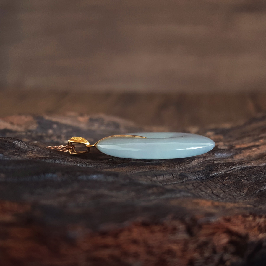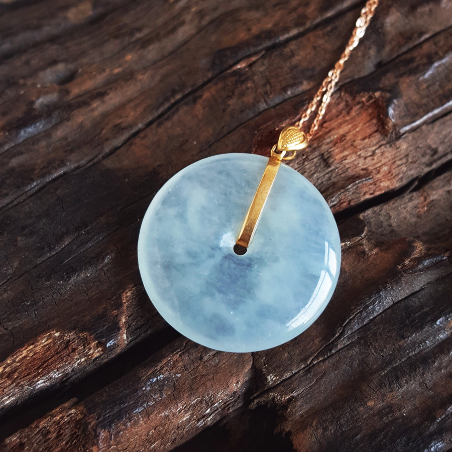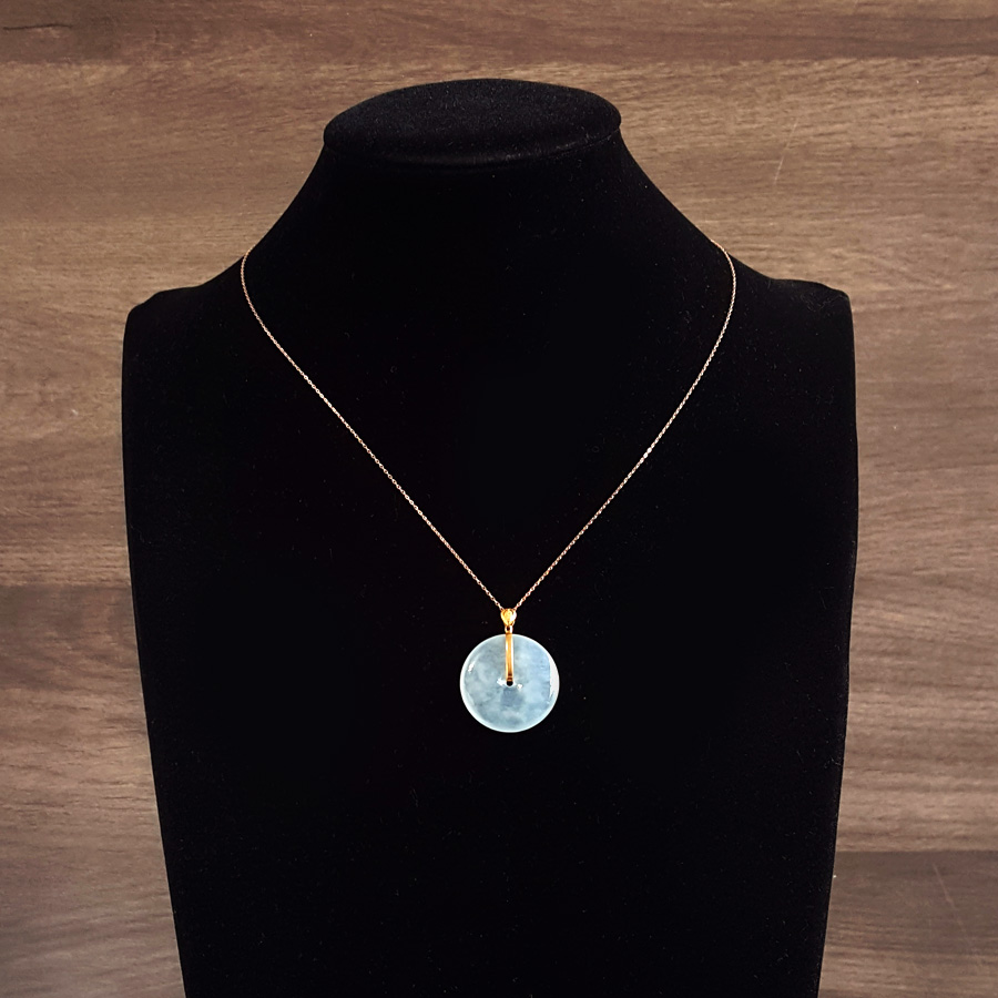 名称 | AU750黄金镶天然细腻冰种晴水平安扣翡翠吊坠项链 |