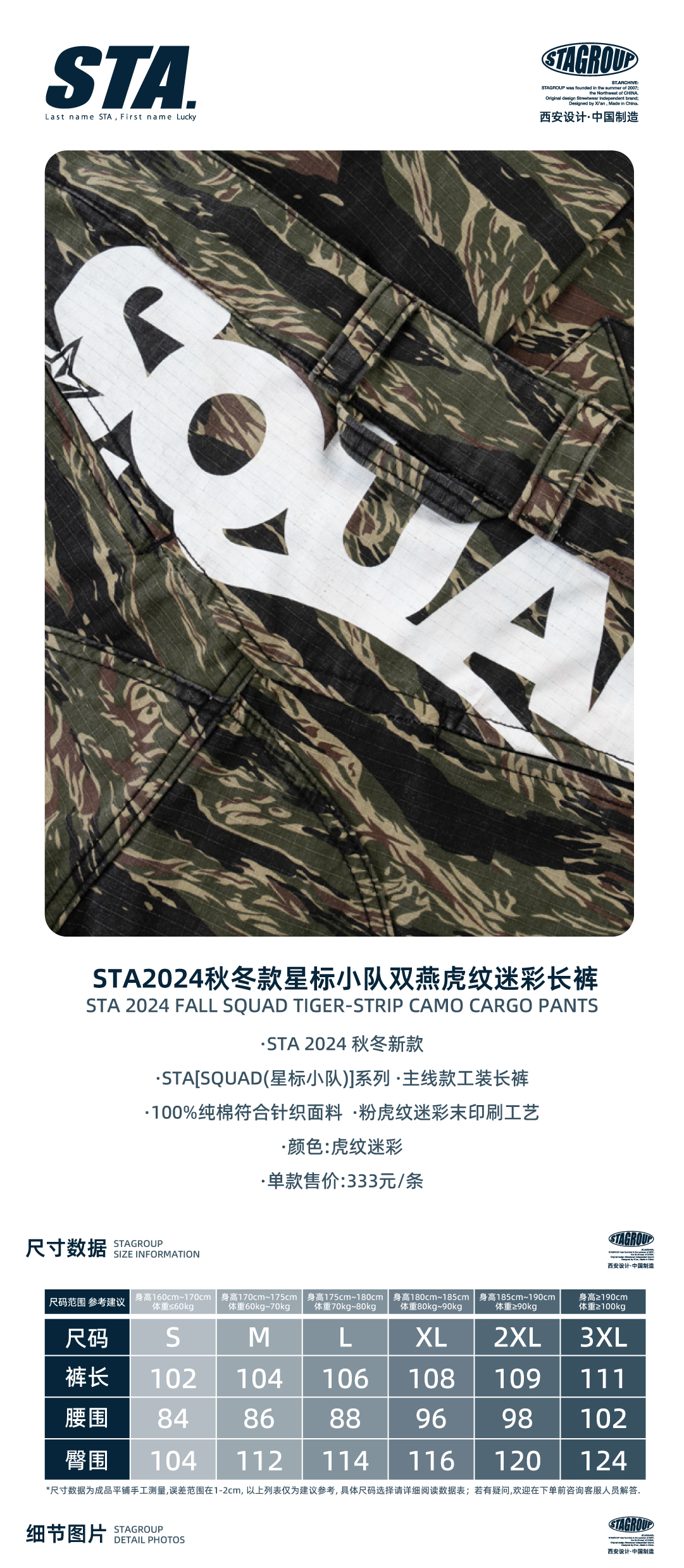 STA2024秋冬款星标小队双燕虎纹迷彩长裤