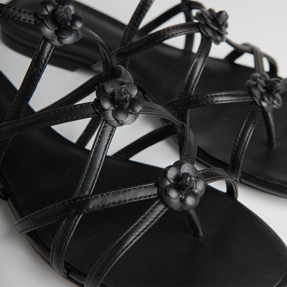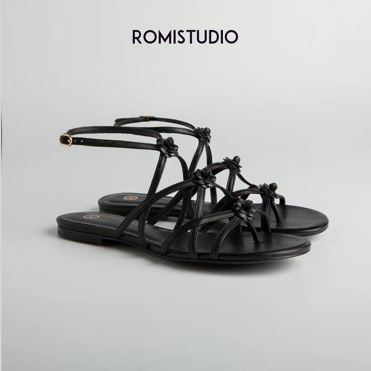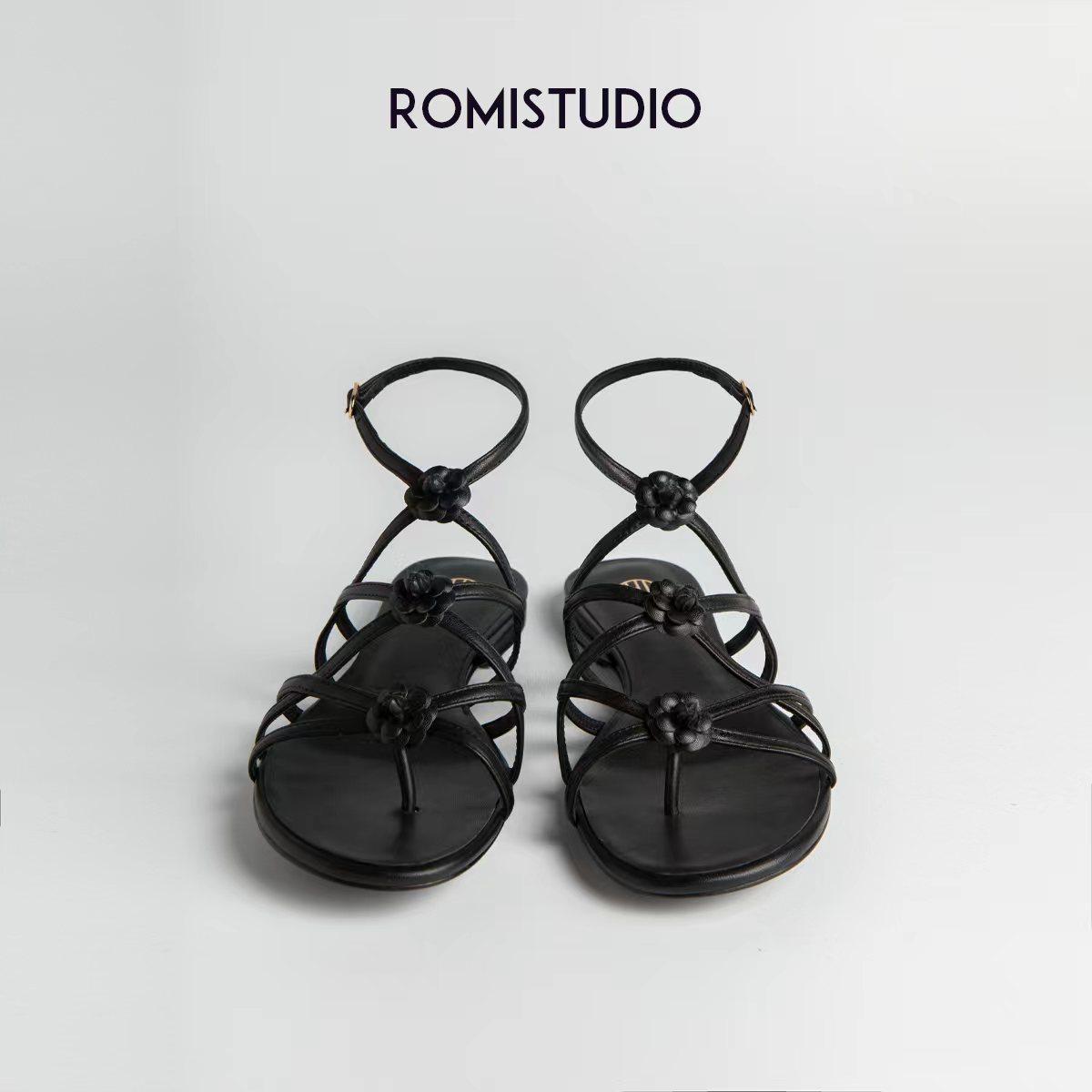 ROMI STUDIO 春夏新品法式气质平底细带山茶花夹趾露趾凉鞋 S3157