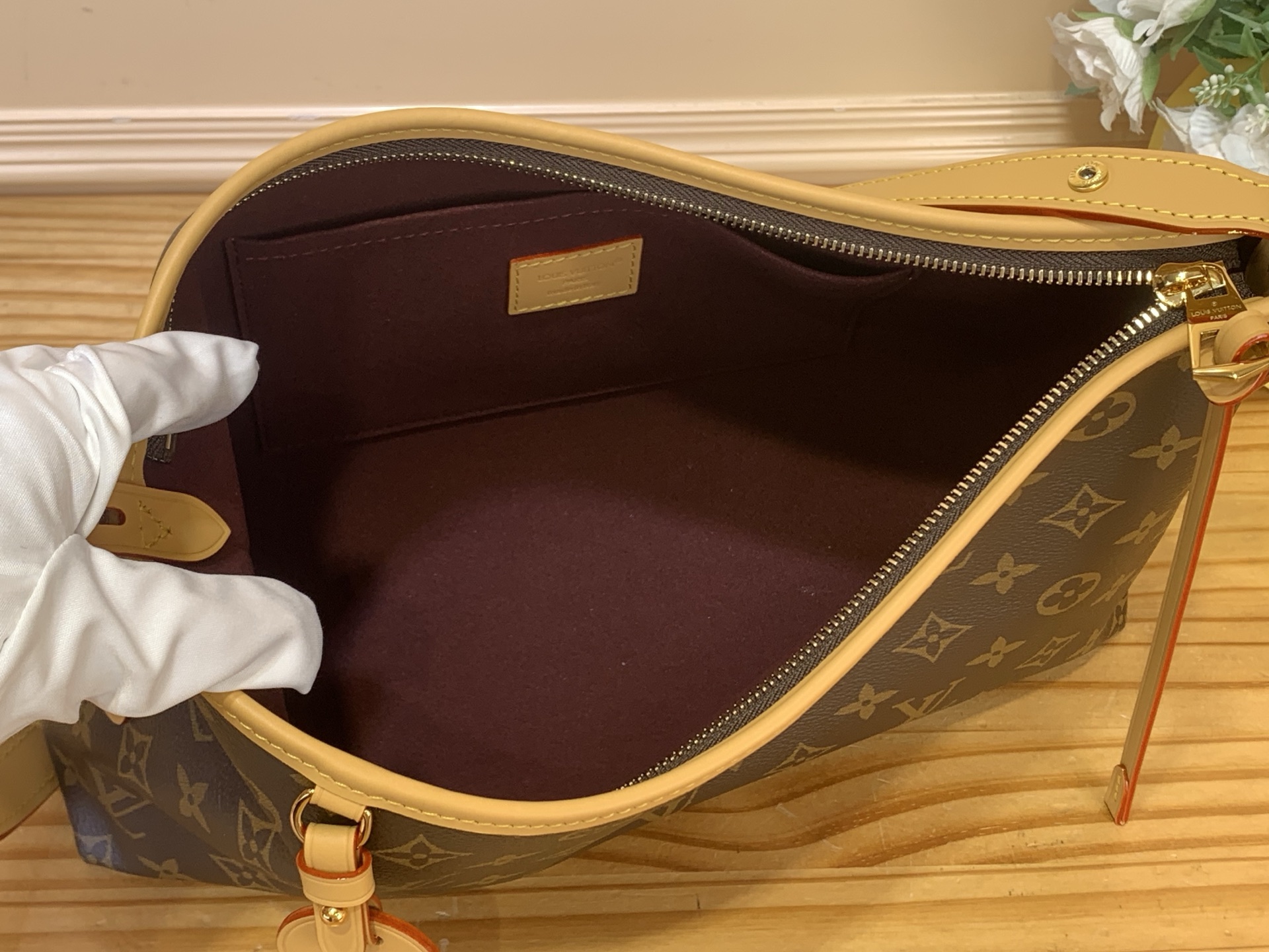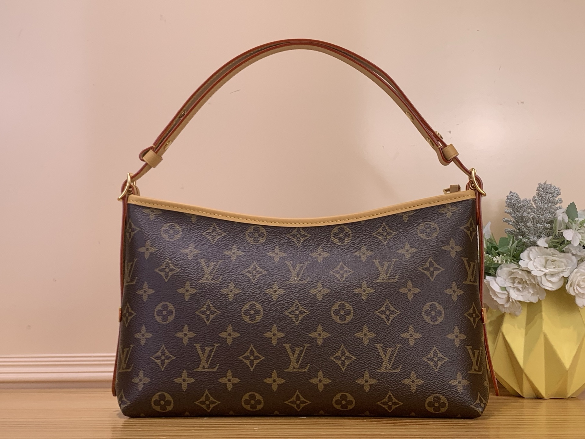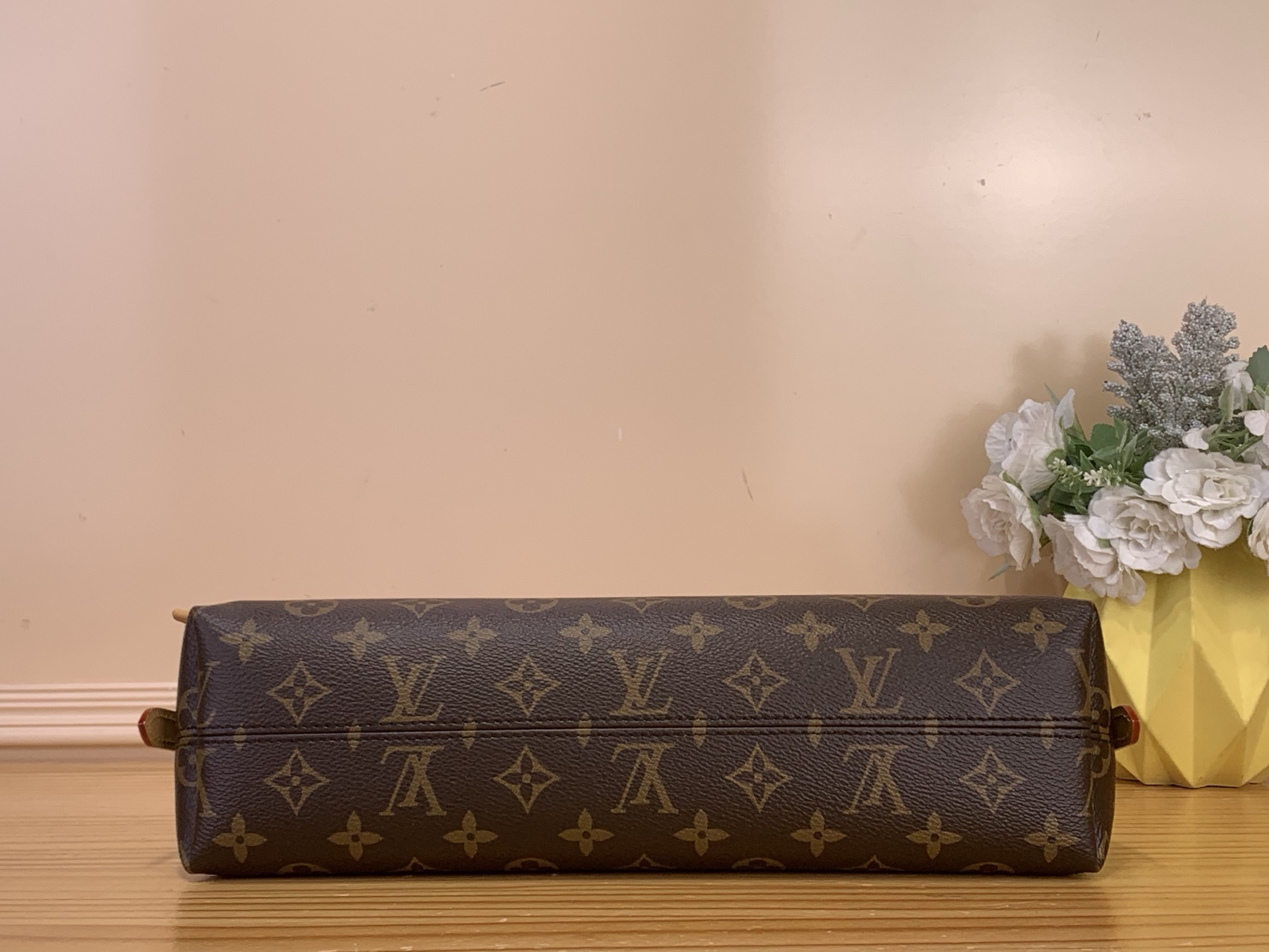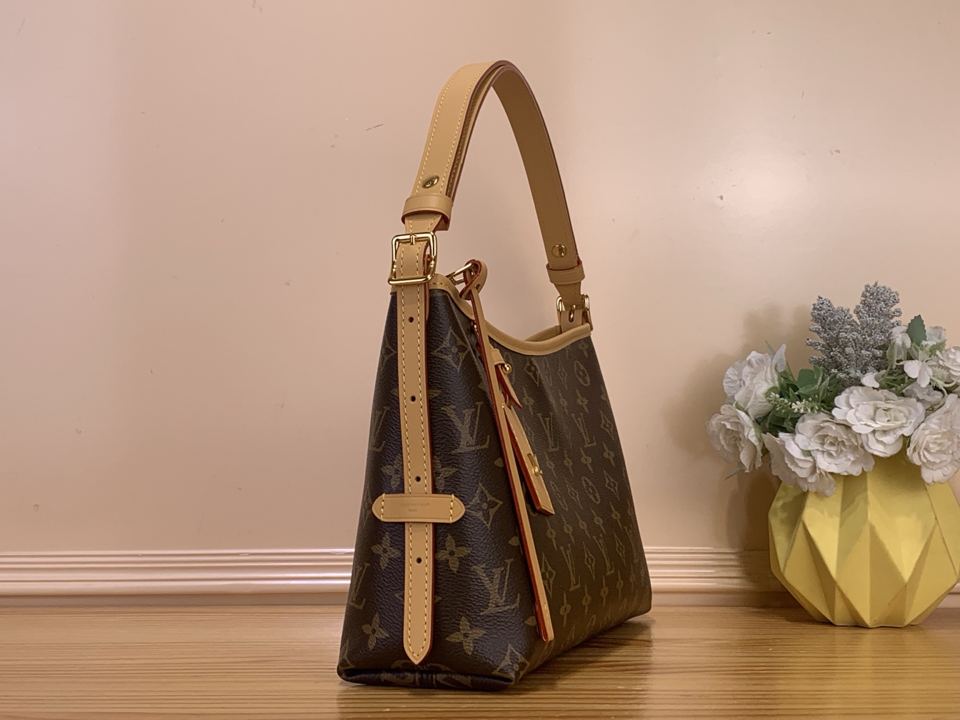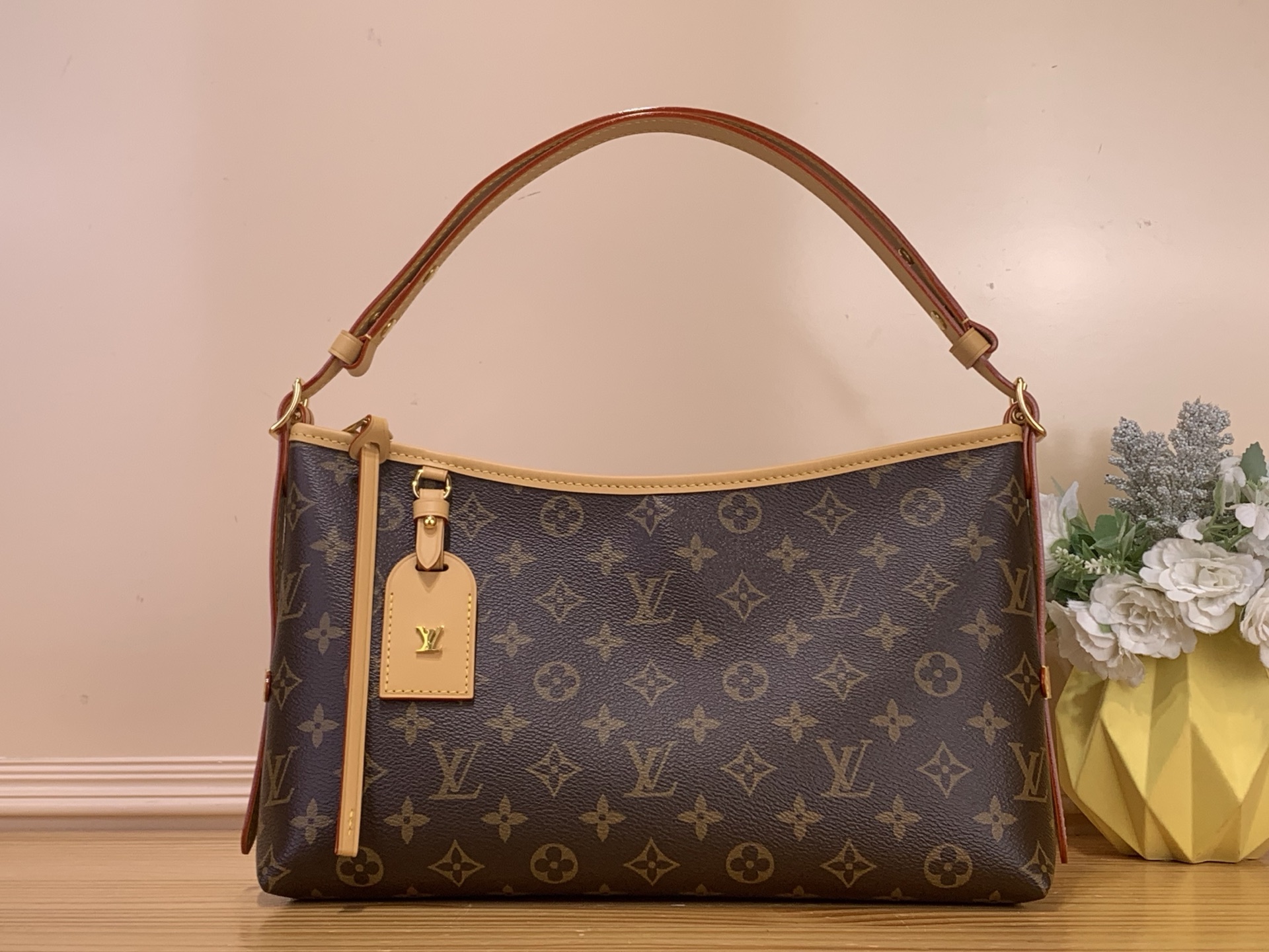 CarryAll EastWest手袋取材 Monogram 帆布和皮革饰边,成就都市生活的贴身伴侣。充裕构型设有齐整内层,大号内袋再添功能元素。Monogram 帆布拉链手拿包通过皮革带固定