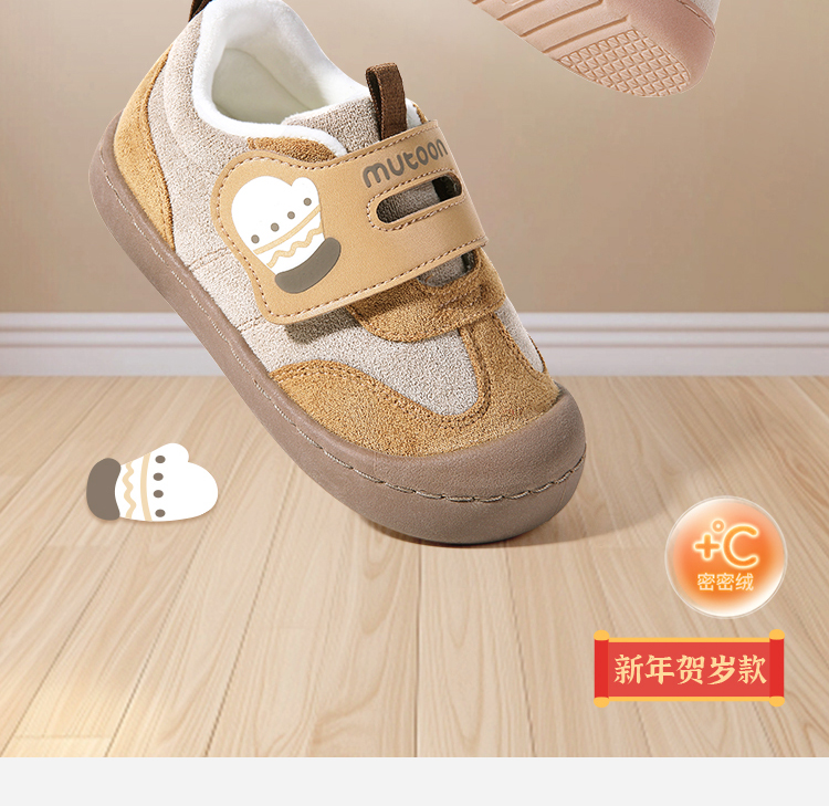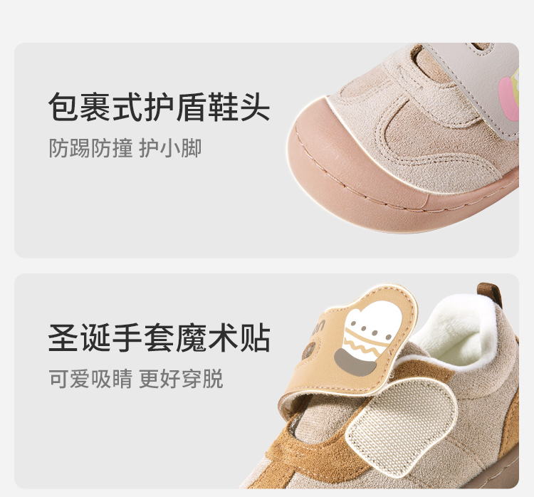 牧童2025冬季加绒保暖学步机能鞋宝宝新款防滑学步鞋卡通软底棉鞋
