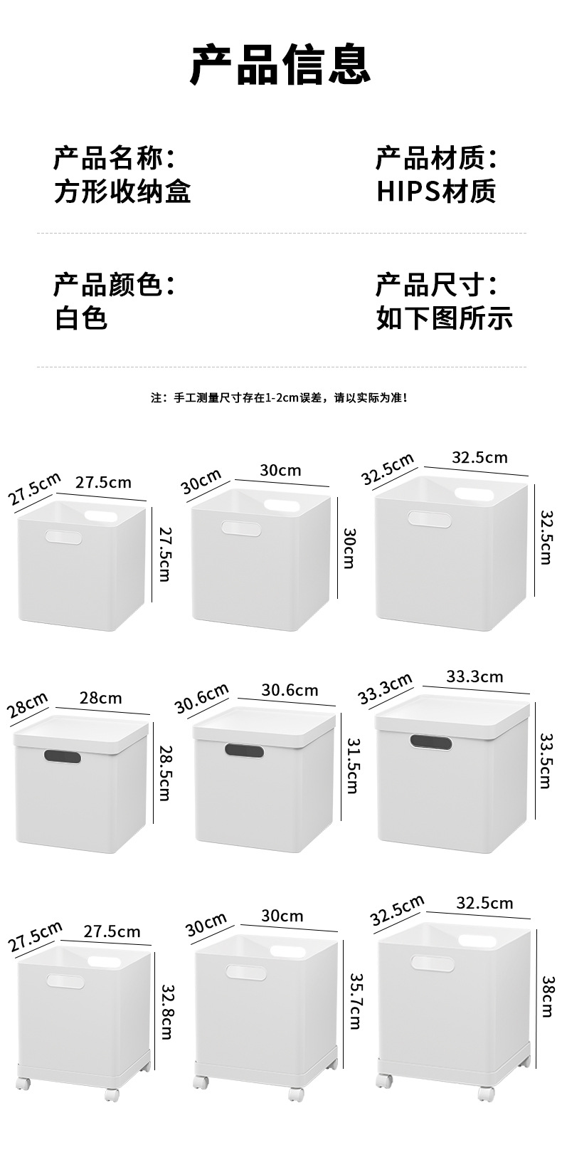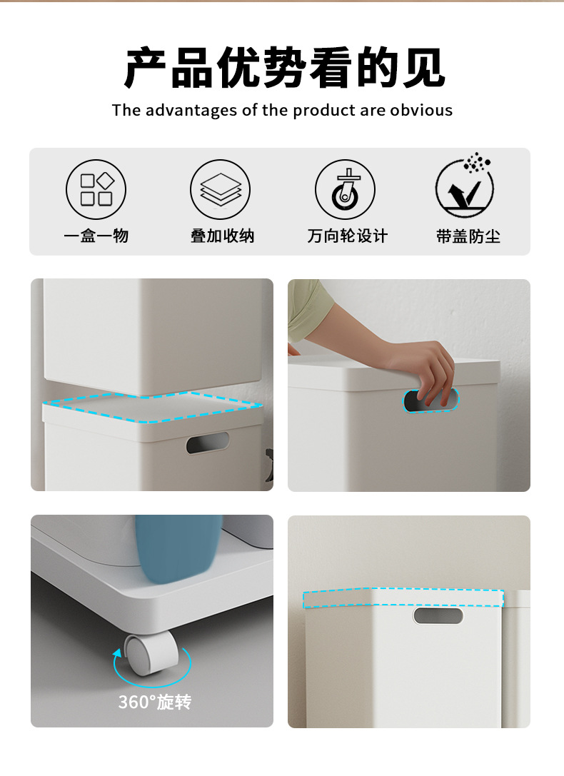 【白色】娜家正方形带轮收纳盒