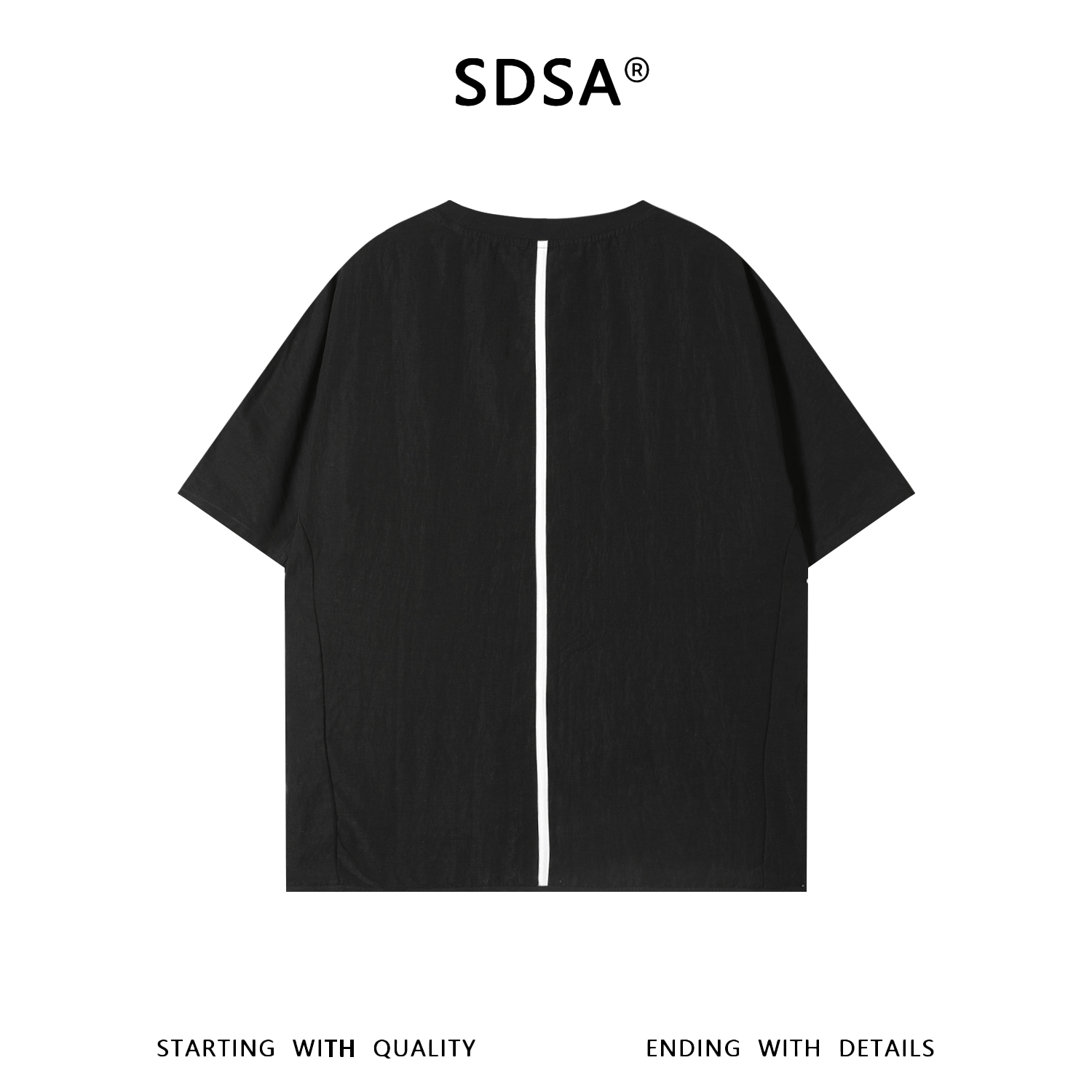 SDSA男装2026新款高贵轻奢简约拼接撞色织带设计圆领短袖T恤百搭