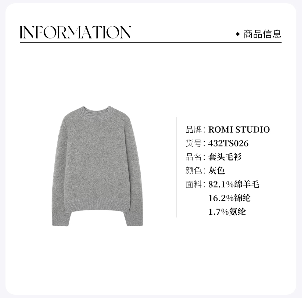 ROMI STUDIO“格雷高知”美利奴绵羊毛混纺花纱圆领毛衫 432TS026