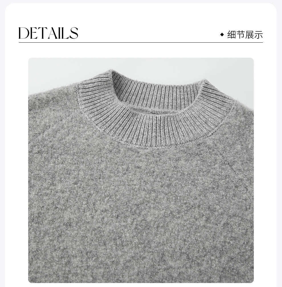 ROMI STUDIO“自在松弛 ”粗针羊毛圆领撞色休闲套头毛衣RWCASZ5668