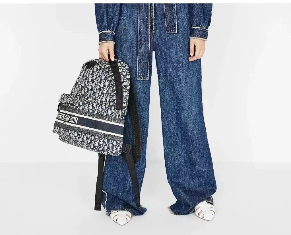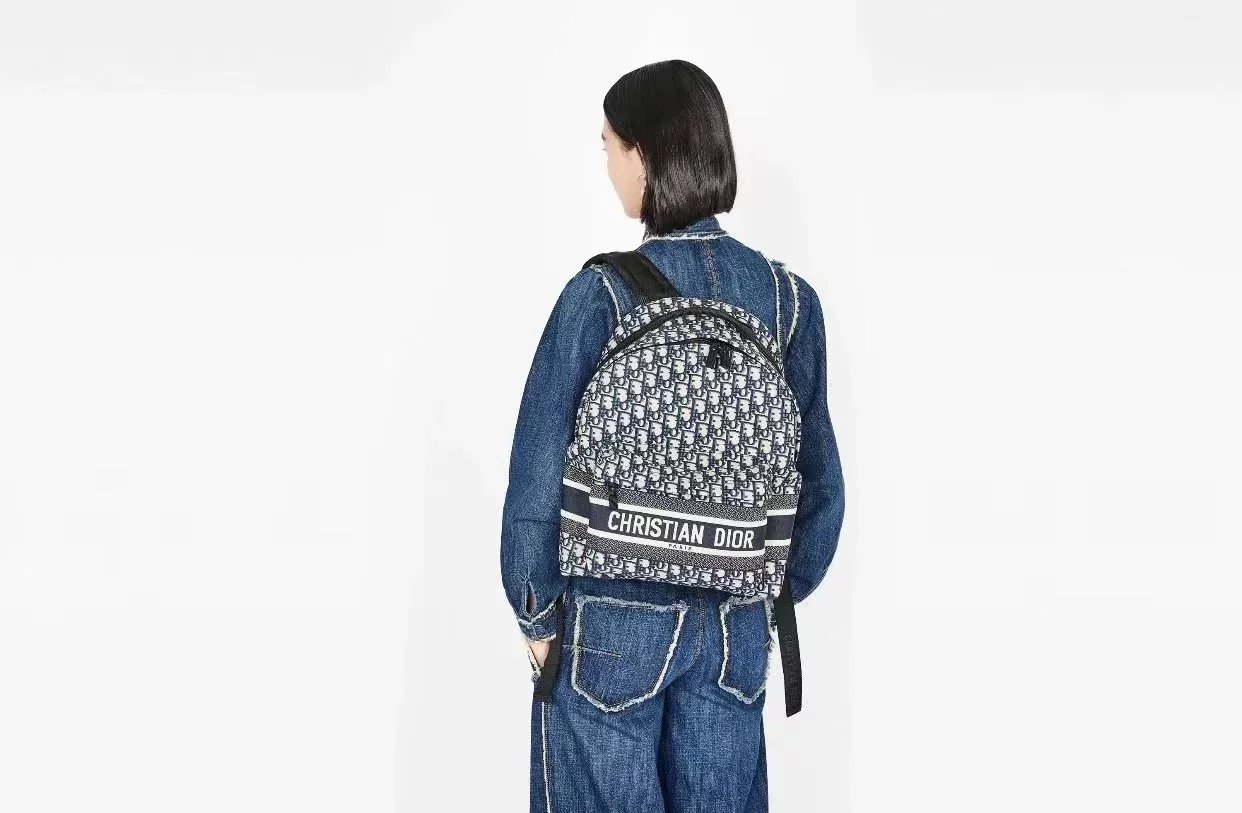 D1OR TRAVEL 双肩背包 经典的蓝色Oblique印花极具标志性细节 既时尚又实用 nice 颜值在线,容量大 能装,包体又软还极轻 背起来很OK ,出行很方便 男女,人手,太爱了 尺寸:35:41:15cm