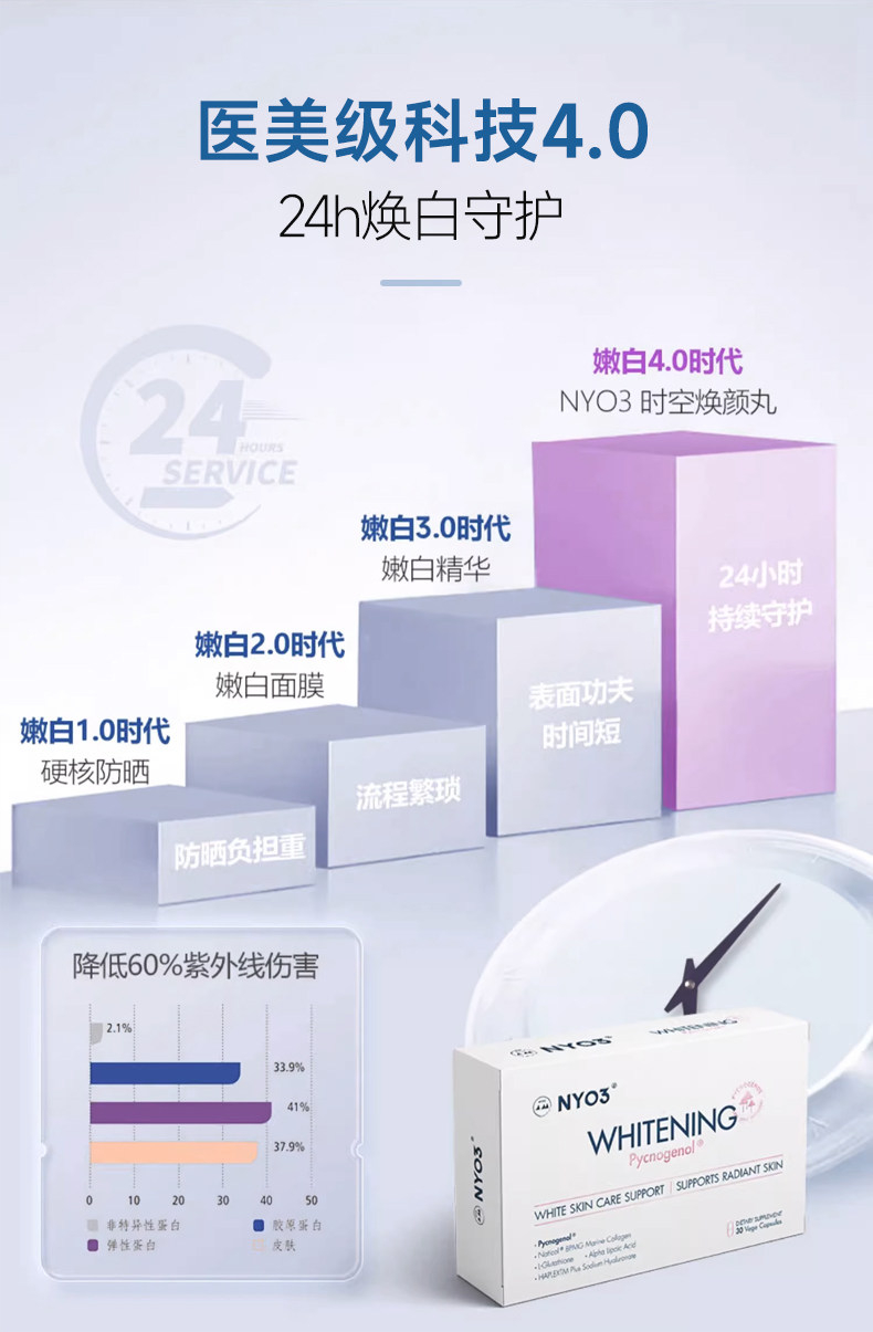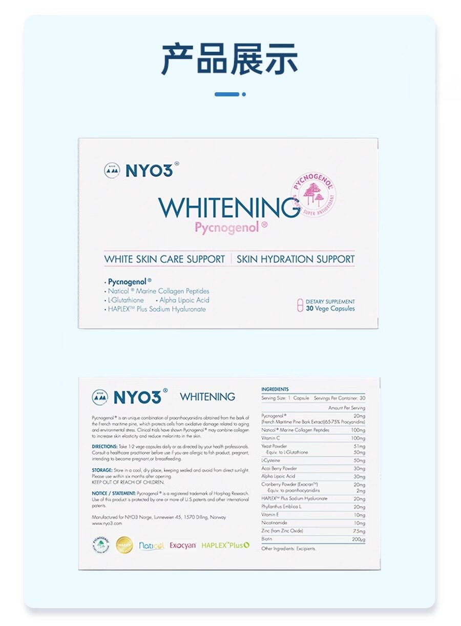 NYO3挪威进口焕白丸白全身胶原蛋白内服嫩白提亮美白丸官方正品