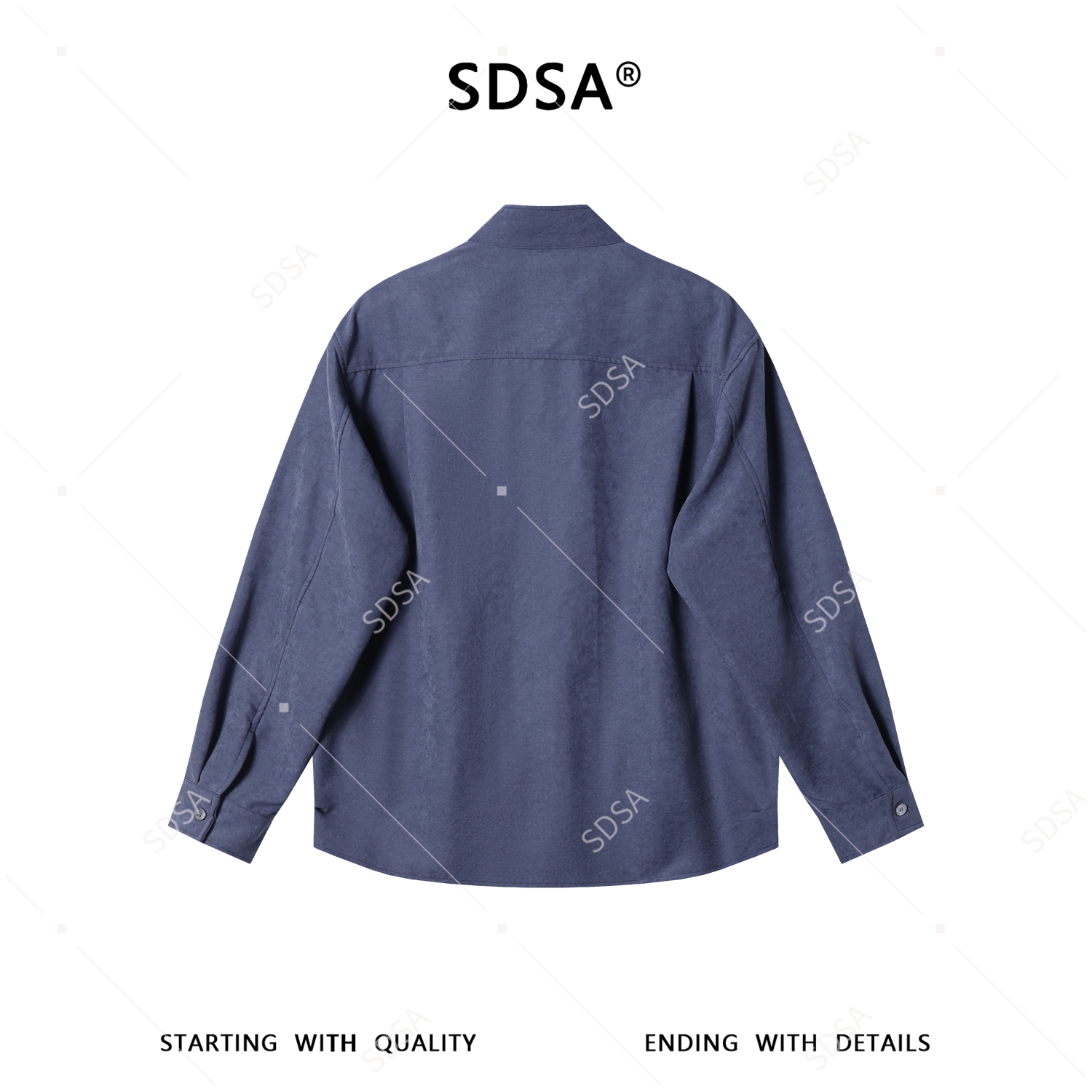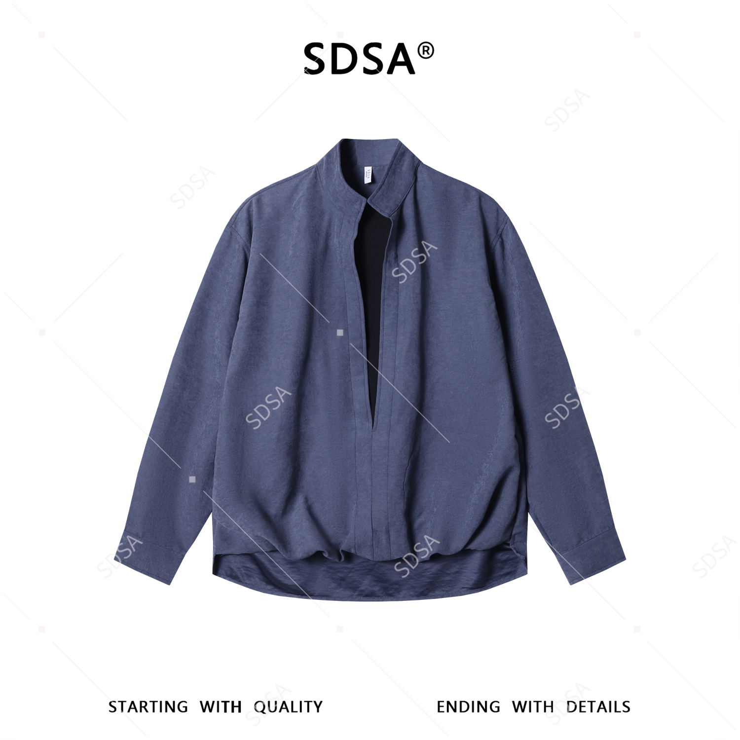 SDSA男装2026新款高贵轻奢韩版简约拼接前短后长套头立领衬衫百搭