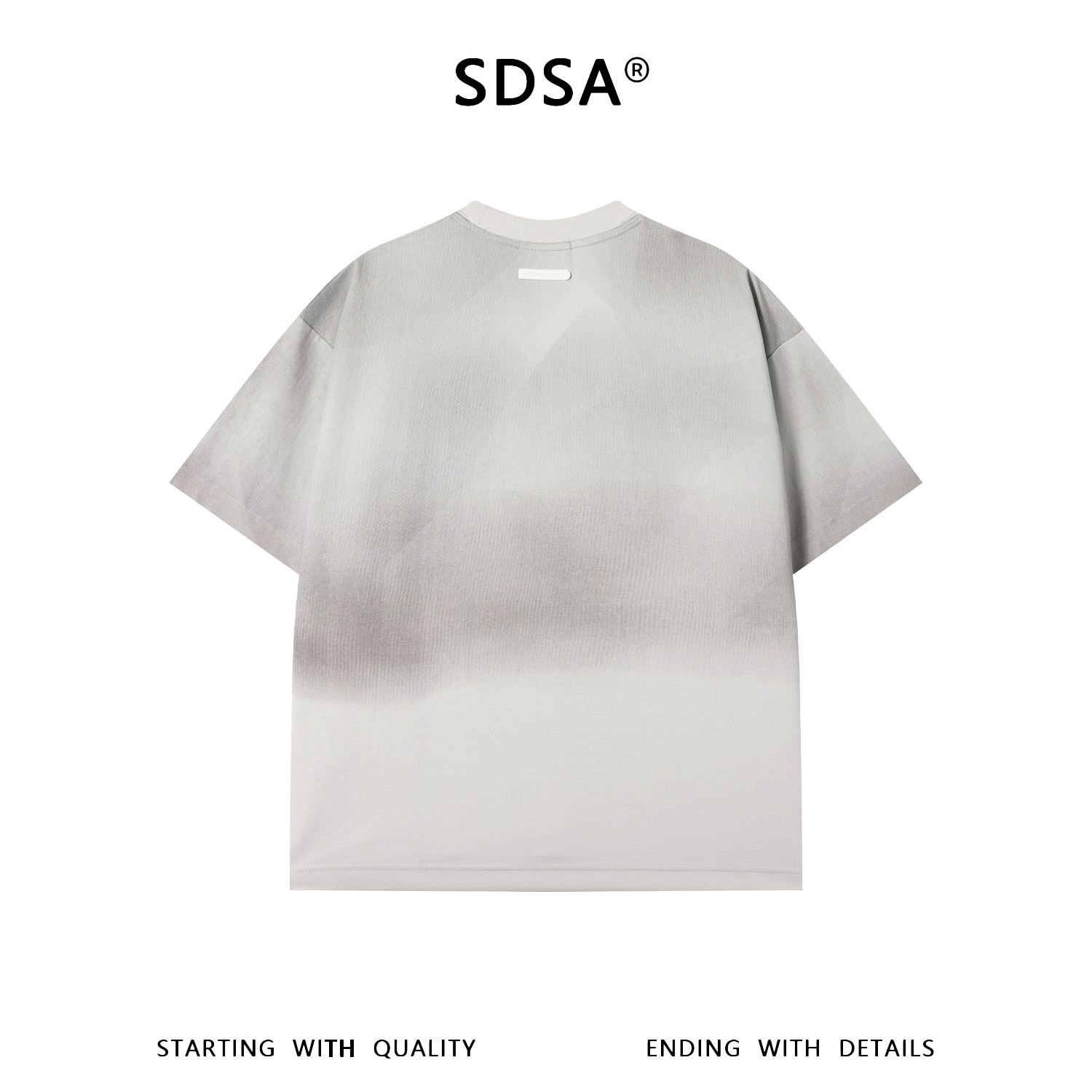 SDSA男装2026新款轻奢简约时尚渐变下摆印花设计圆领短袖T恤百搭
