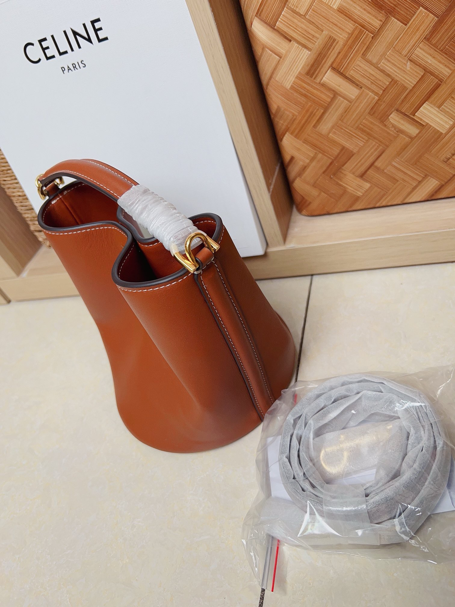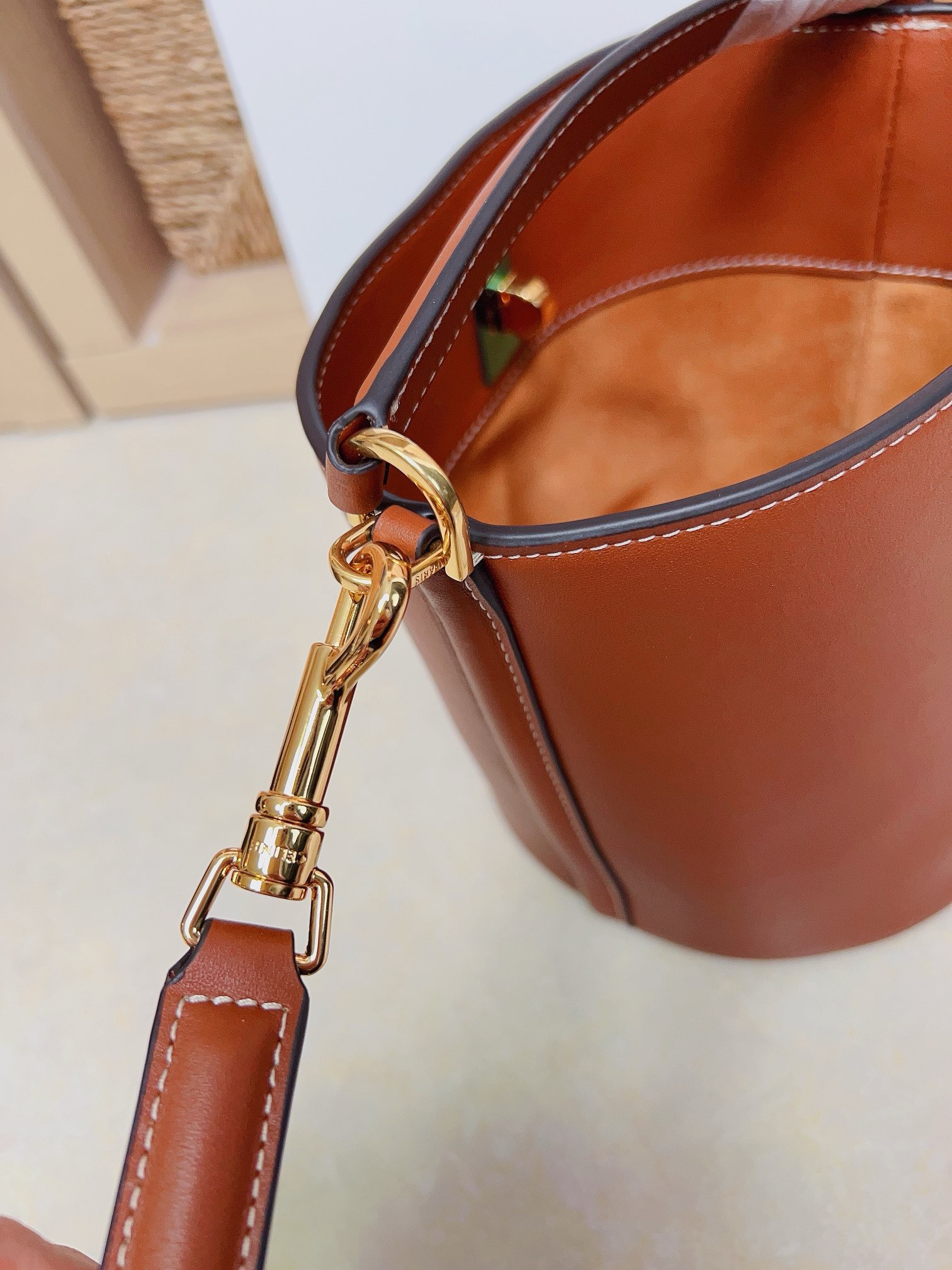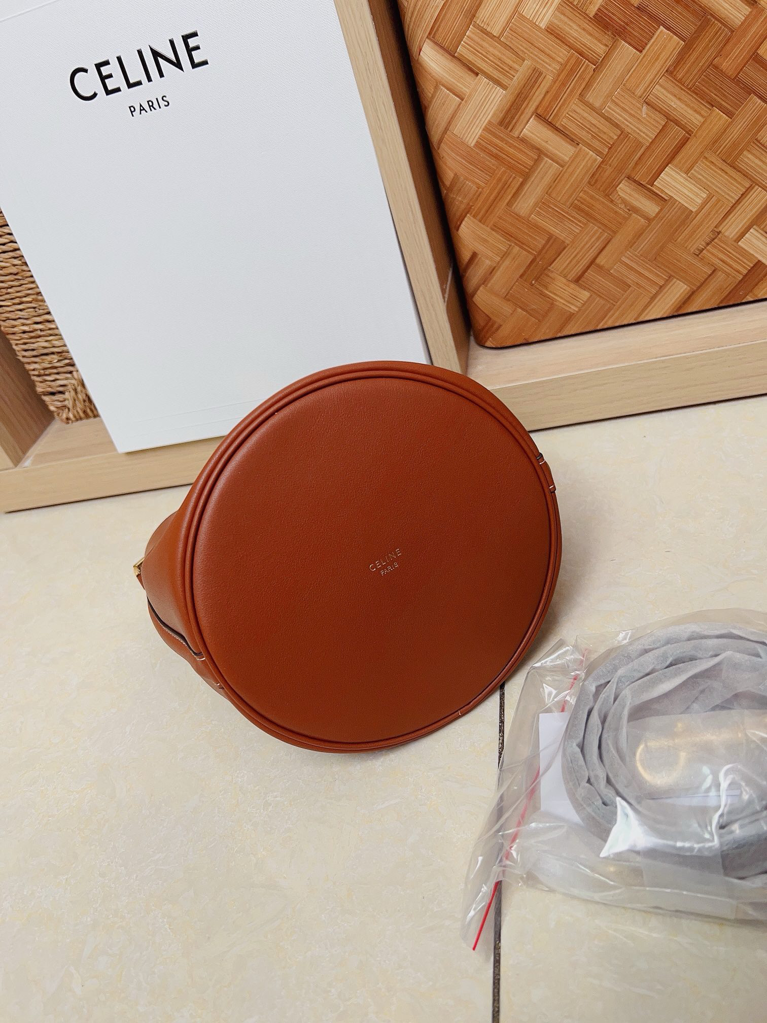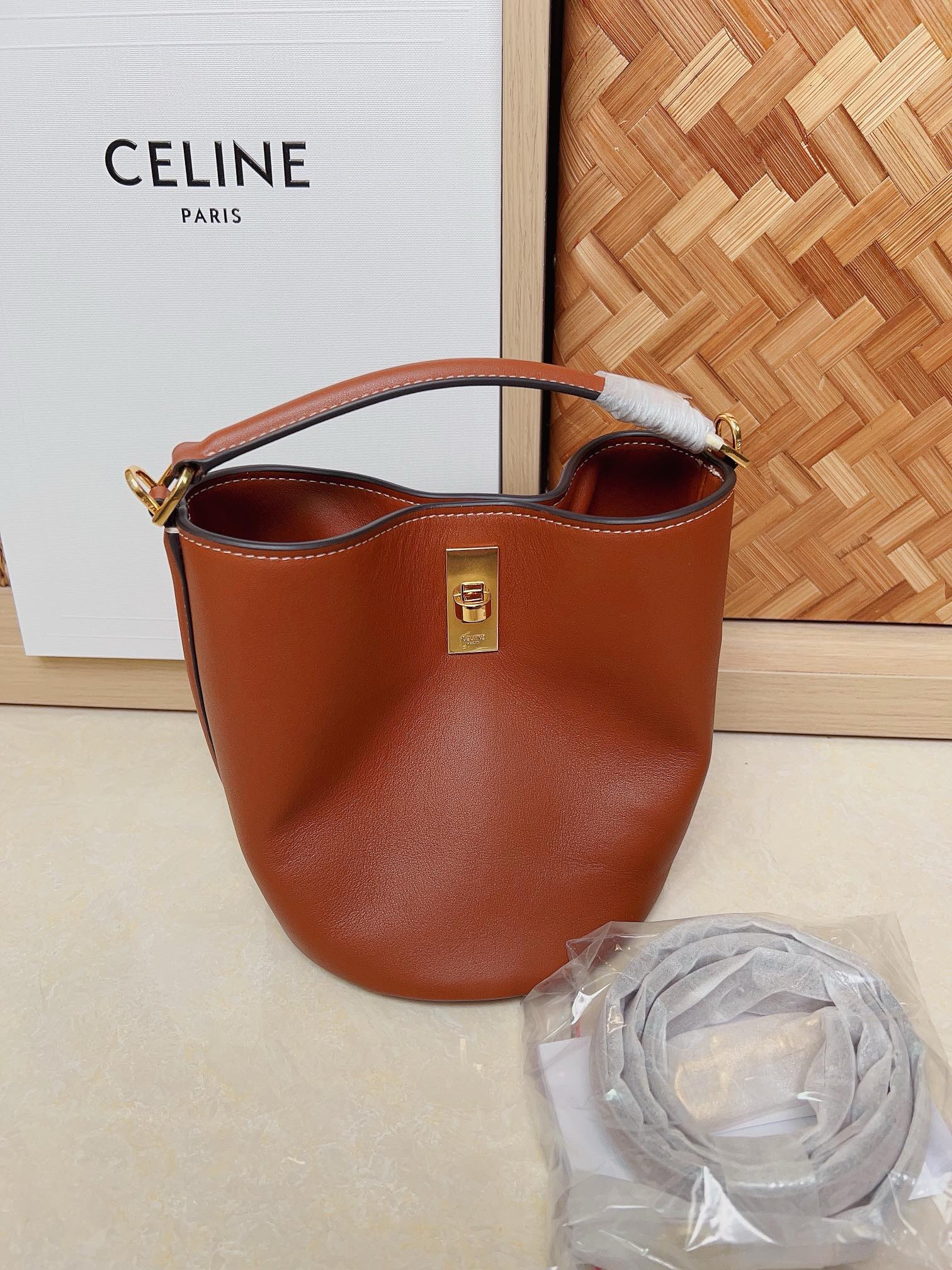 赛琳 TEEN BUCKET16 金属锁扣 光滑小牛皮 水桶包单肩斜挎手提包 小号 女款 黄褐色(HH)