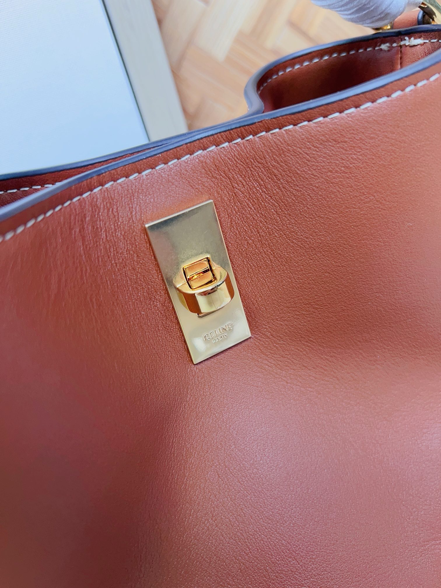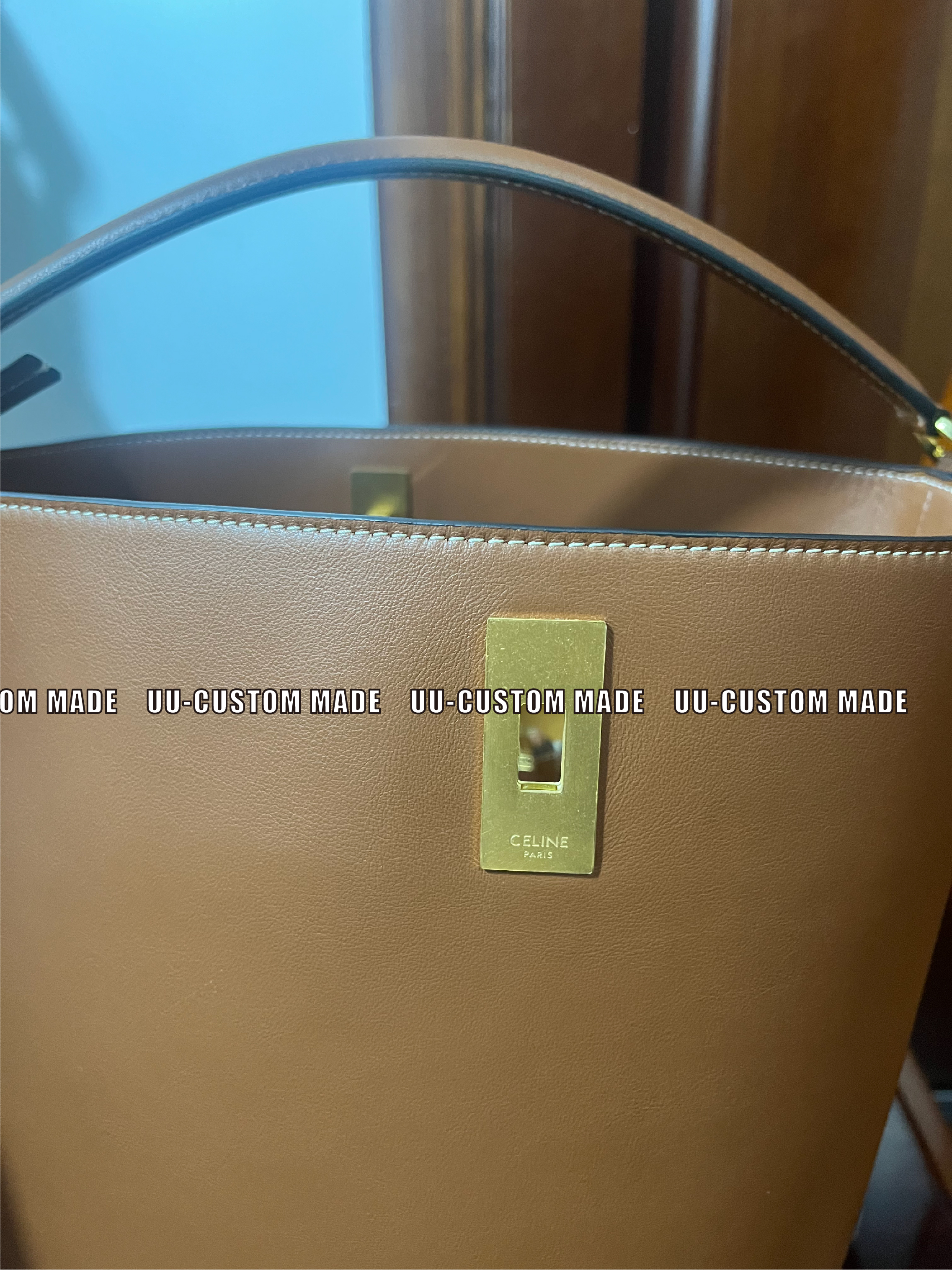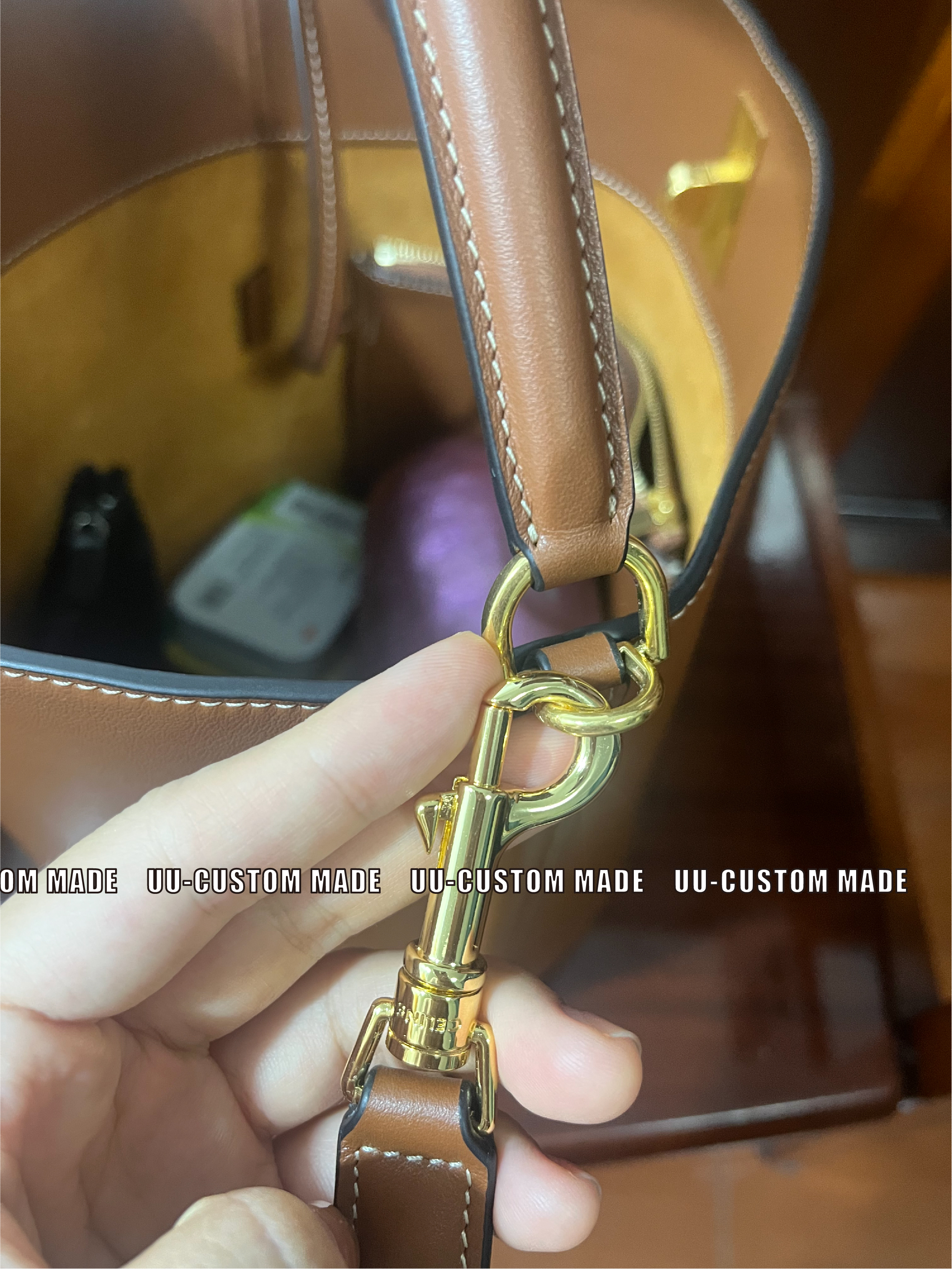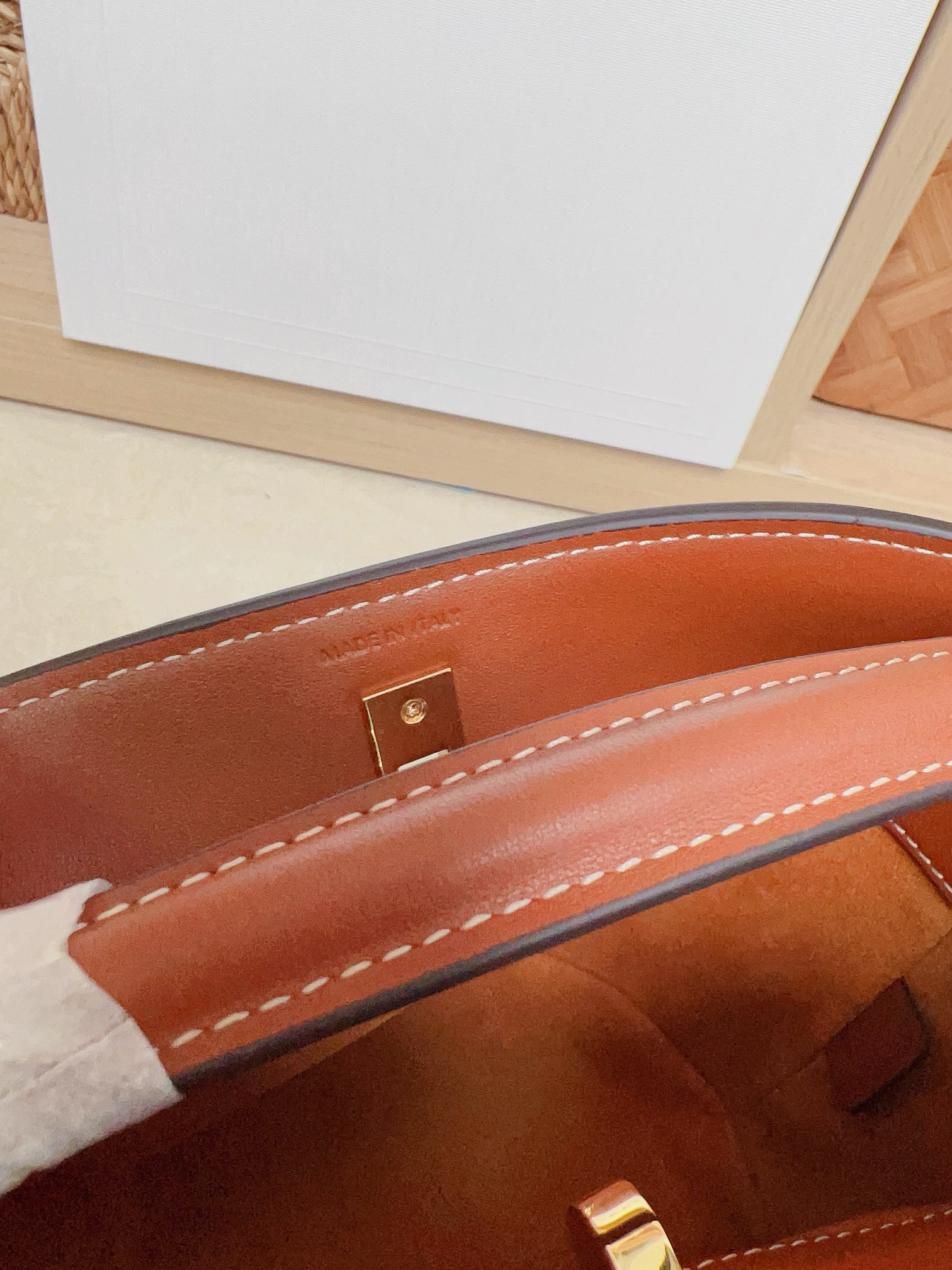 赛琳 TEEN BUCKET16 金属锁扣 光滑小牛皮 水桶包单肩斜挎手提包 小号 女款 黄褐色(HH)