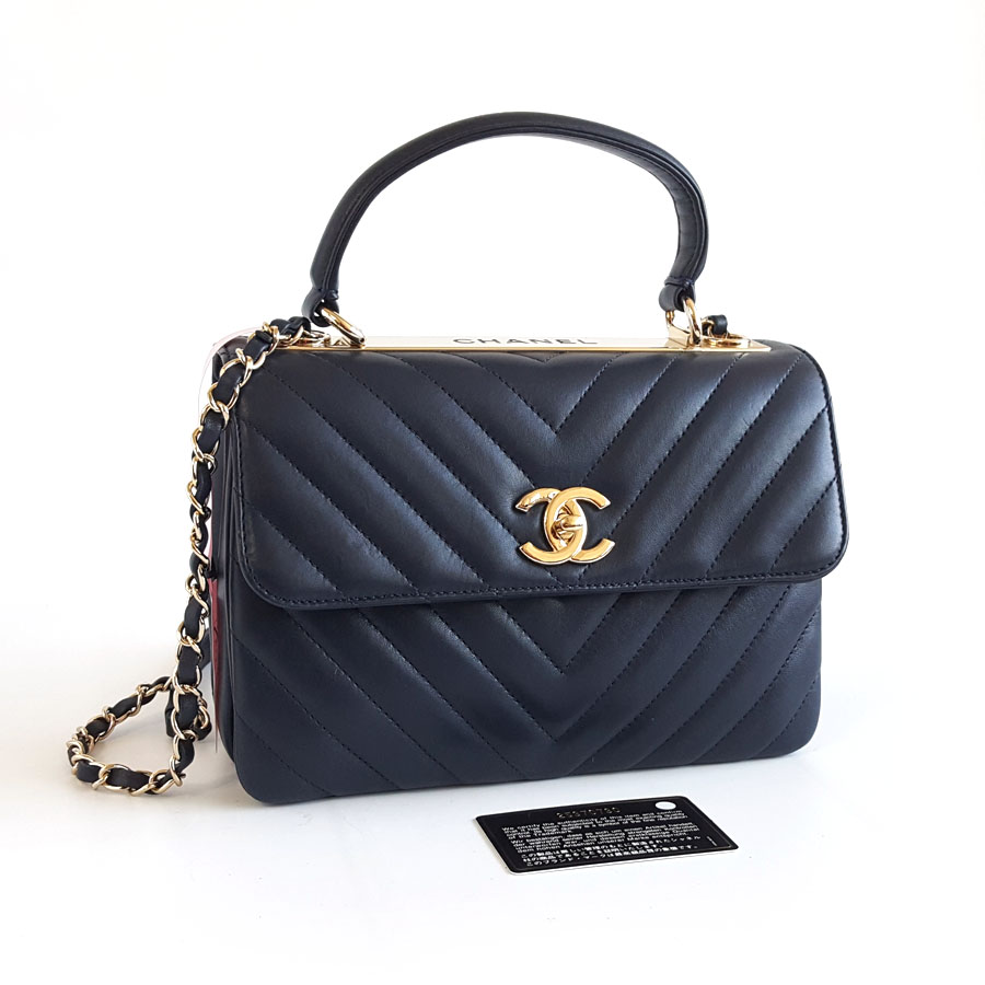 【95新】CHANEL香奈儿Trendy cc系列A92236 Y83366 4B471小号深蓝色金扣V纹trendy cc链条包单肩包女士110326JJ31