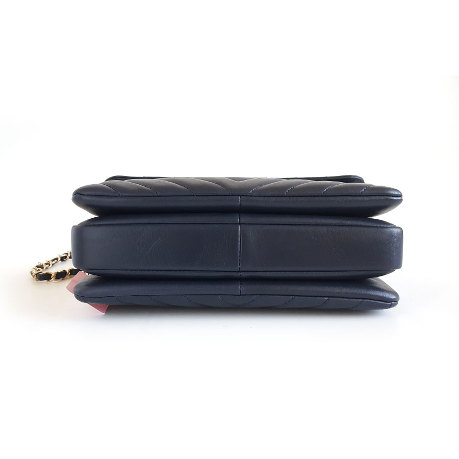 款式 | 小号深蓝色金扣V纹trendy cc链条包单肩包 |