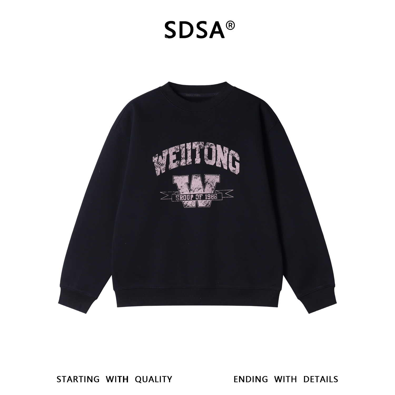 SDSA男士秋冬新款痞帅男装美式撞色字母数字印花圆领卫衣百搭宽松