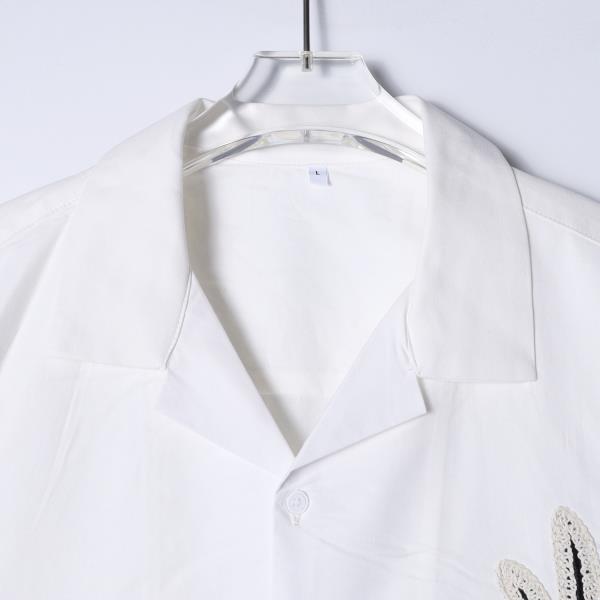 CS130夏季新款时尚花边拼接男士衬衫百搭潮流休闲上衣宽松复古短袖