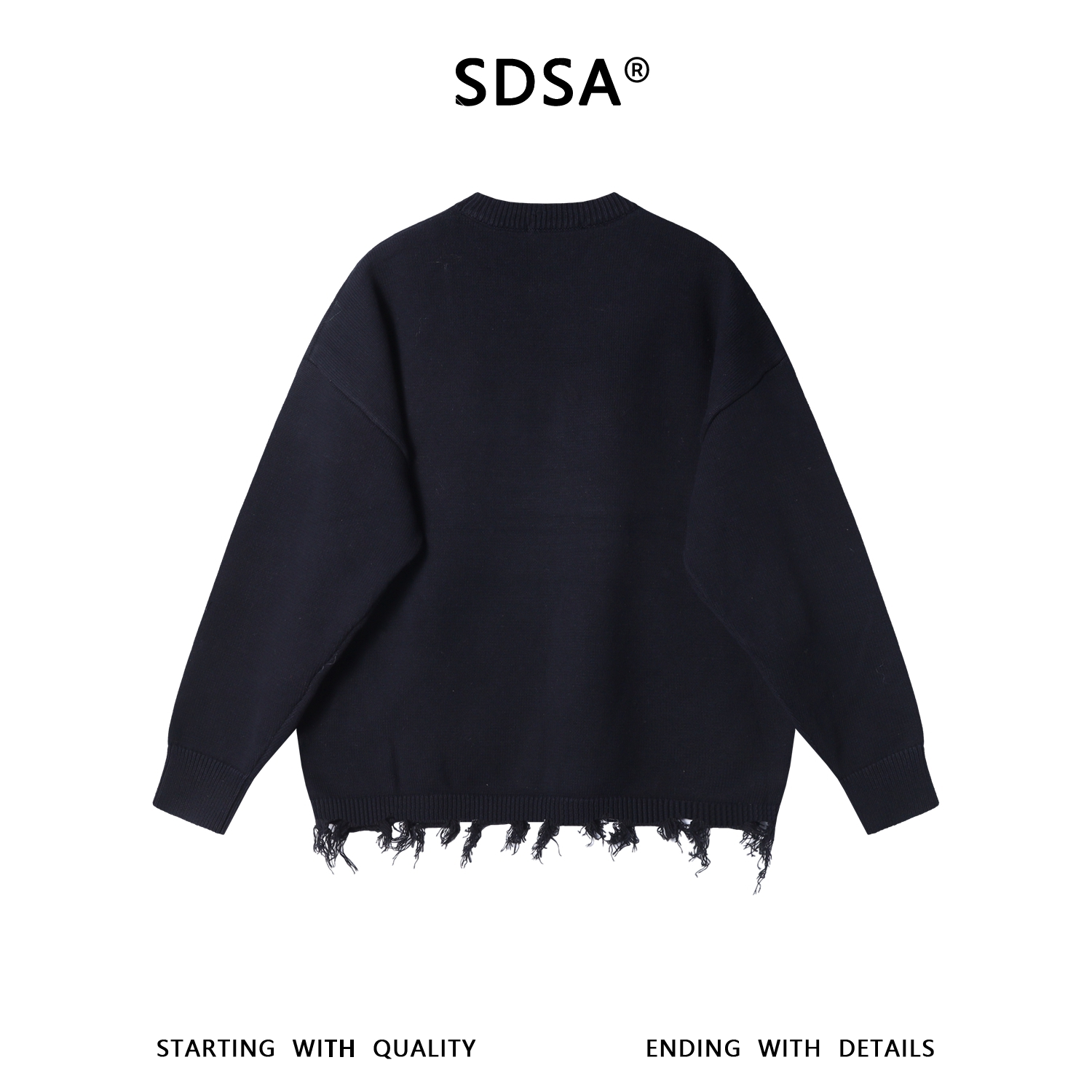 SDSA秋冬新款痞帅男装美式撞色字母圆领毛衣下摆流苏设计百搭时尚