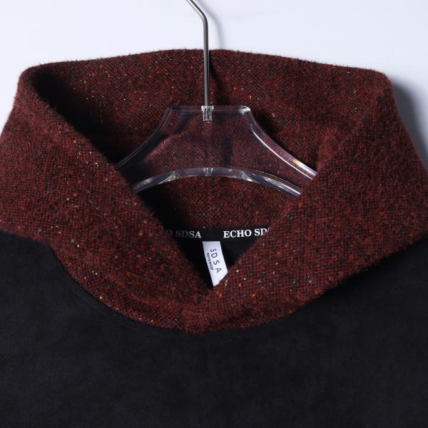 T4971SDSA男士秋冬新款痞帅男装潮牌撞色格纹半高领长袖T恤休闲百搭潮