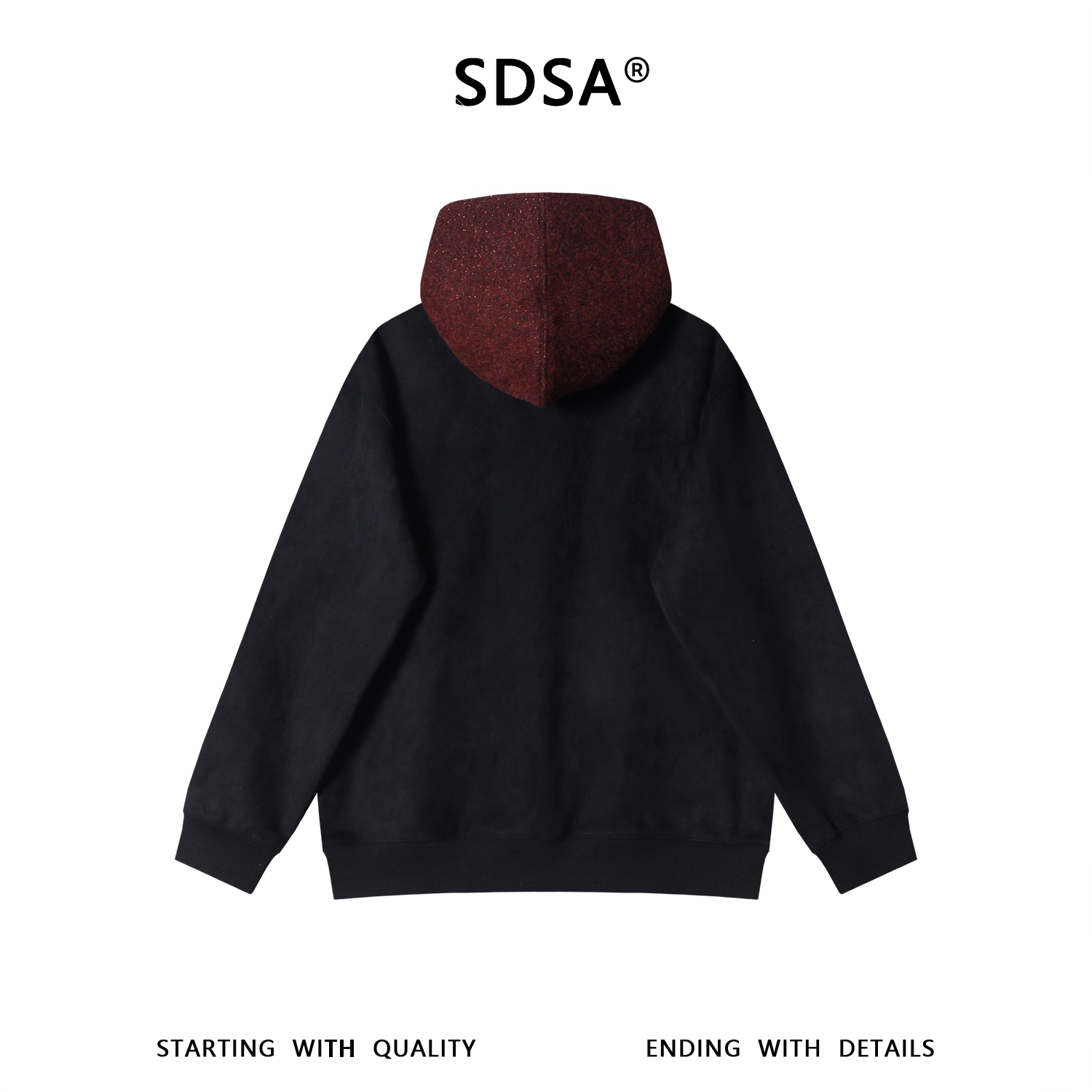SDSA男士秋冬新款痞帅男装韩版拼接撞色针织连帽卫衣宽松舒适上衣