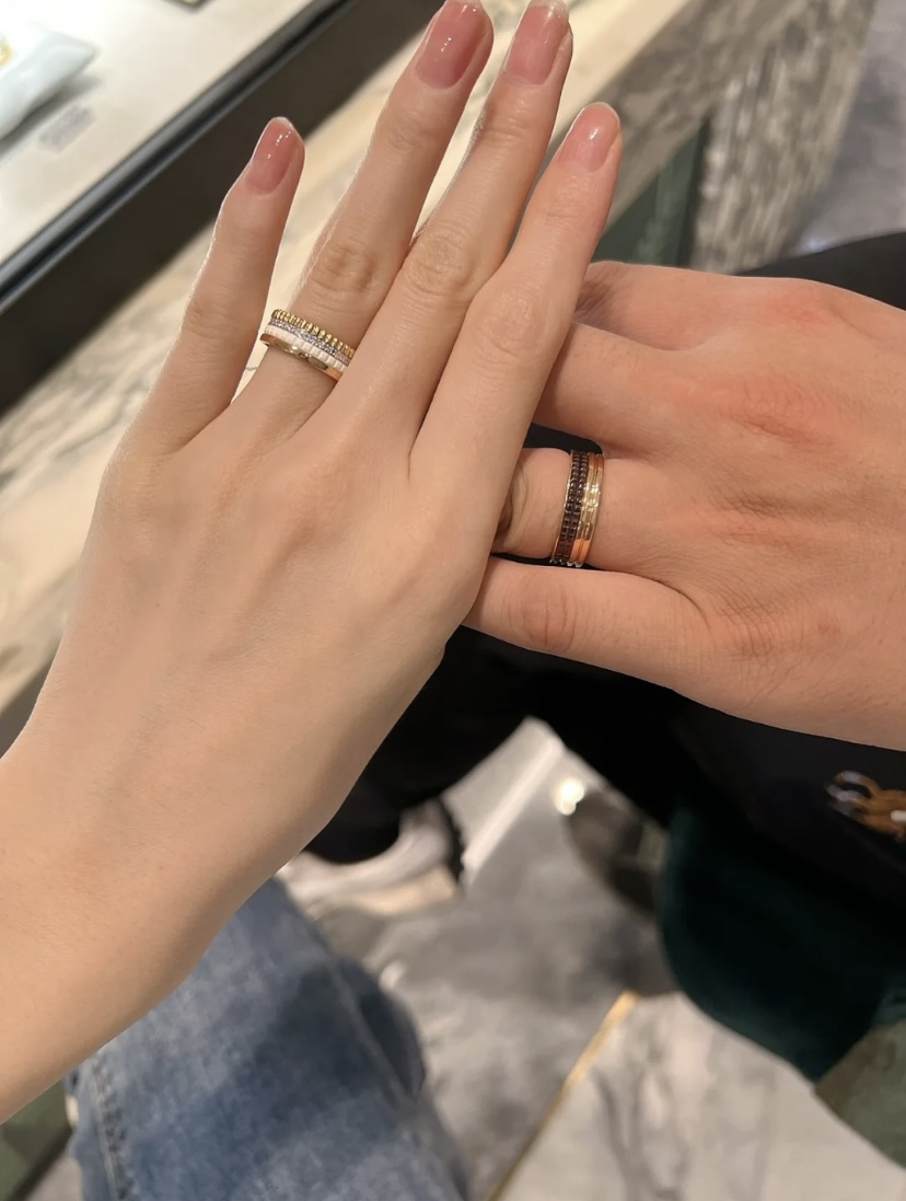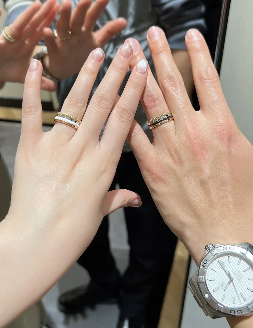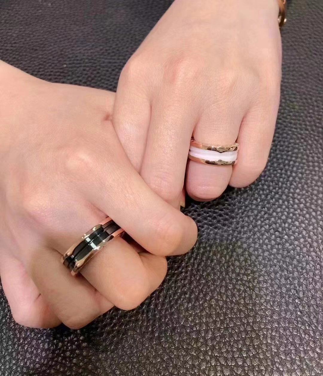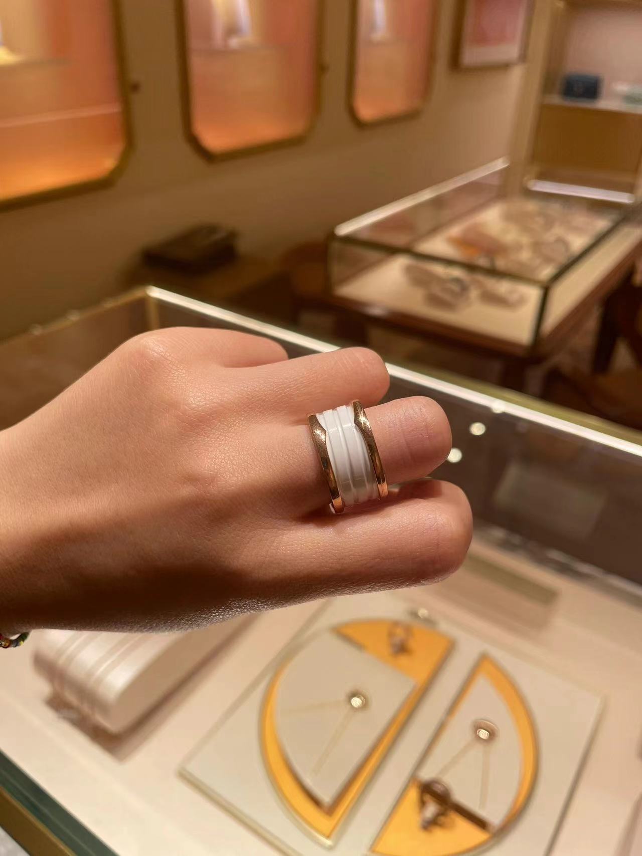 我们出品】这款是宝家经典B.Zero1系列玫瑰金情侣对戒 🙋全网首家 采用通体V金材质按照原版开模,内部数据加工,因此成品形状大小、色泽都跟原版一模一样。专柜原版字印,绝非市场普通激光激字,无论字印大小、深度都跟专柜一致。放大镜🔍下的细节:👉1、戒指对称性。我家的与正品一致,外圈凸起部分是相互对着的,并且和上方的"G"是在一条线上的。市面货外圈凸起部分是不在一条线或者有点歪。2、我家宝格丽戒指的内圈刻印规则平整,市面货看起来不是非常的规则,或者说凸凹不平的 且和ZP一样有一定弧度3、我家的LOGO立体感更强,LOGO是采用钢模冲压出来的4我家戒指制作的工艺极为复杂,将边带通过将金属长条包裹连结,不作任何焊接,这样独特的制作工艺使戒指具有伸缩性。市面货无法做到这样的工艺,只能通过焊接而成.黑色陶瓷和白色陶瓷都是进口陶瓷且槽位都是经过抛光,所以这种品质除了材质和ZP简直无异 产品颜色:玫瑰色 产品尺寸:窄版5-10 宽版6-10码 ❤️真的大爱,各种场合都能完美hold住😘