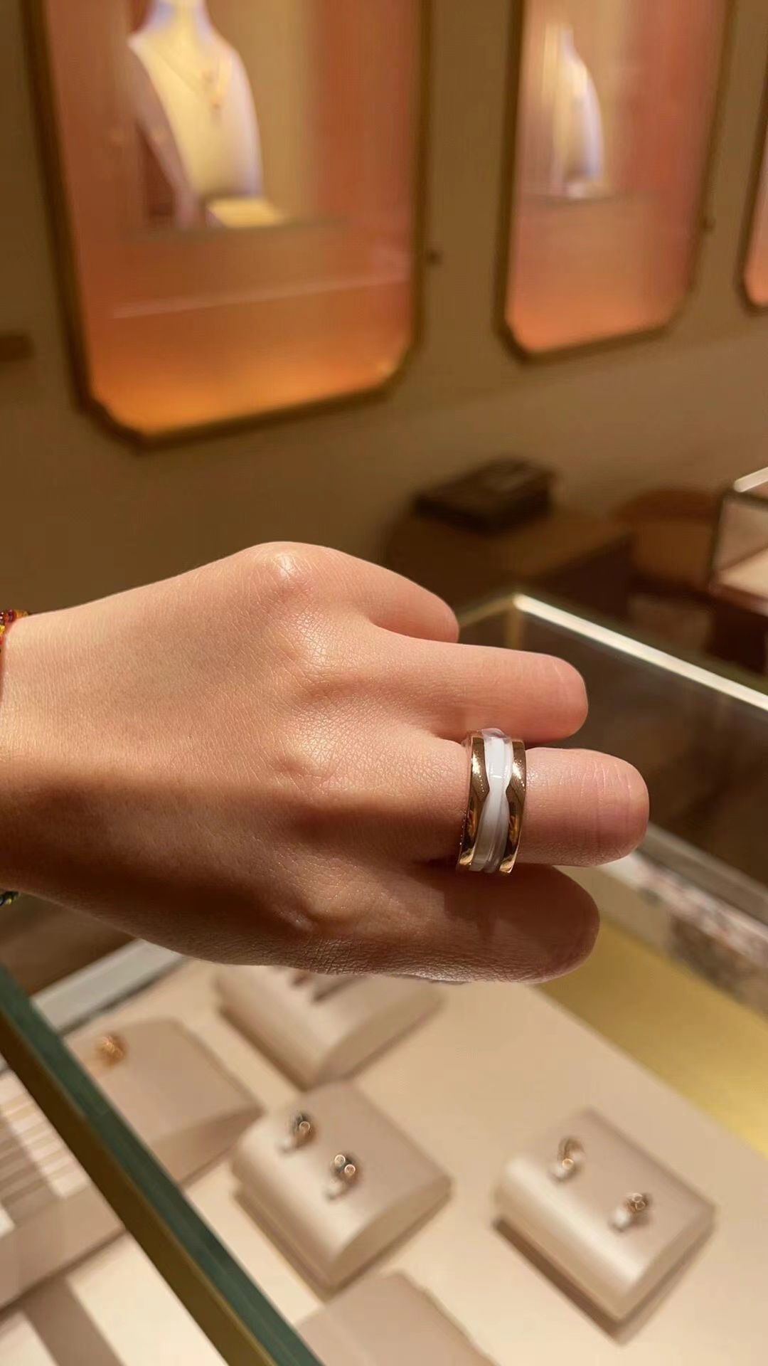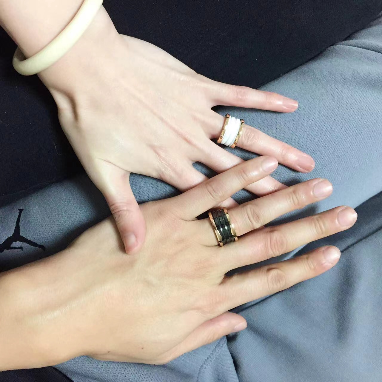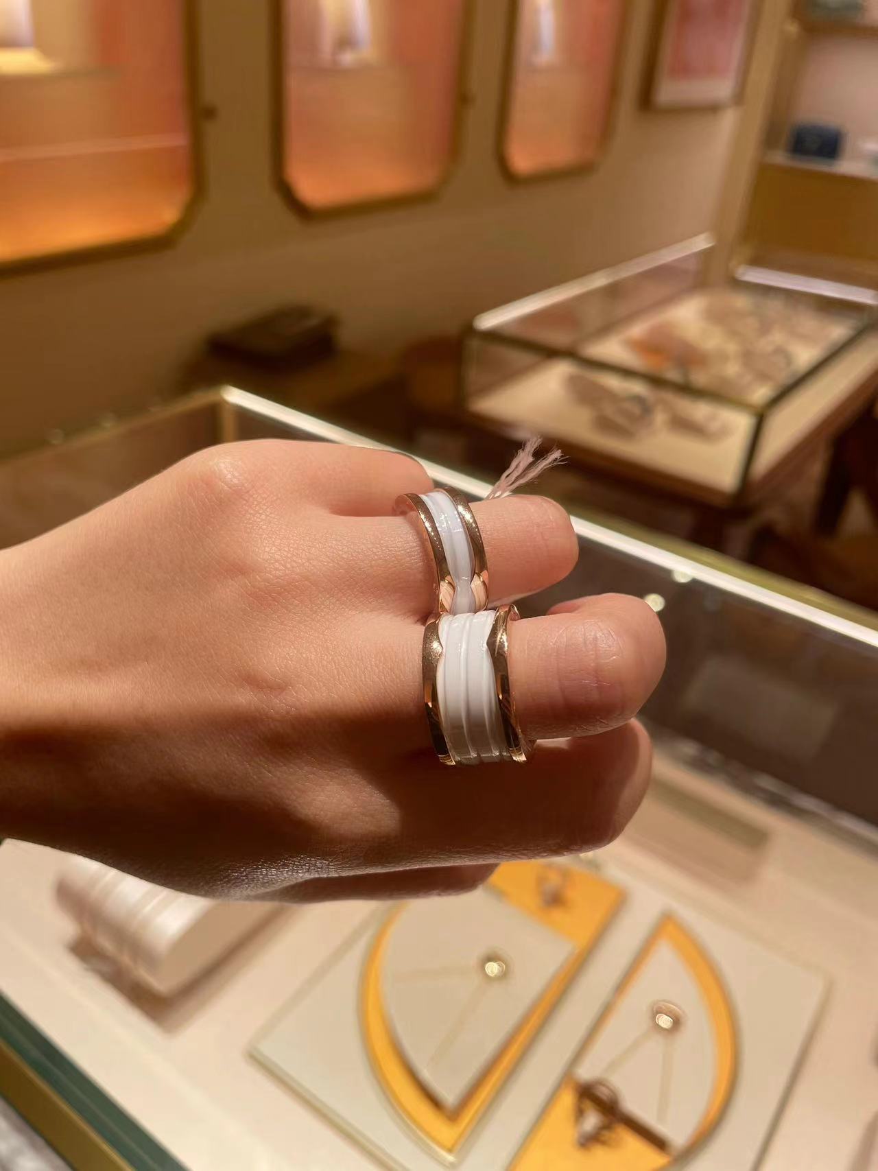 我们出品】这款是宝家经典B.Zero1系列玫瑰金情侣对戒 🙋全网首家 采用通体V金材质按照原版开模,内部数据加工,因此成品形状大小、色泽都跟原版一模一样。专柜原版字印,绝非市场普通激光激字,无论字印大小、深度都跟专柜一致。放大镜🔍下的细节:👉1、戒指对称性。我家的与正品一致,外圈凸起部分是相互对着的,并且和上方的"G"是在一条线上的。市面货外圈凸起部分是不在一条线或者有点歪。2、我家宝格丽戒指的内圈刻印规则平整,市面货看起来不是非常的规则,或者说凸凹不平的 且和ZP一样有一定弧度3、我家的LOGO立体感更强,LOGO是采用钢模冲压出来的4我家戒指制作的工艺极为复杂,将边带通过将金属长条包裹连结,不作任何焊接,这样独特的制作工艺使戒指具有伸缩性。市面货无法做到这样的工艺,只能通过焊接而成.黑色陶瓷和白色陶瓷都是进口陶瓷且槽位都是经过抛光,所以这种品质除了材质和ZP简直无异 产品颜色:玫瑰色 产品尺寸:窄版5-10 宽版6-10码 ❤️真的大爱,各种场合都能完美hold住😘