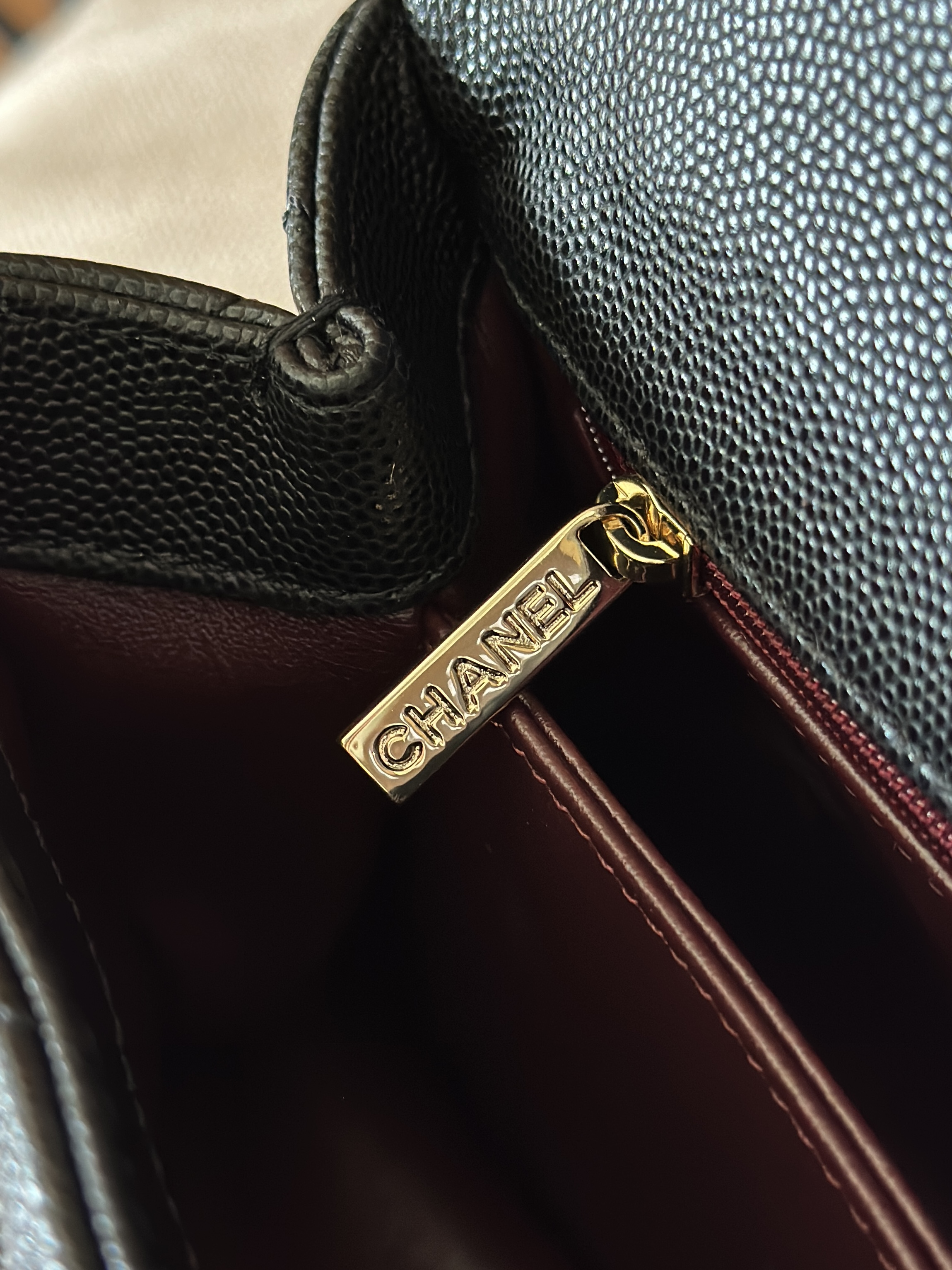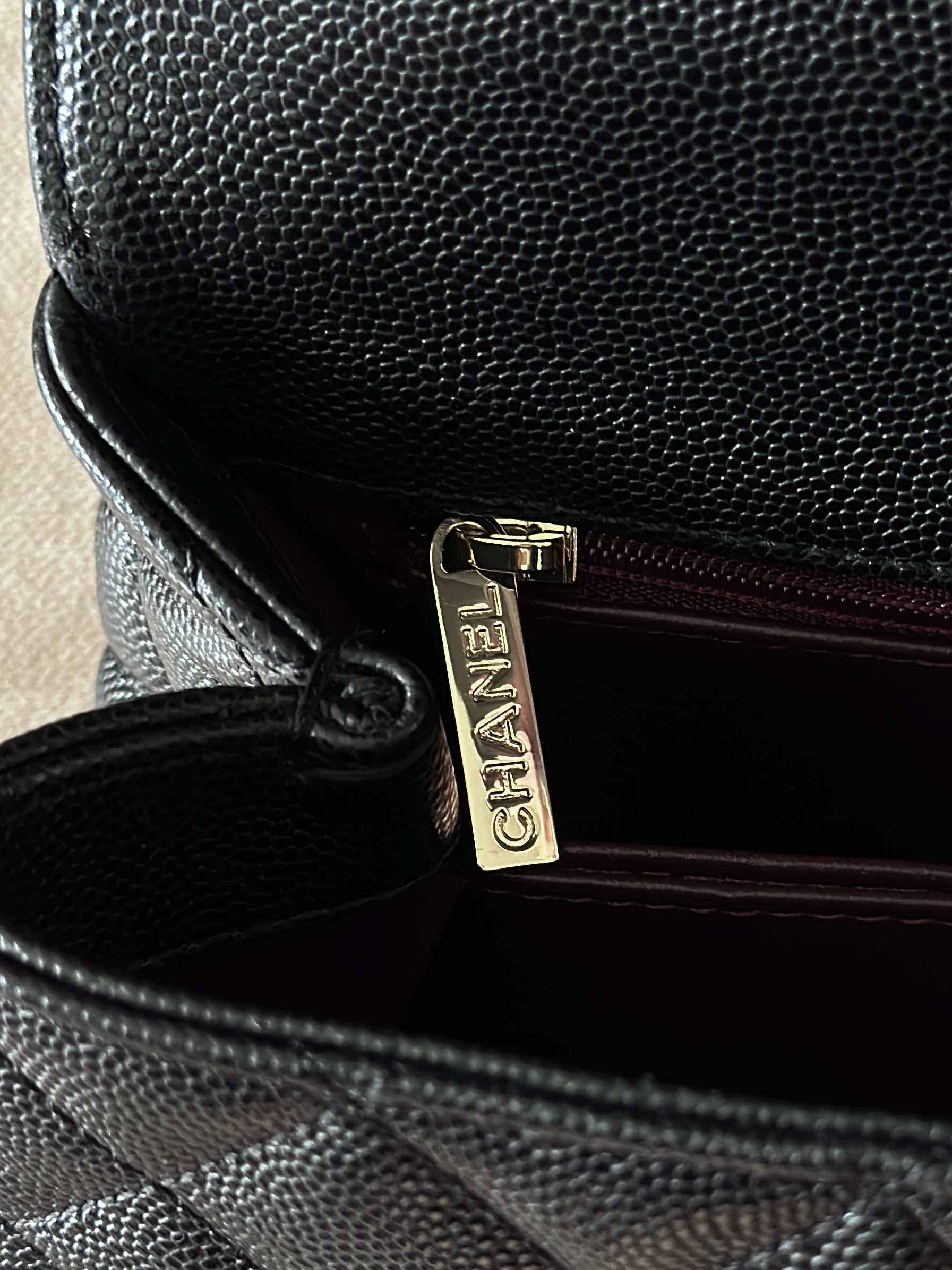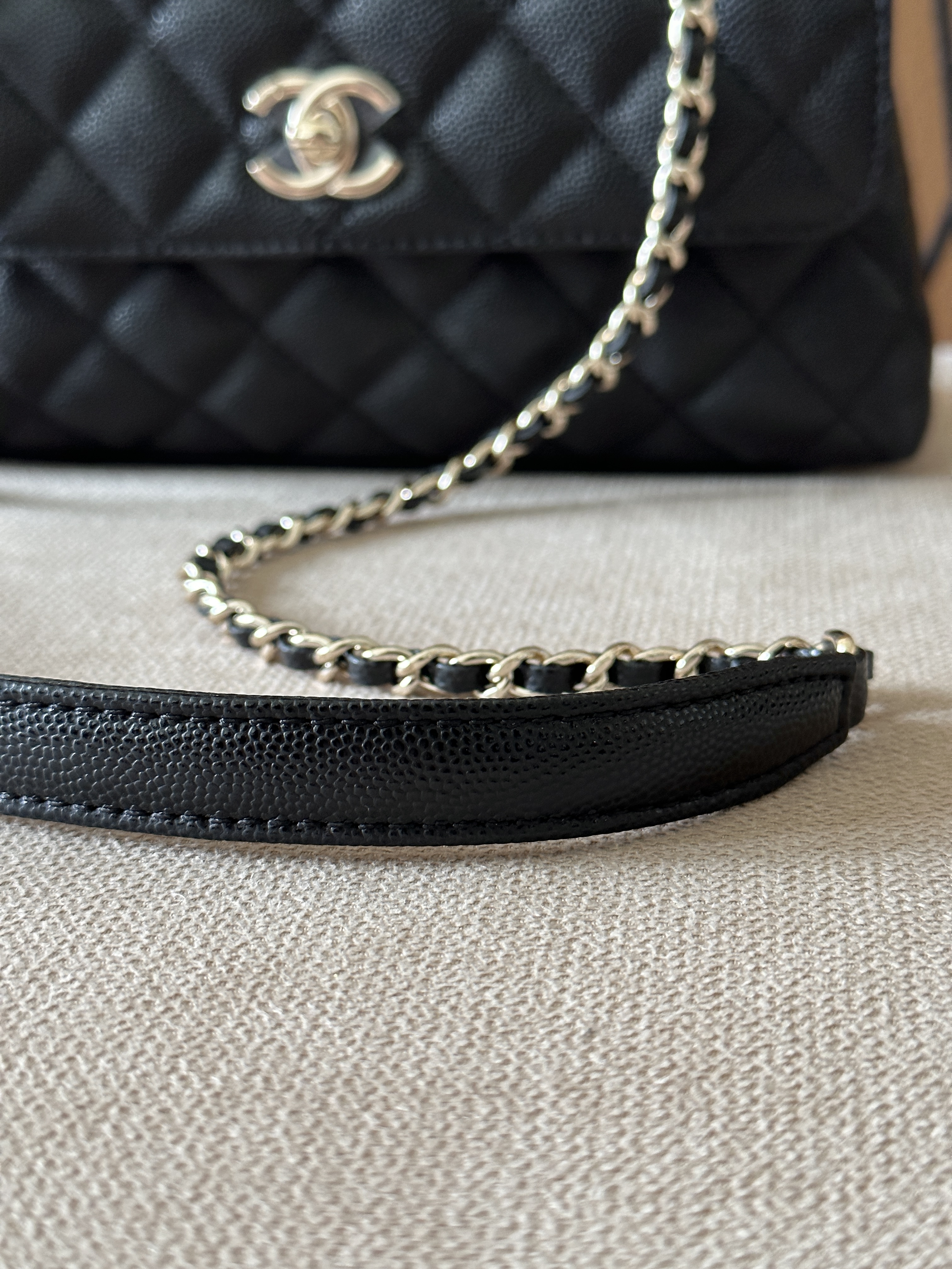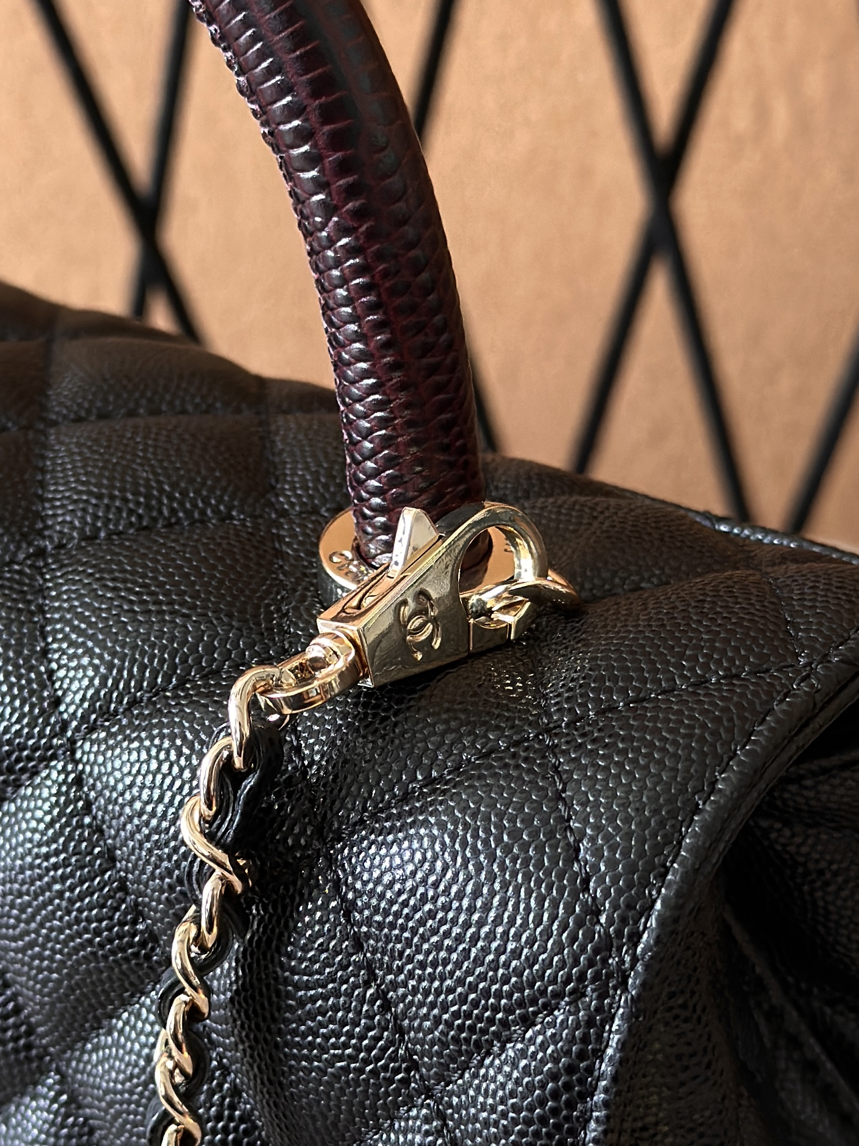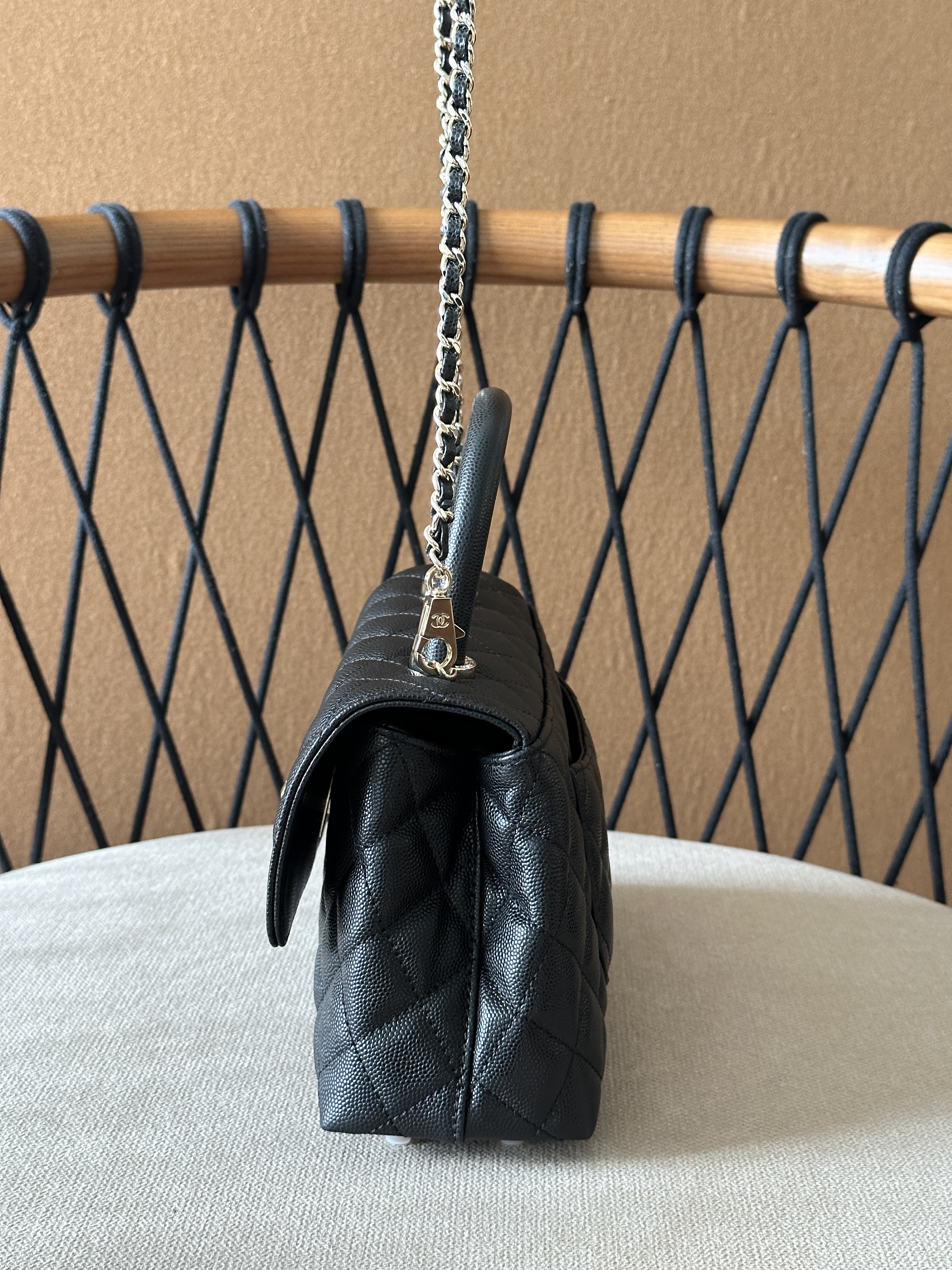 CHANEL香奈儿 香奈儿 Coco Handle 25P 憨豆 菱格亮面金扣皮穿链 颗粒压花牛皮 手柄单肩斜挎包 小号 女款 黑色
