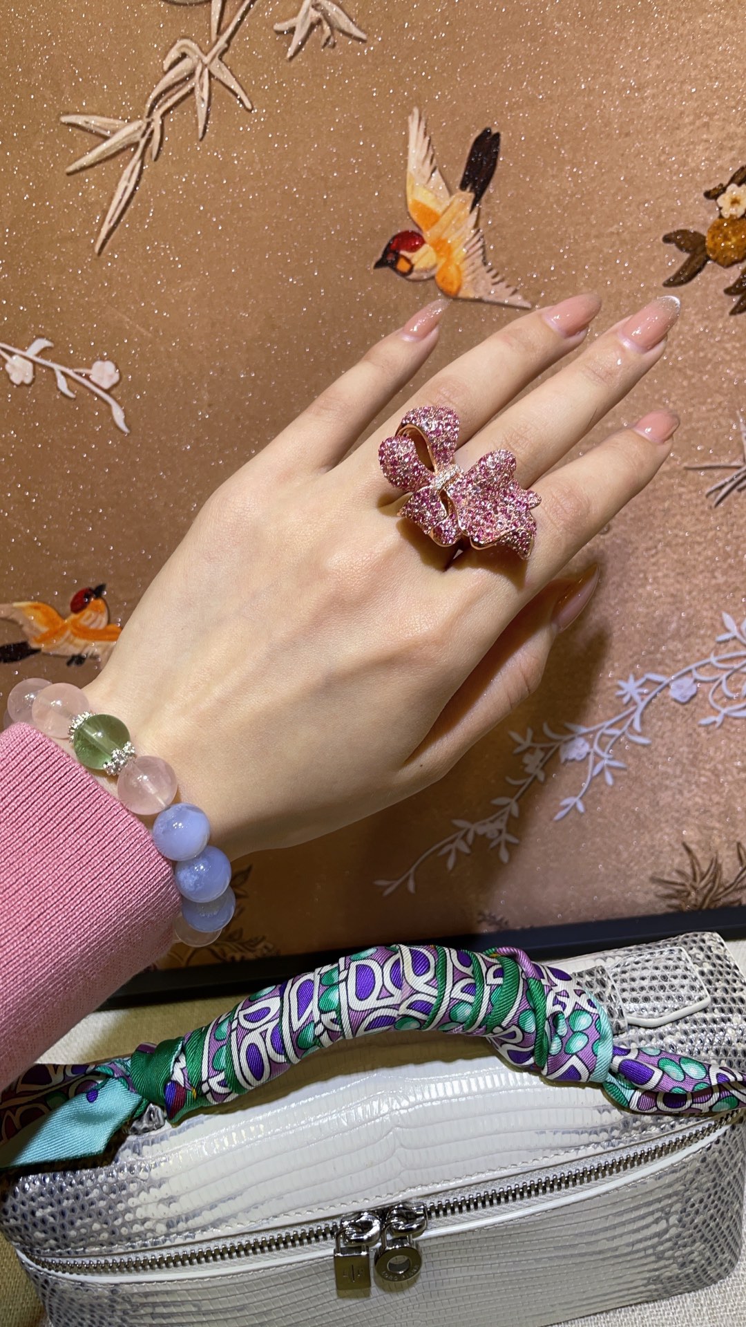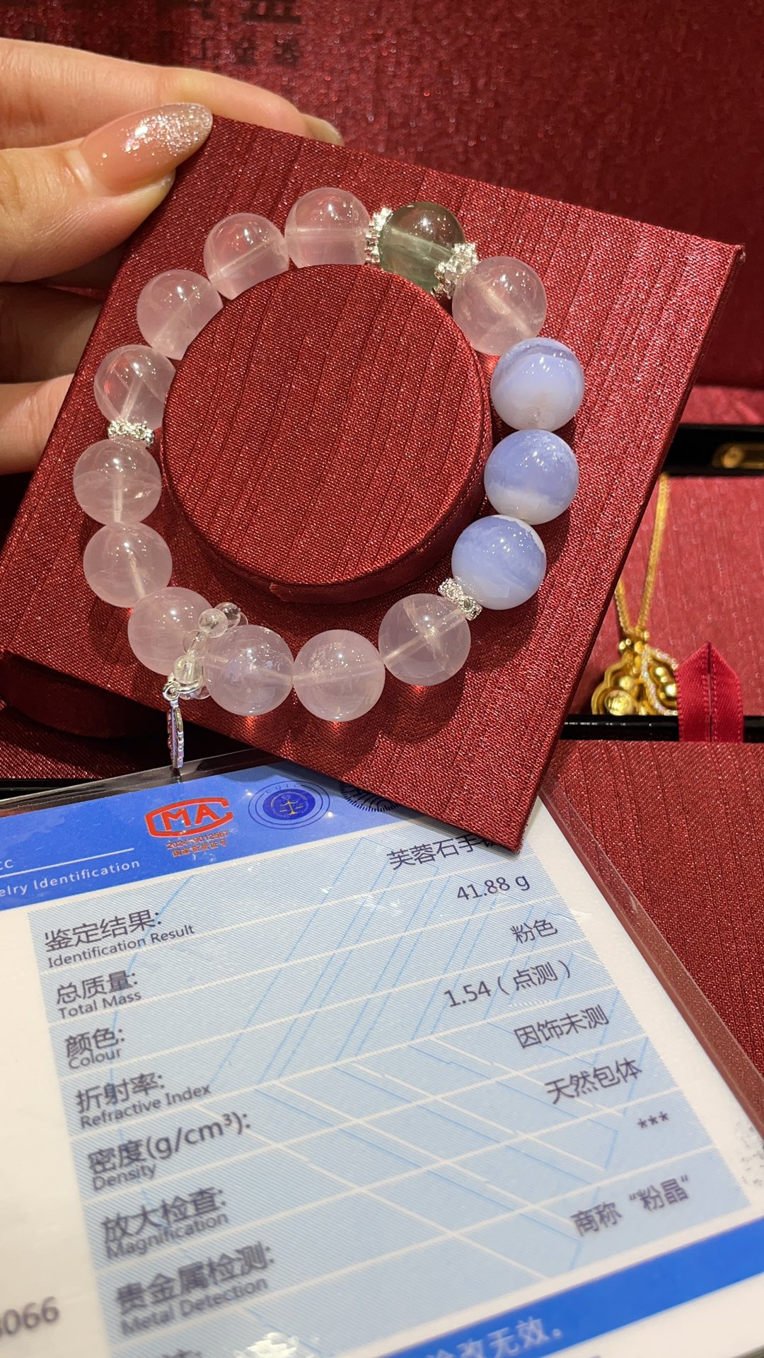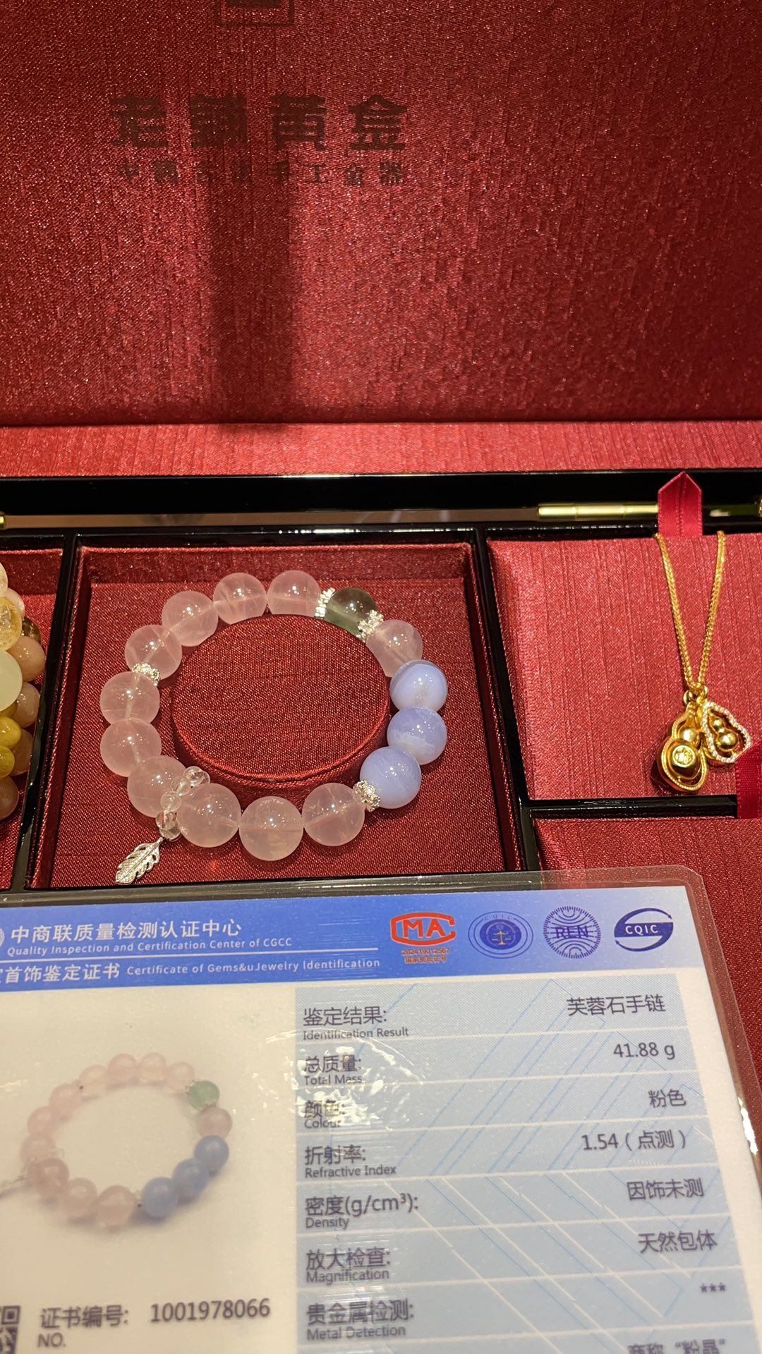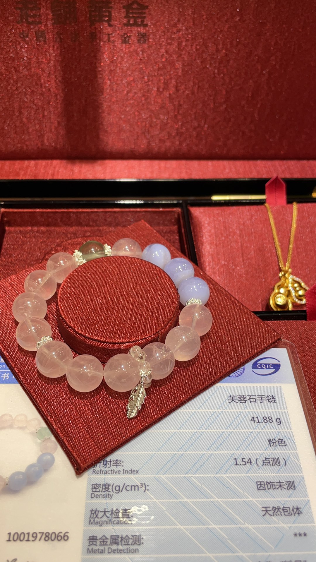 B家 小羽毛吊坠招桃花天然粉晶水晶手串手链