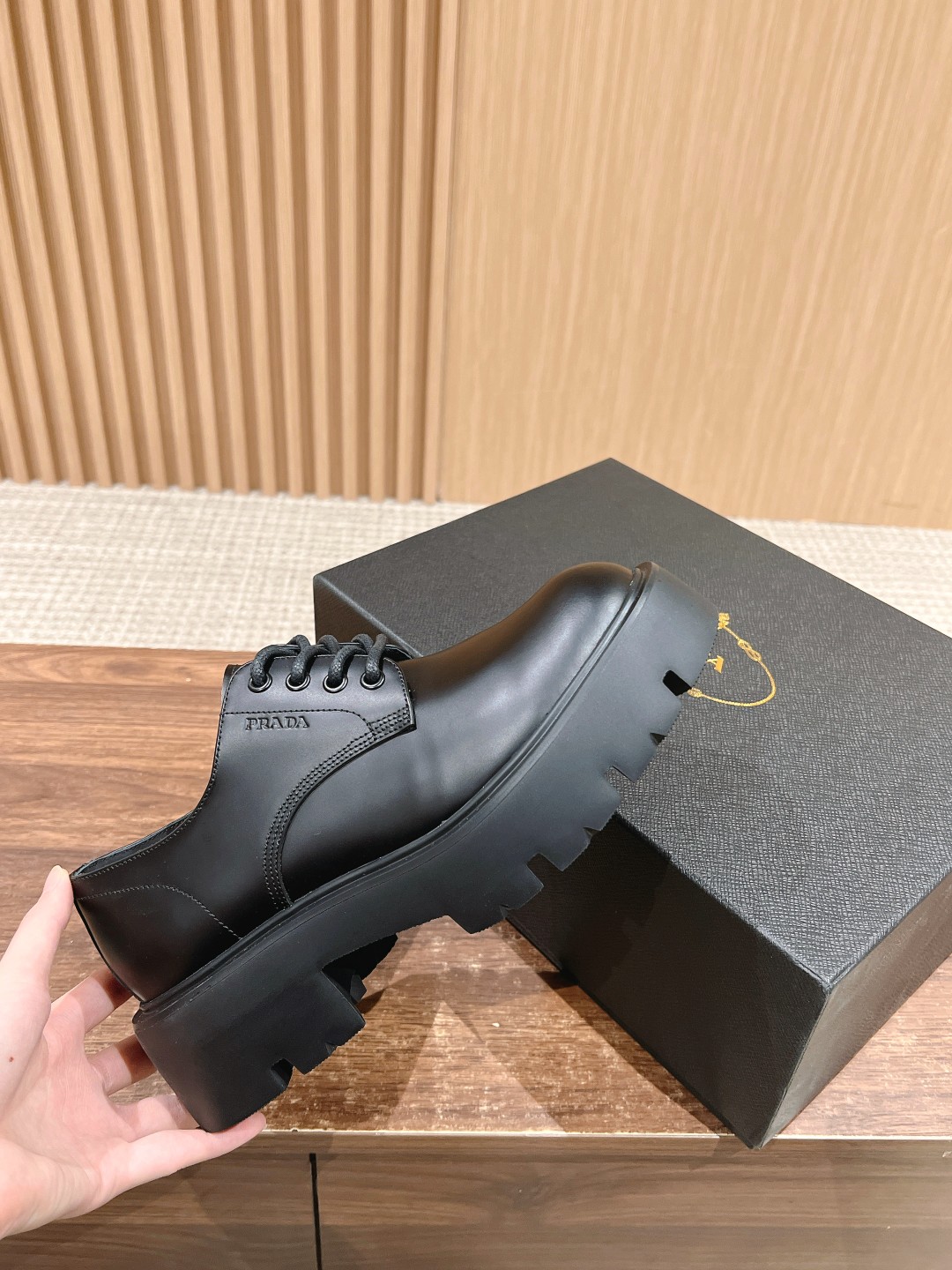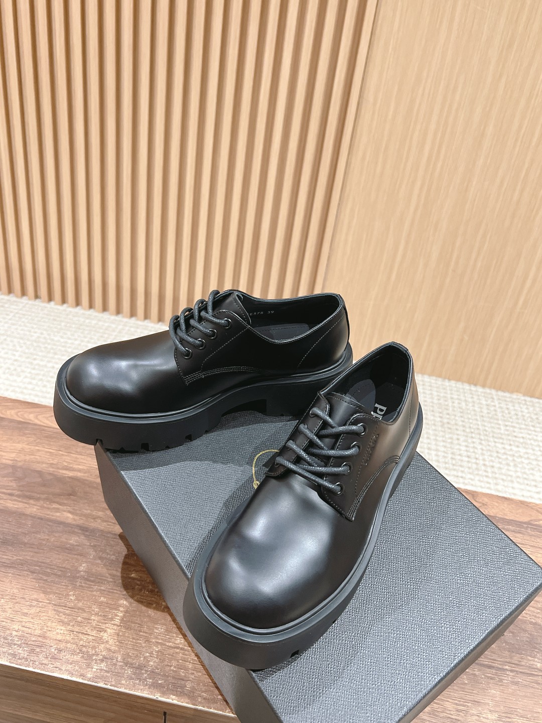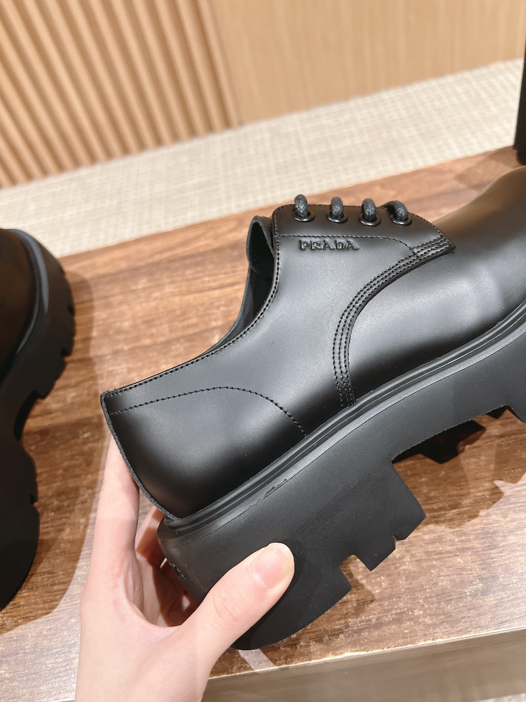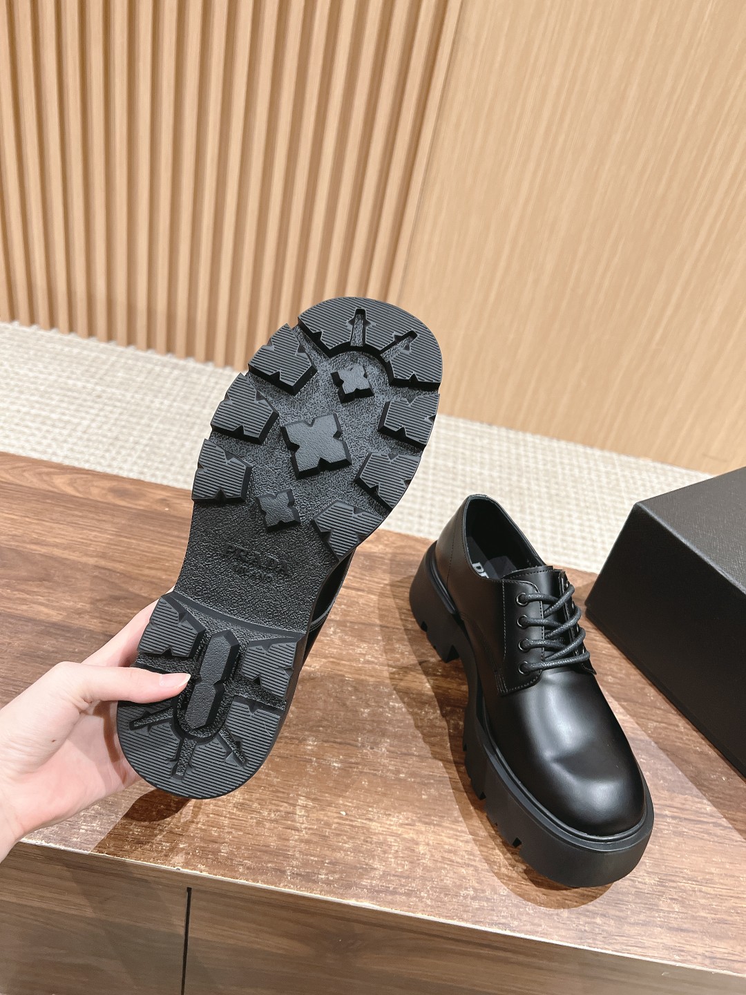 限男码 𝐏𝐑𝐀*厚底三角牌复古乐福鞋 这款鞋面搭配三角牌金属扣 中和了整个鞋子的气质,完全不会特别正式或者老气 进口开边珠牛皮材质 注塑EVA超轻发泡底