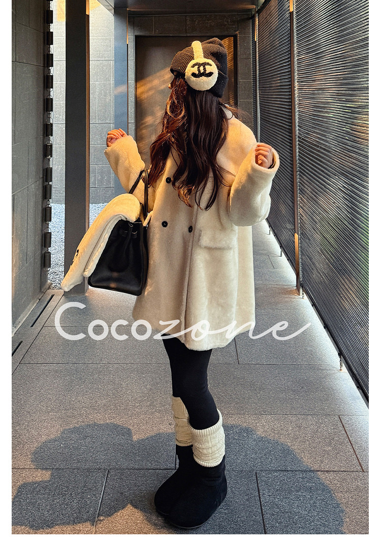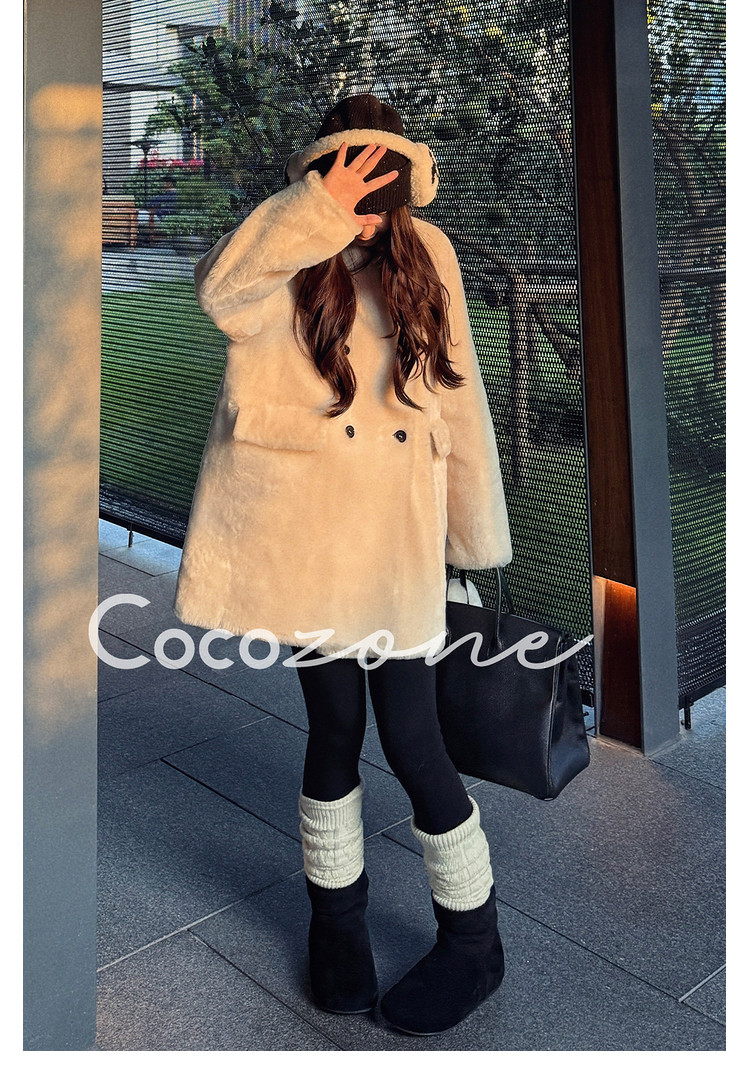 COCO ZONE 刘 一一 “雪绒绒”双排扣翻领口袋皮草 CD2A2942
