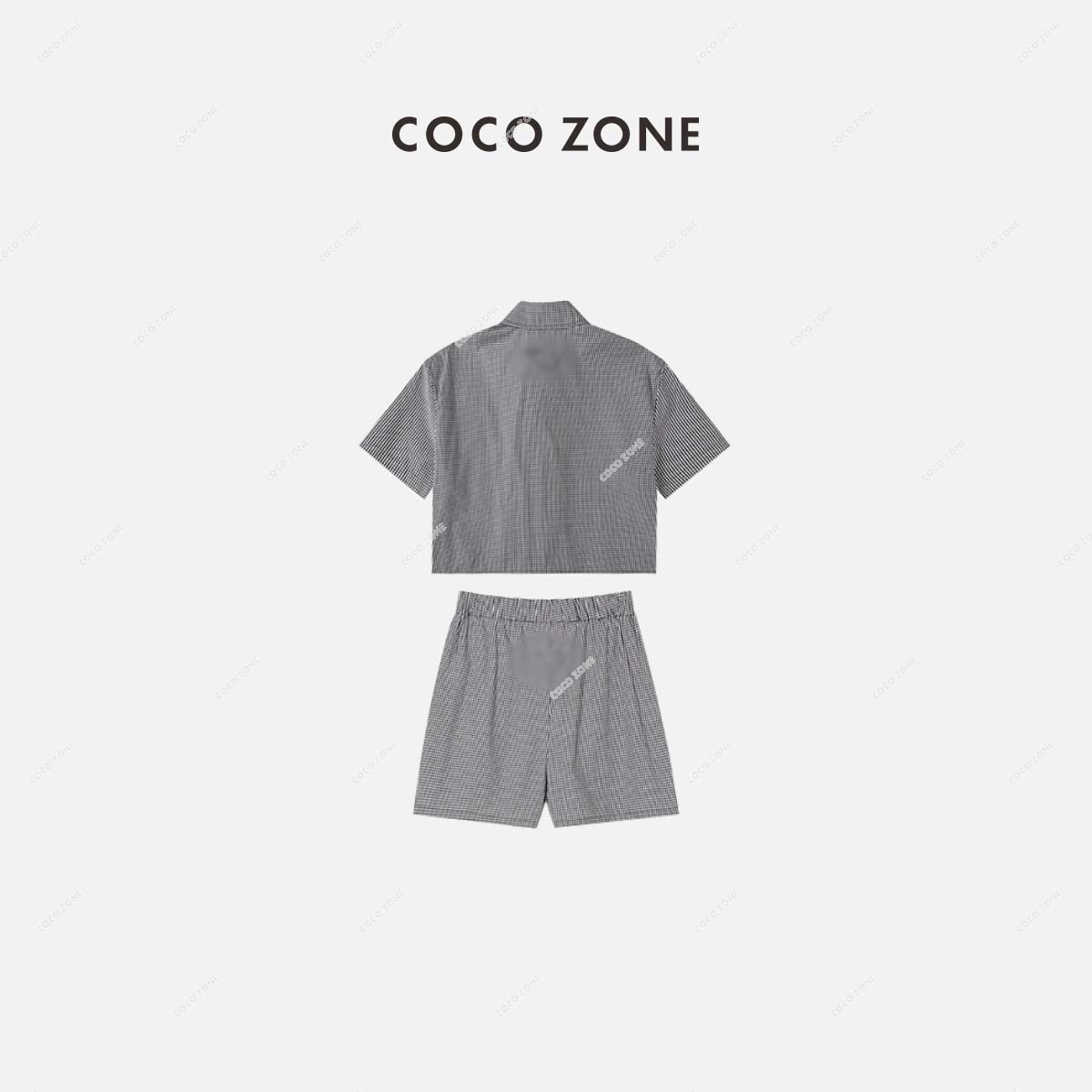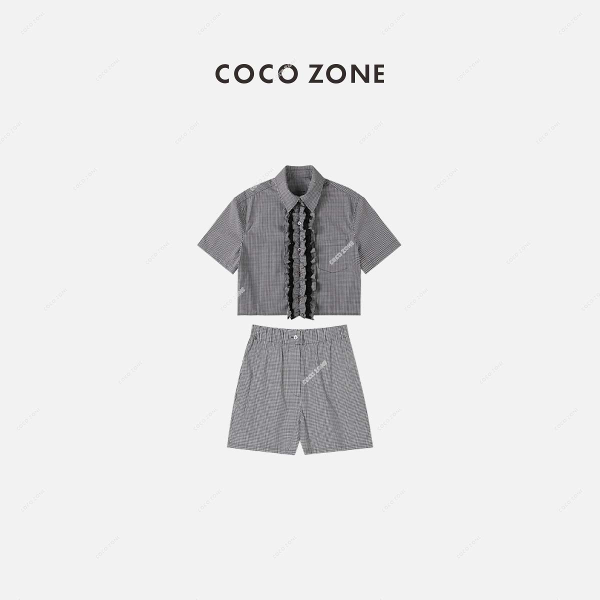 COCO ZONE 气质通勤褶皱花边装饰短款衬衫上衣+短裤 23C18667