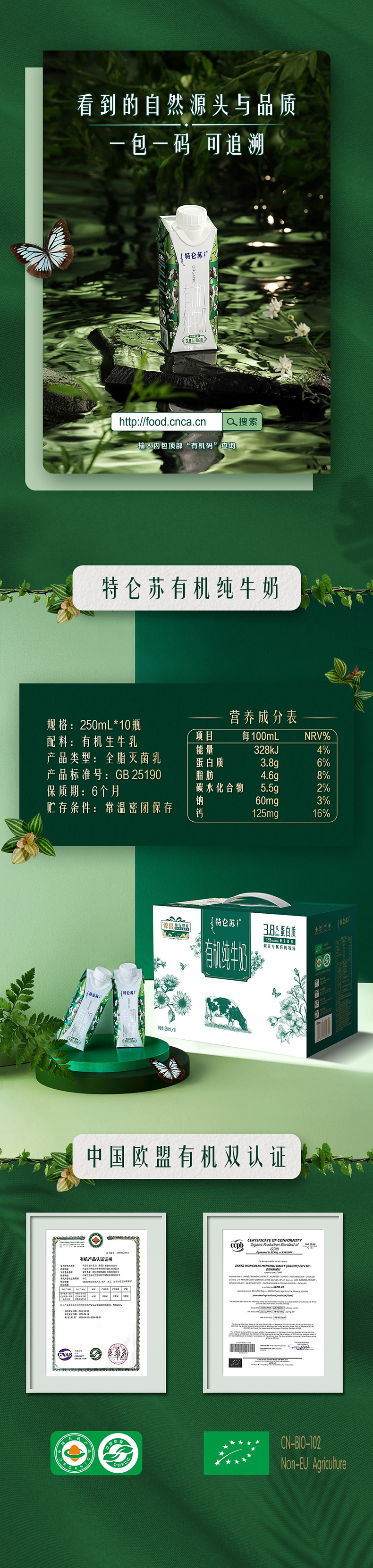 [七彩鲜生]特仑苏有机纯牛奶梦幻盖250ml*10【俊发城次日自提】