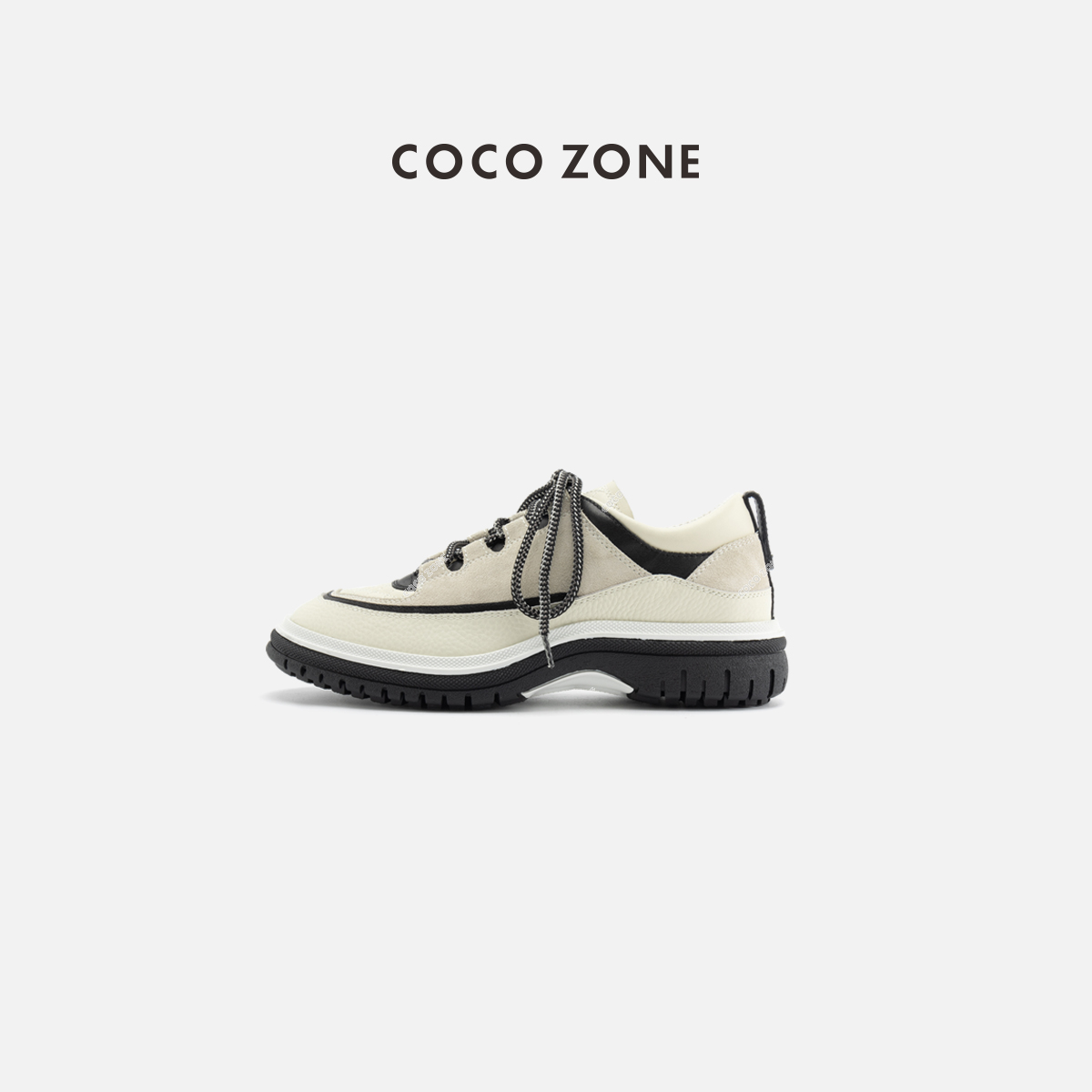COCO ZONE 冬季高级感厚底拼色百搭系带休闲鞋CC2D3272