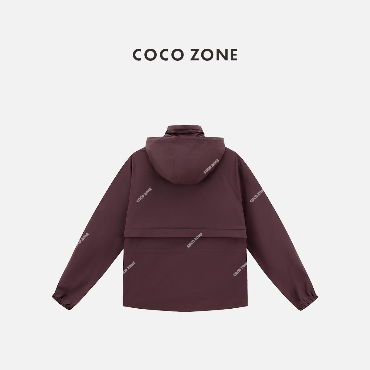 COCO ZONE 简约抽绳连帽外套撞色拉链休闲上衣CC2B1179