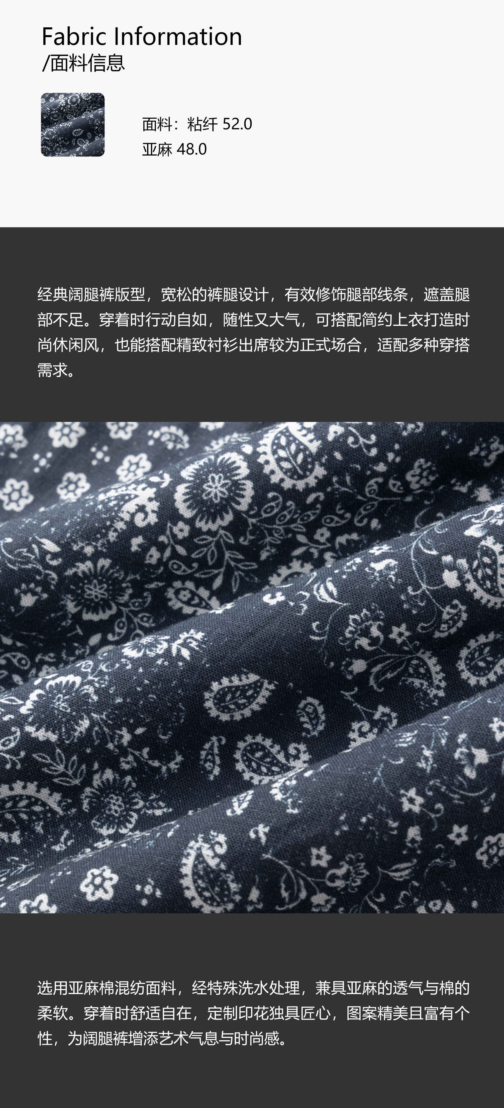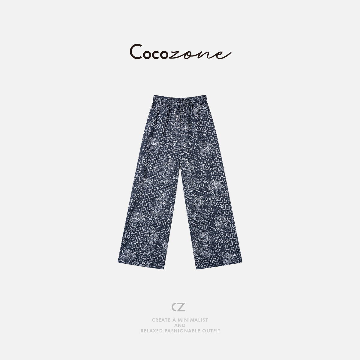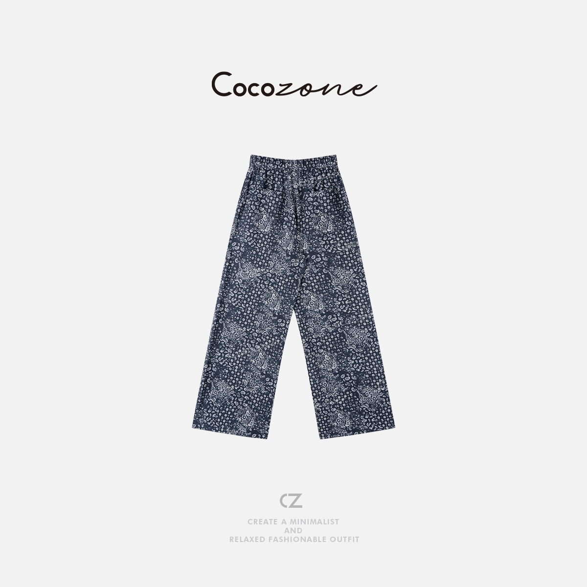 COCO ZONE 刘一一【人丝亚麻混纺】花色休闲直筒裤CD2A0638