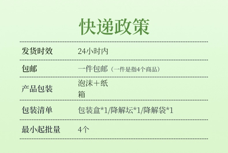 运费:一件包邮(一件是指4个商品)