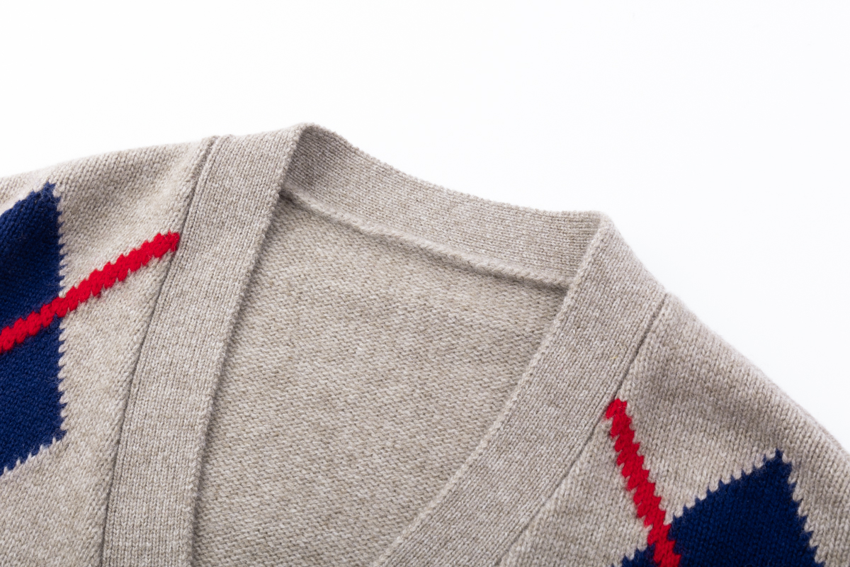 COCO ZONE 设计感拼色菱格针织时尚V领百搭上衣 CC2D2357