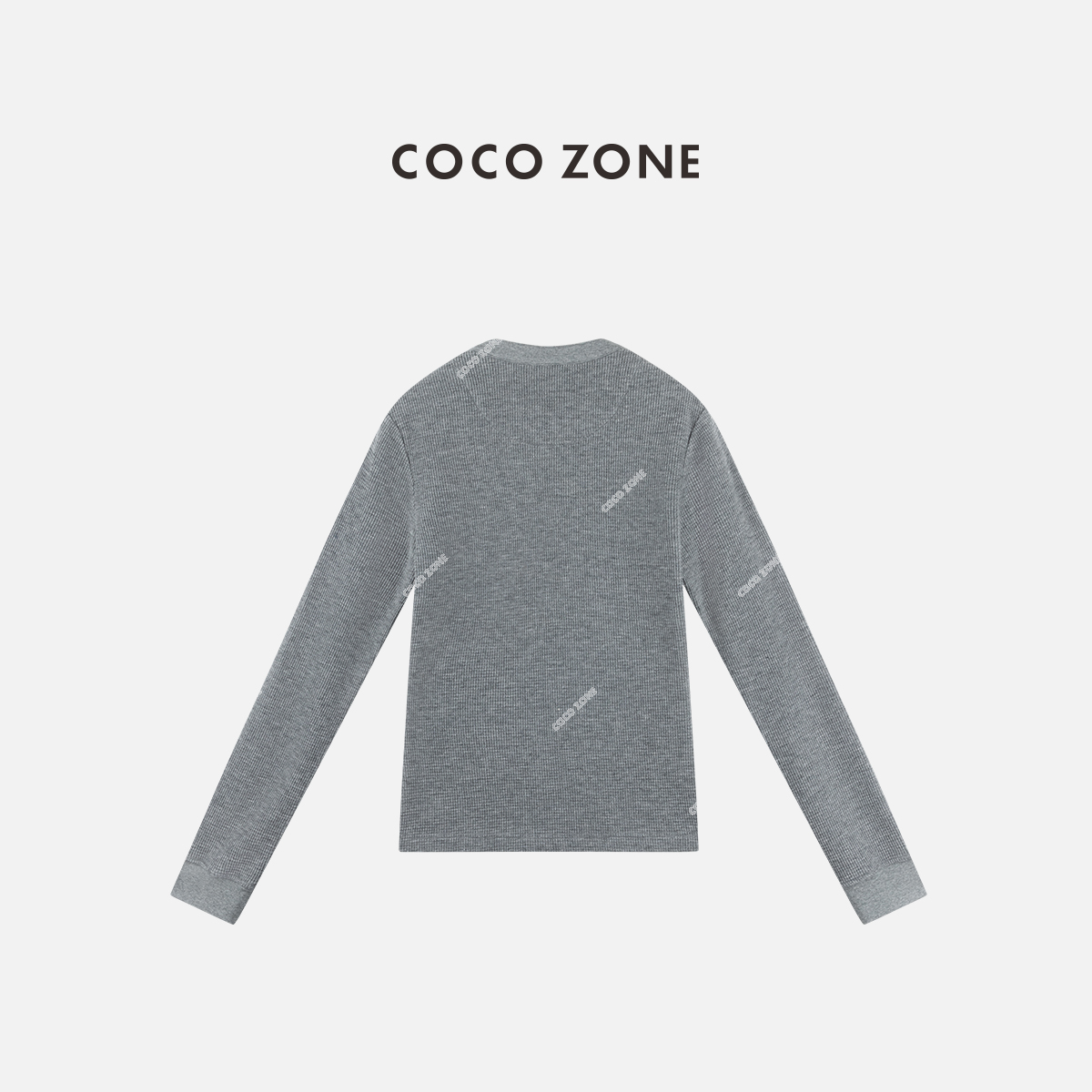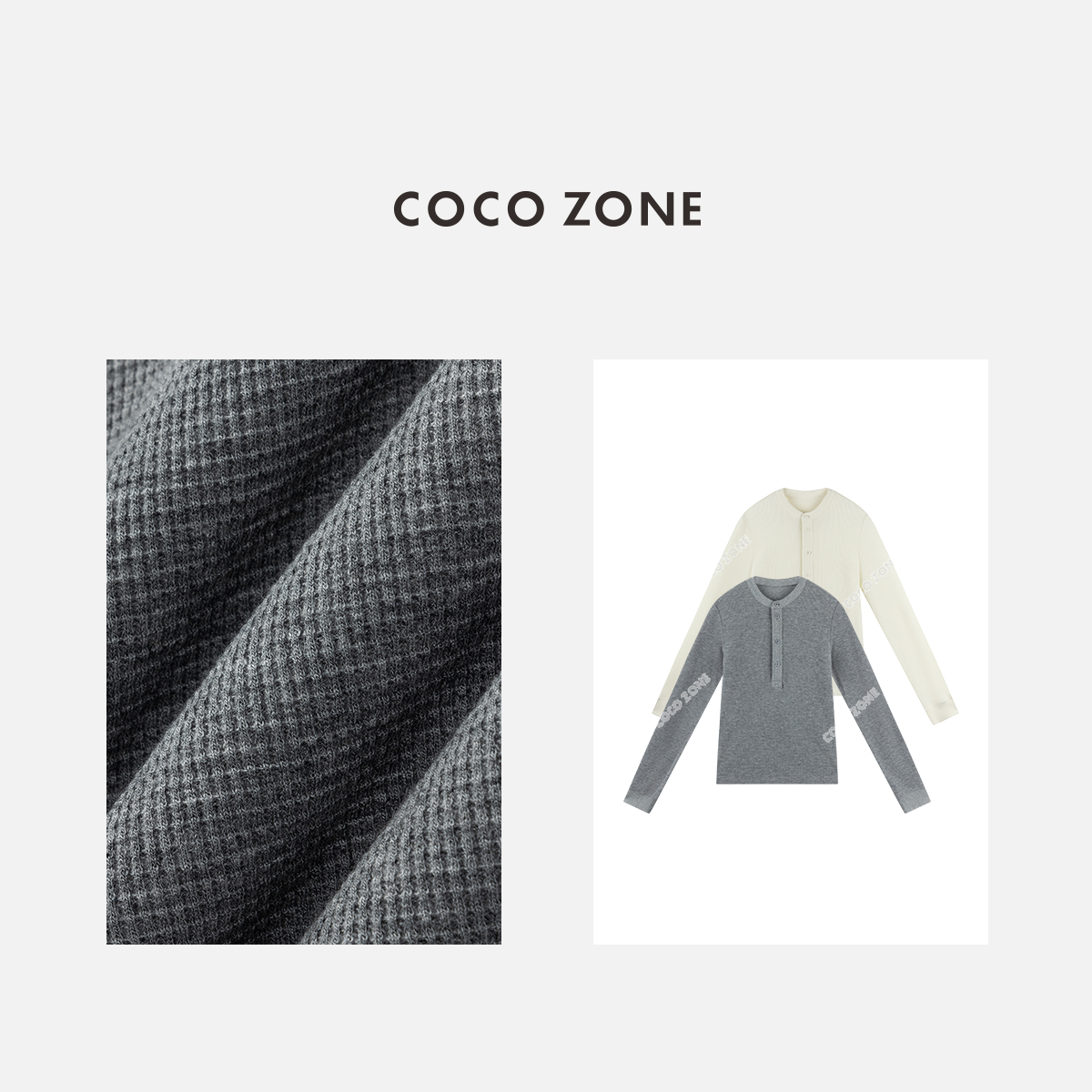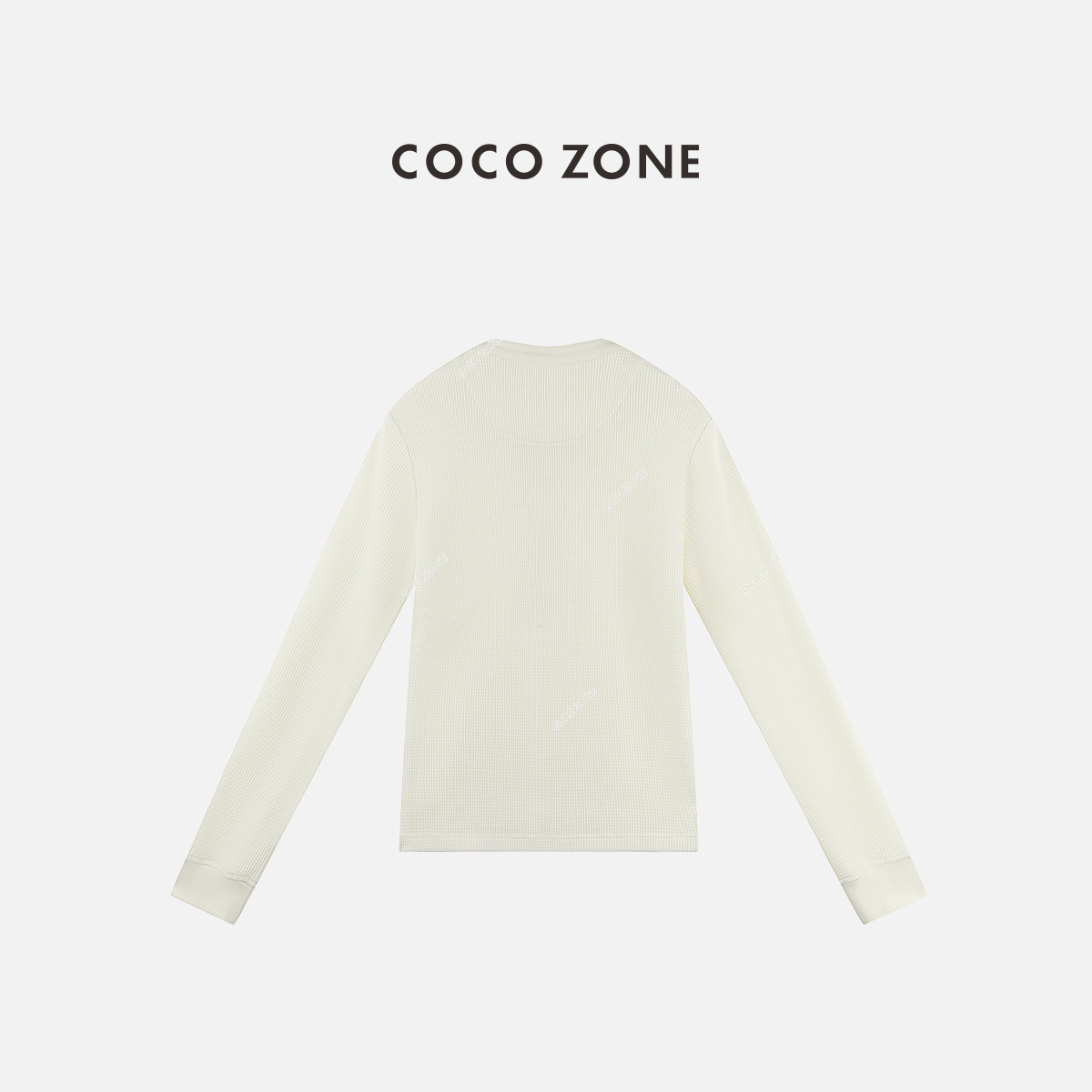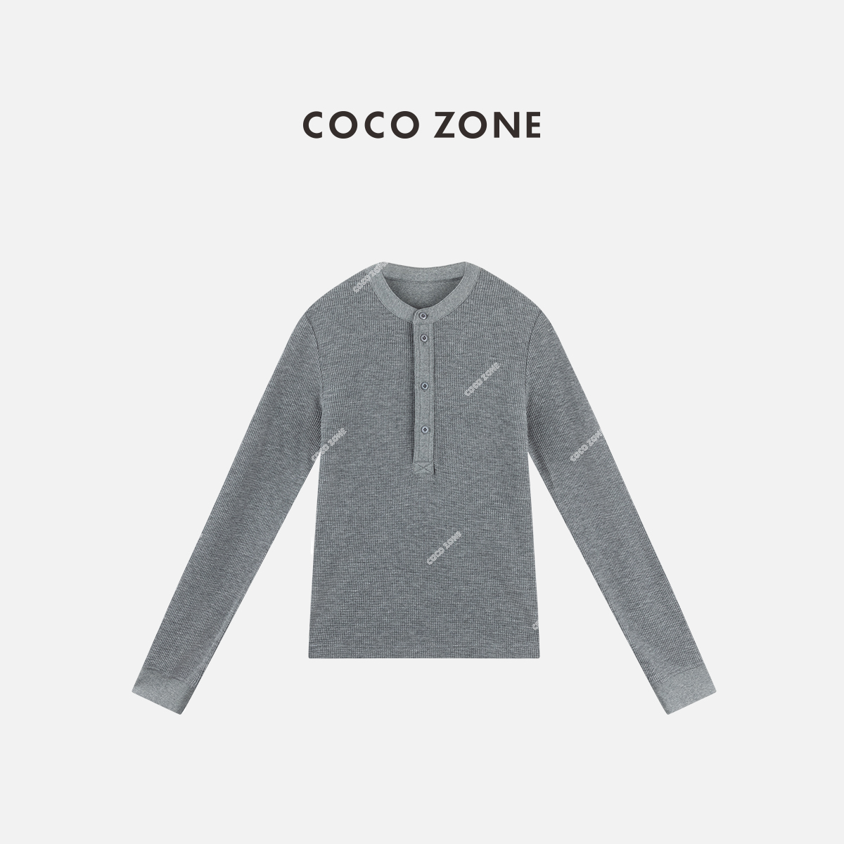 COCO ZONE 绵羊毛莱赛尔混纺时尚半排扣长袖T恤CC2C1784