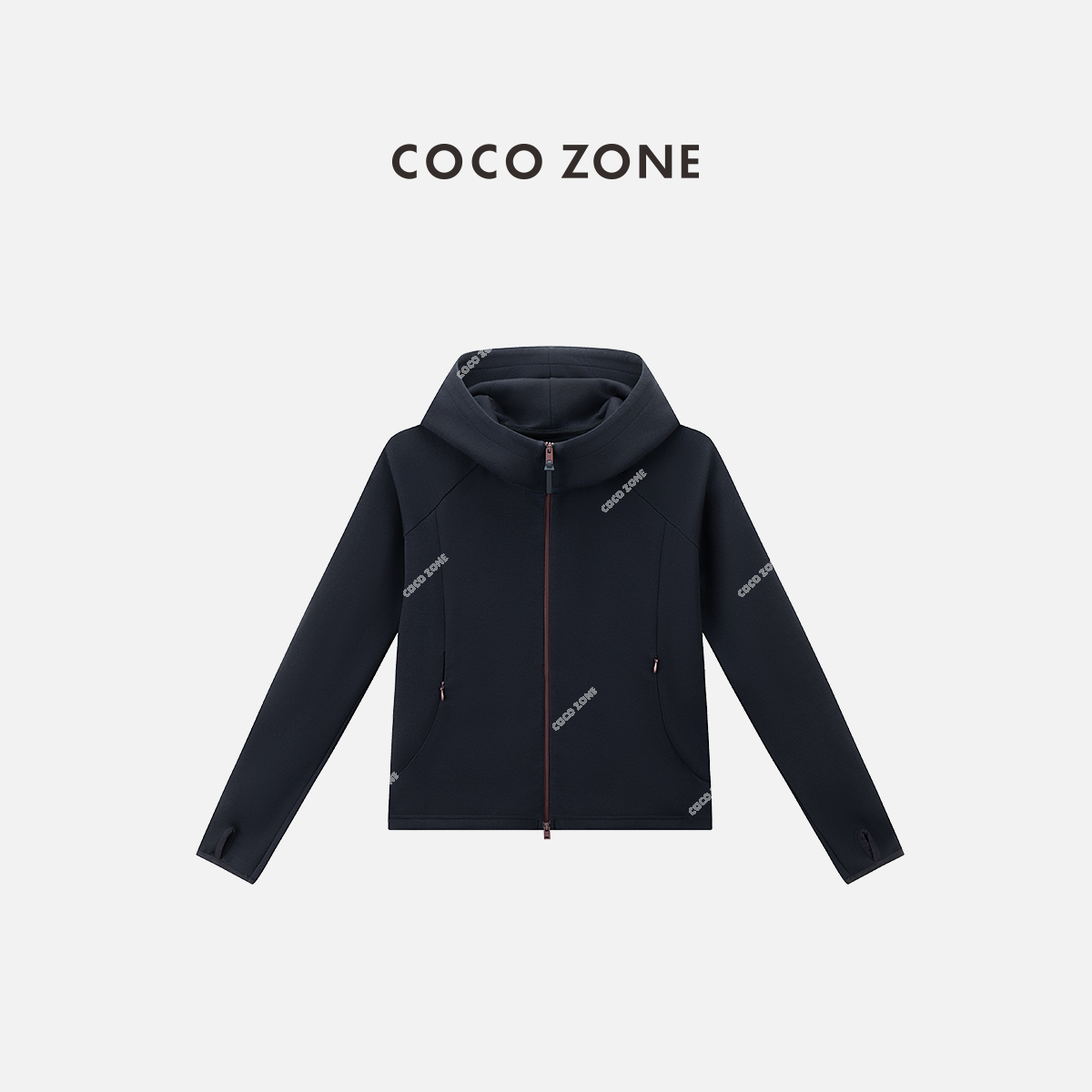 COCO ZONE 秋季简约连帽拉链外套纯色休闲上衣CC1C1778
