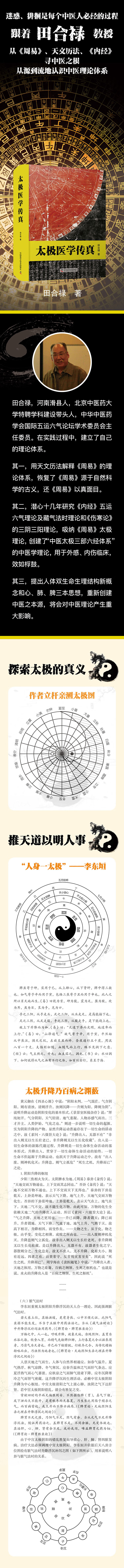 本书共 4 章,首先深度分析了“太极”一词的多种含义,从不同角度阐释太极为一元之气,蕴含着日、月、地体系的运动规律。继而从阴阳、五行、八卦、河图洛书、五运六气,以及疾病的诊治等方面言明中医学运用太极学说来阐发人体的组织结构、生理与病理变化及用药治疗原则,指出中医学中处处有太极,同时还提出了太阴脾为水的新概念,突出不被大家重视的少阳三焦说,建立了少阳三焦和太阴脾为太极水火的新观点,从而为心血管疾病、神志病及诸多疑难杂症等找到了治疗的理论根据,并提出人类发生学的观点。太极学在中医学领域发挥着非常大的主导作用,所以学习中医不可不知太极学。